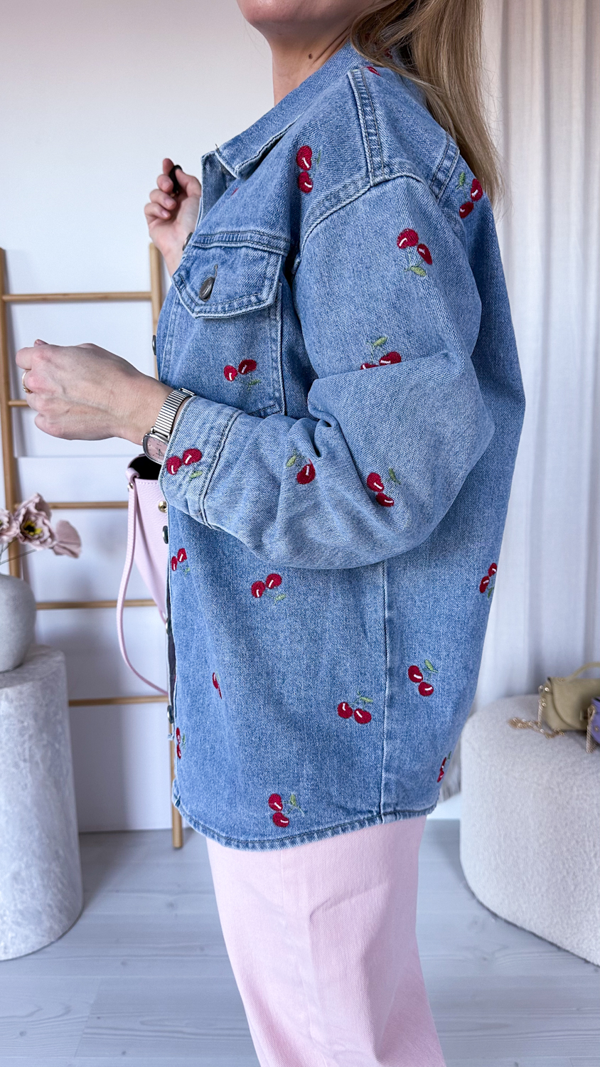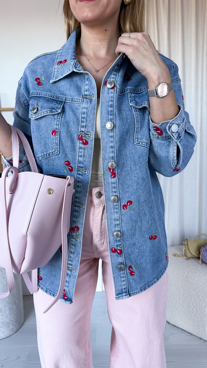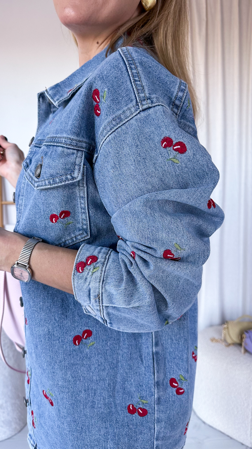 Koszula jeansowa w czereśnie – noś jako koszulę lub lekką kurtkę