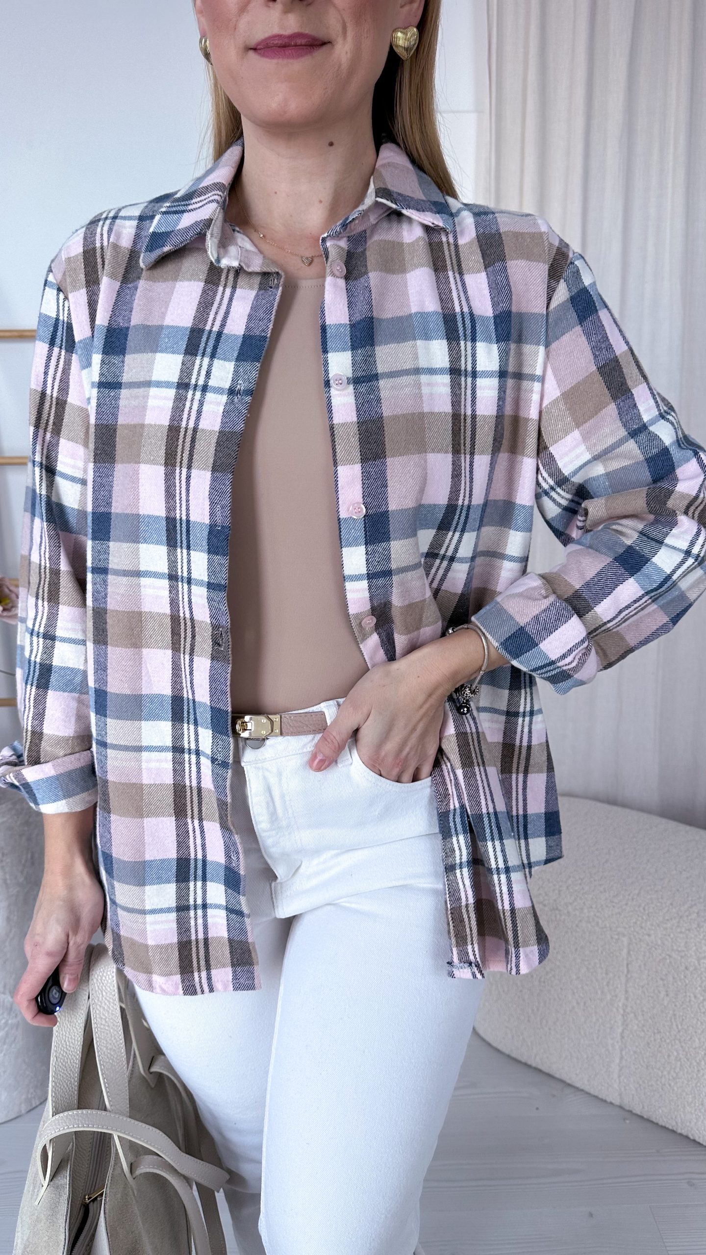 Modny wzór w kratę w połączeniu z delikatnymi, wiosennymi kolorami tworzy świeżą i stylową całość, która doskonale sprawdzi się zarówno w codziennych, jak i bardziej casualowych stylizacjach. Noś ją klasycznie zapiętą, rozpiętą jako lekką narzutkę lub przewiązaną w talii – możliwości stylizacji są niemal nieograniczone.