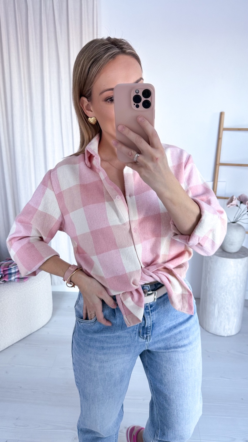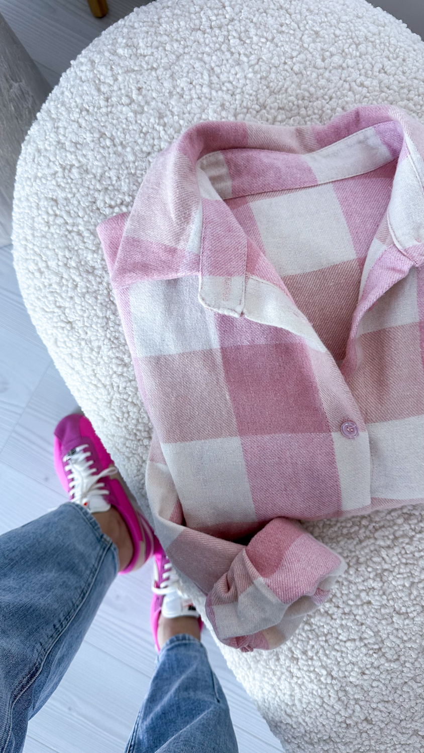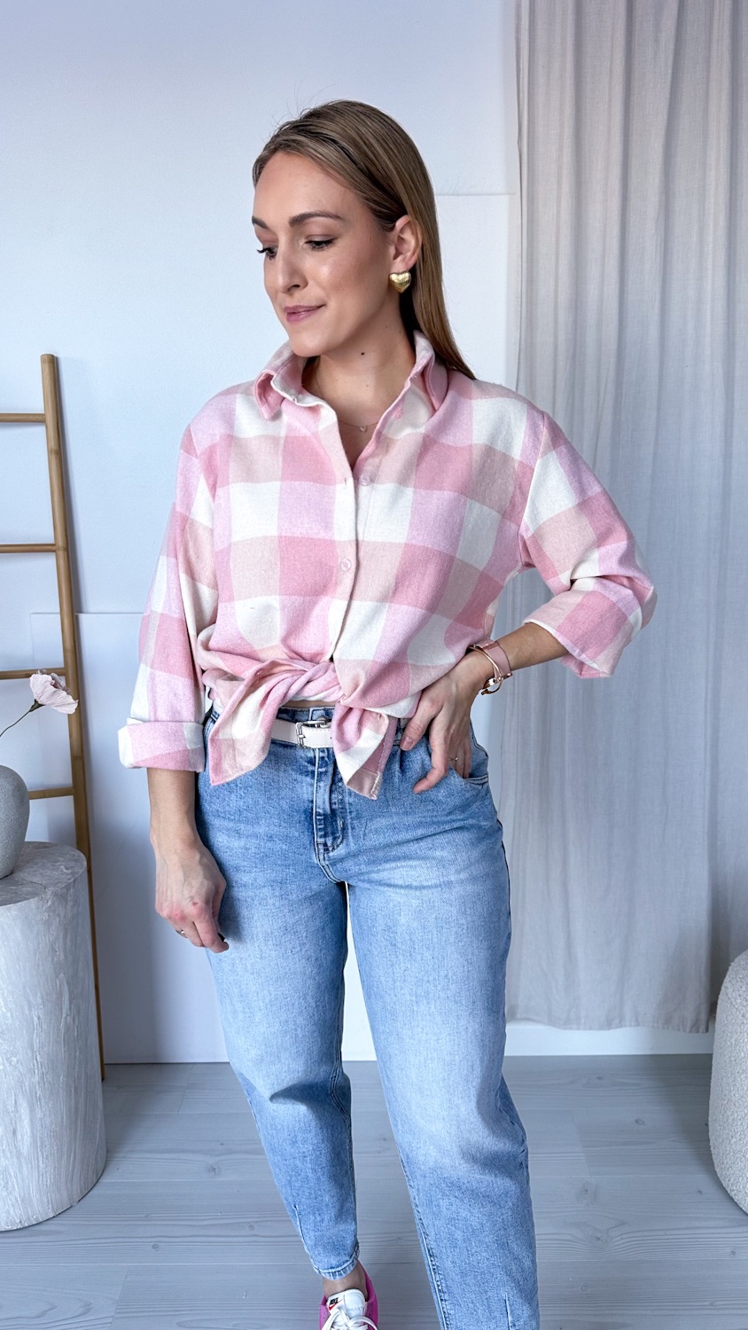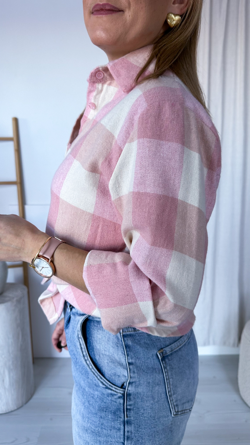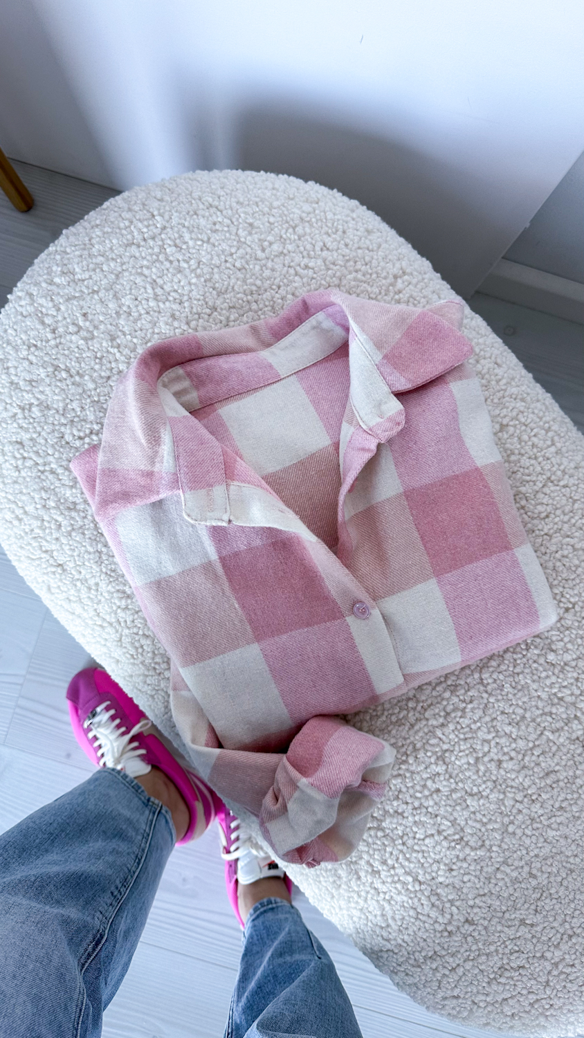 Koszula w kratę MEADOW pudrowo- śmietankowa duża krata