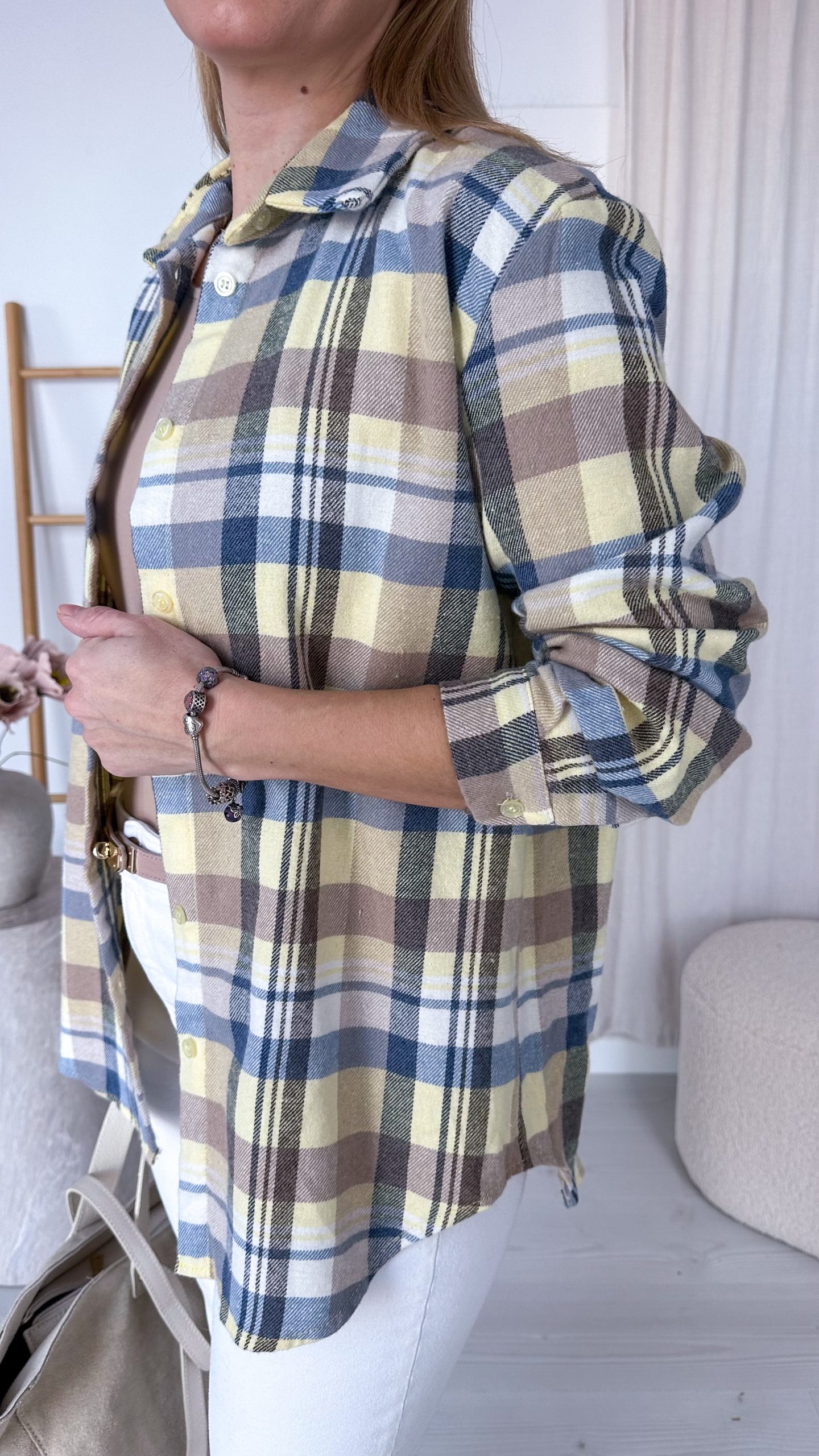Modny wzór w kratę w połączeniu z delikatnymi, wiosennymi kolorami tworzy świeżą i stylową całość, która doskonale sprawdzi się zarówno w codziennych, jak i bardziej casualowych stylizacjach. Noś ją klasycznie zapiętą, rozpiętą jako lekką narzutkę lub przewiązaną w talii – możliwości stylizacji są niemal nieograniczone.