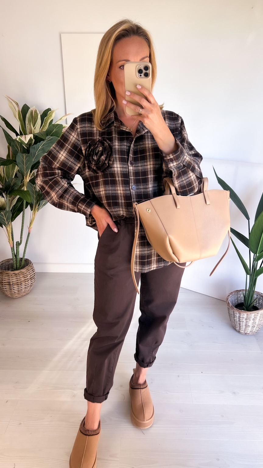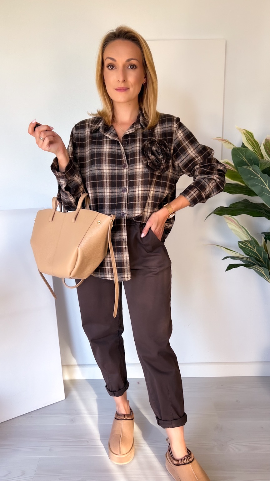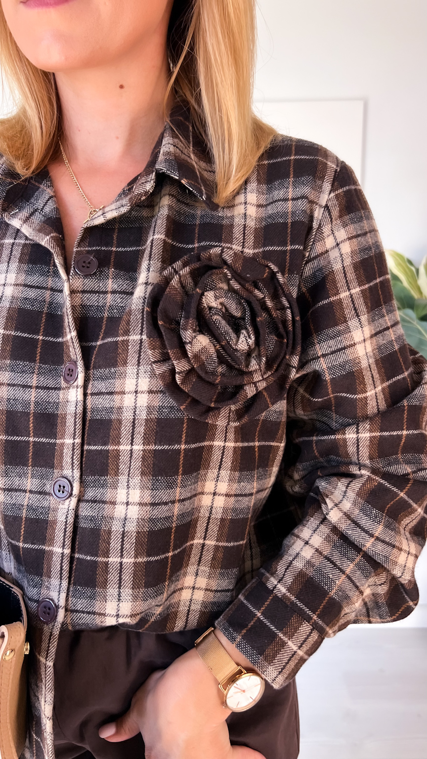 Klasyka z nutą oryginalności! Ta koszula w ponadczasową kratę została wzbogacona o efektowny kwiat 3D, który dodaje jej wyjątkowego charakteru. Klasyczny krój sprawia, że model świetnie leży i pasuje do wielu stylizacji.