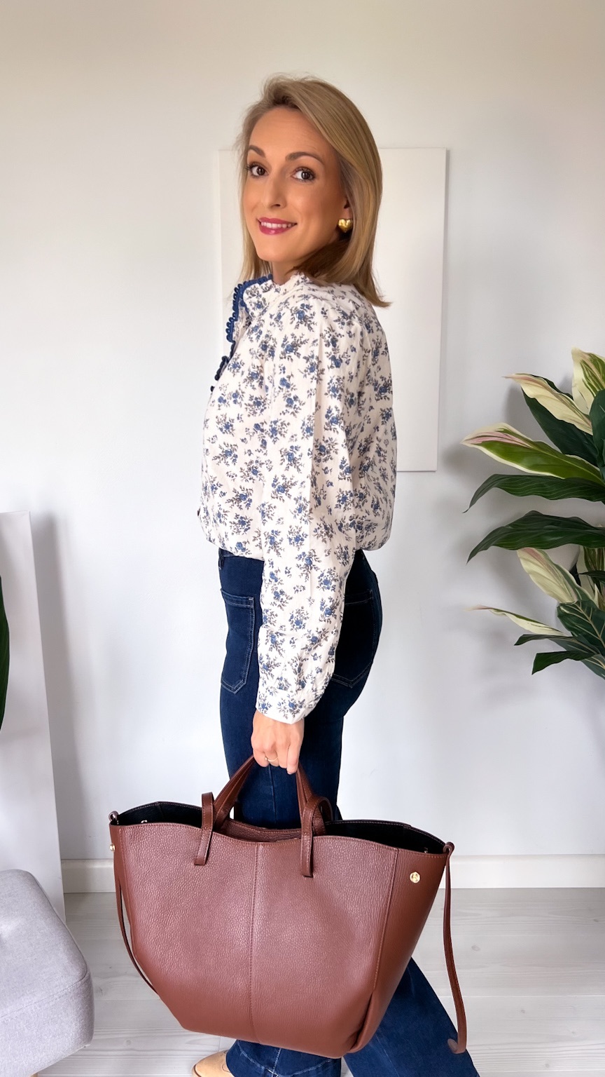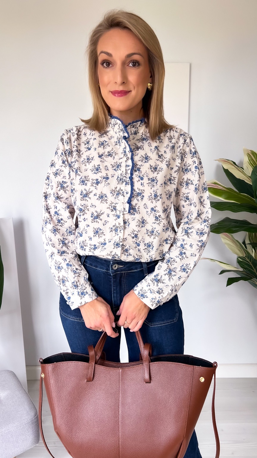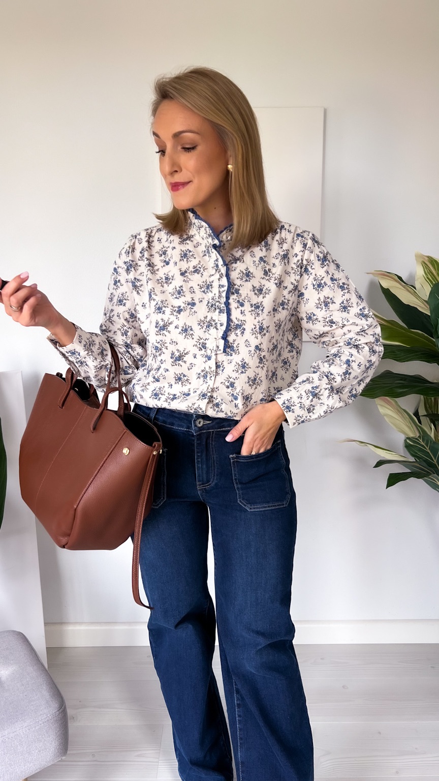 Postaw na koszulę w niebieskie kwiaty, jeśli szukasz subtelnie kobiecego, a jednocześnie eleganckiego akcentu, który rozświetli Twoje jesienne stylizacje. 💙🍁