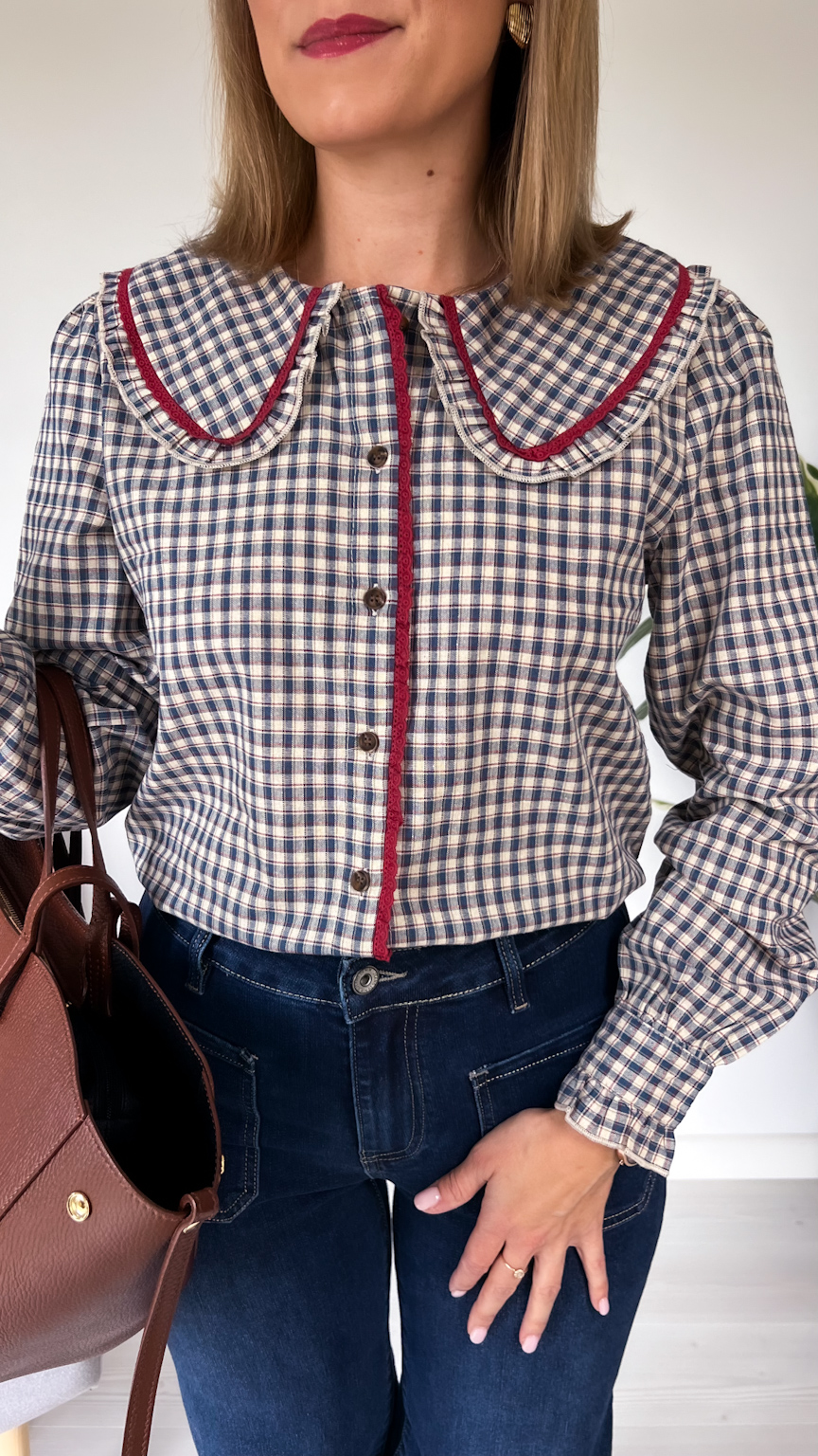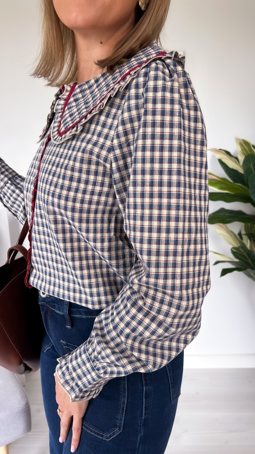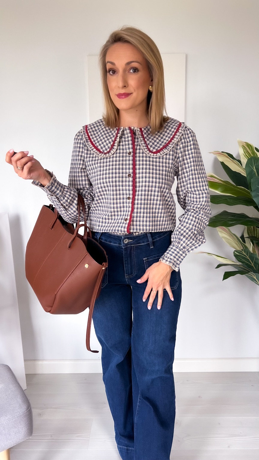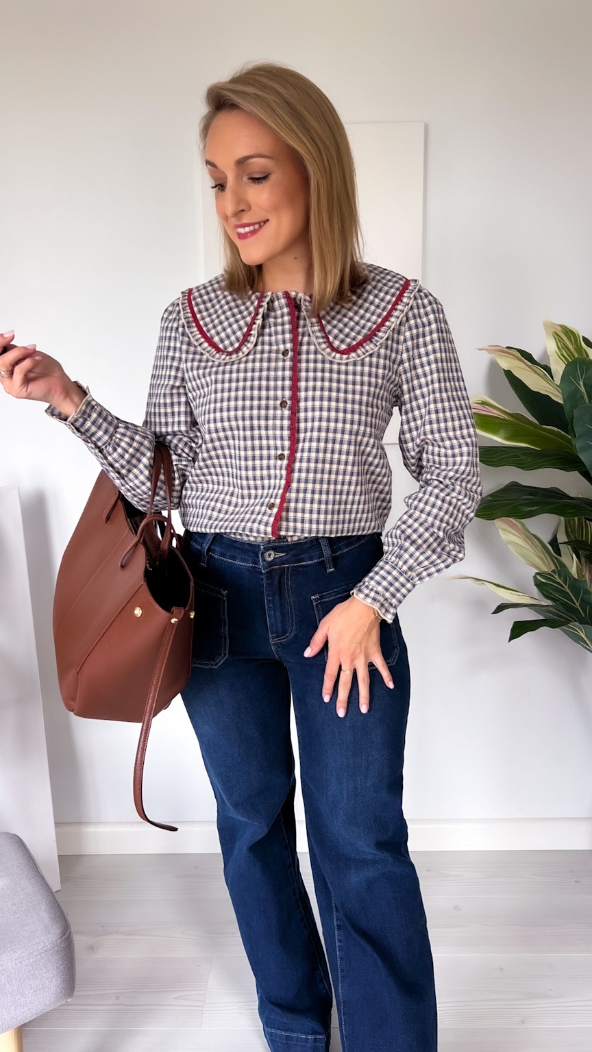 Wprowadź do swojej garderoby ponadczasowy, jesienny styl. Ta koszula w klasyczną kratę w odcieniach khaki i ciepłych brązów to must-have na chłodniejsze dni. Jej wyjątkowy, starannie wyprofilowany kołnierz dodaje elegancji i subtelnego uroku, dzięki czemu sprawdzi się zarówno w codziennych, jak i bardziej wysmakowanych stylizacjach.