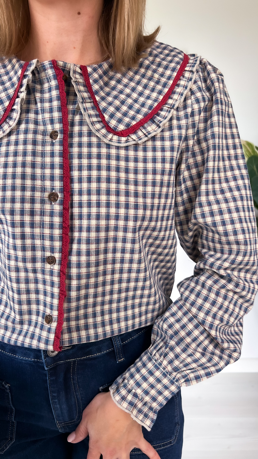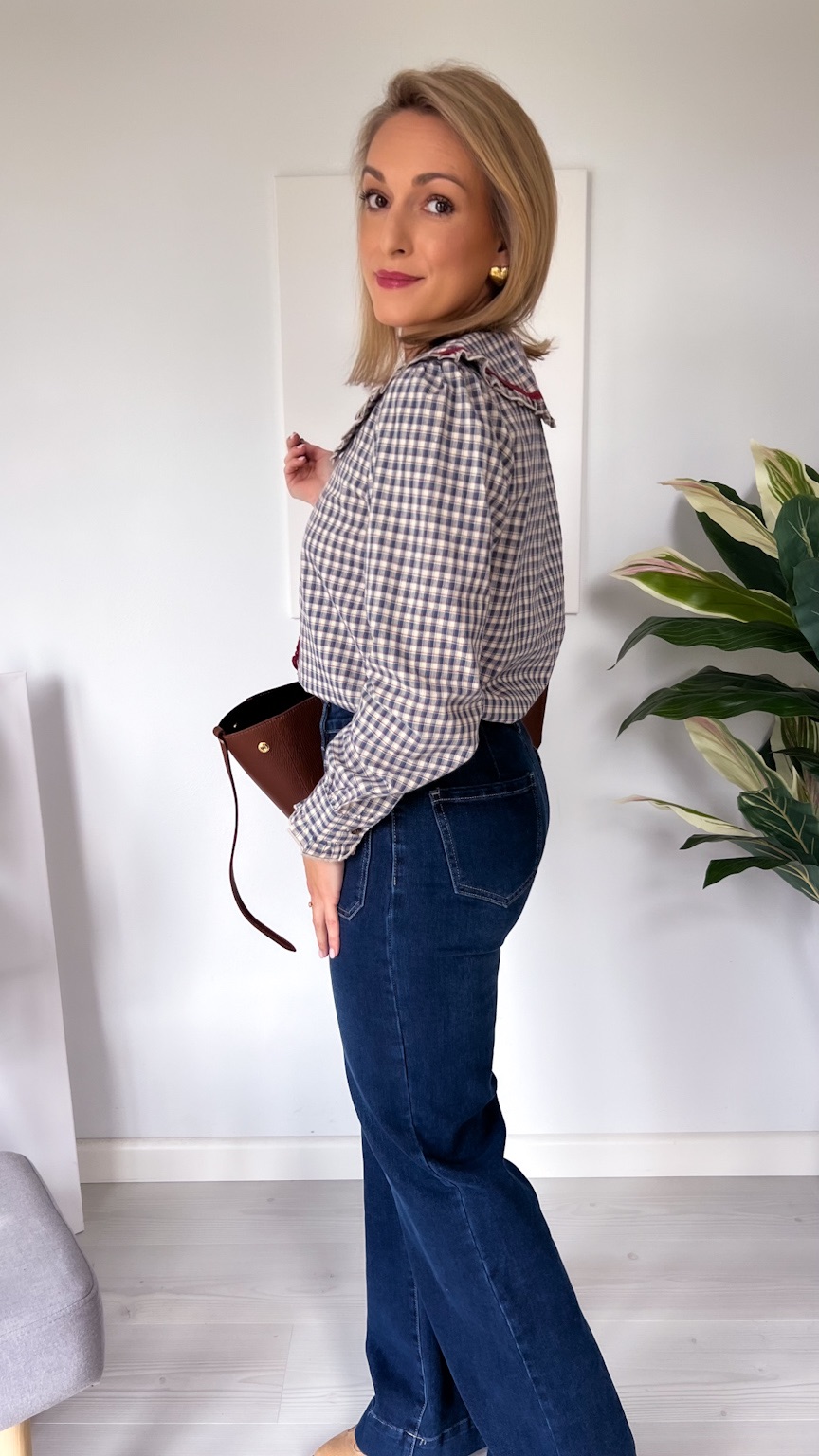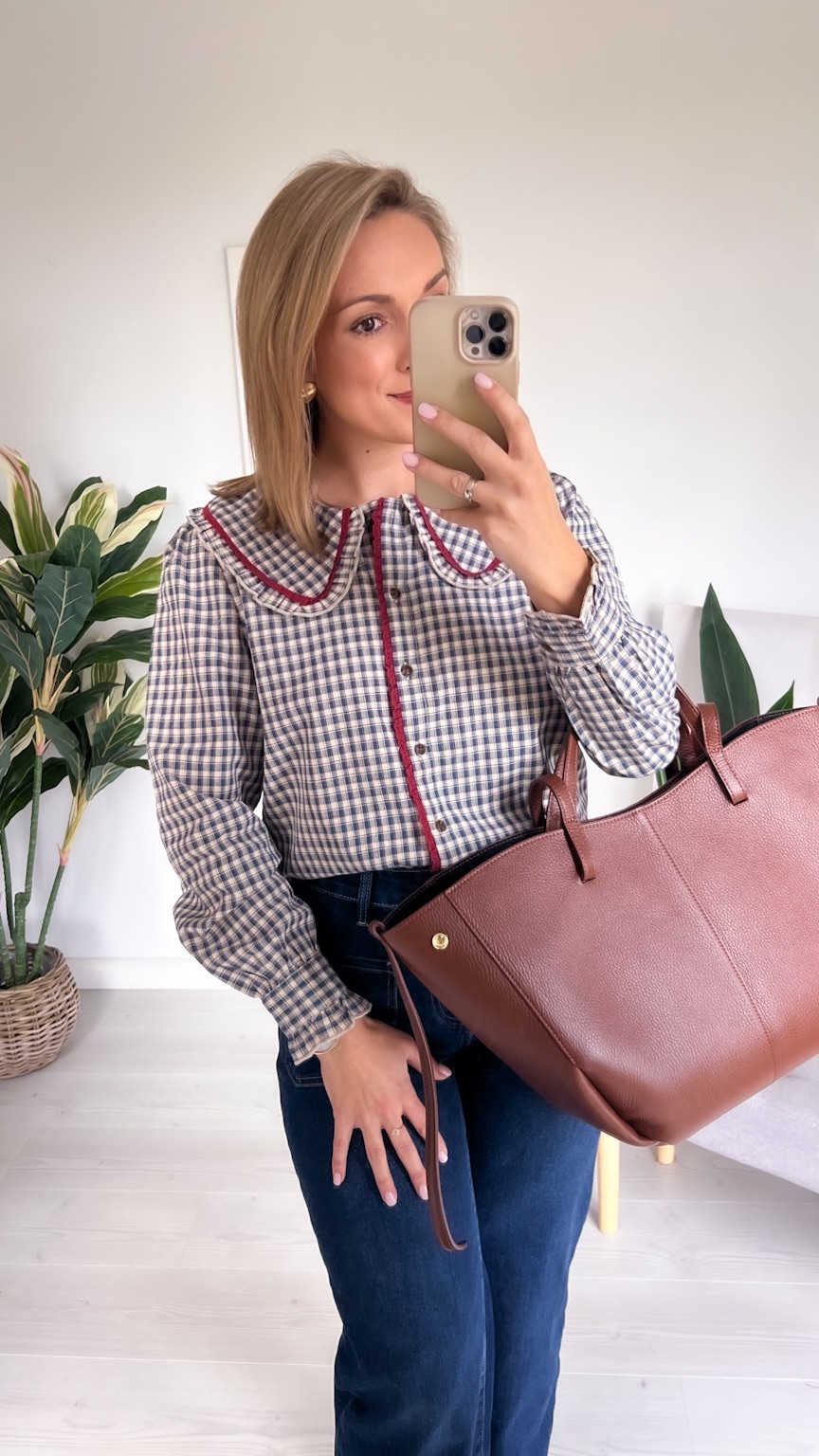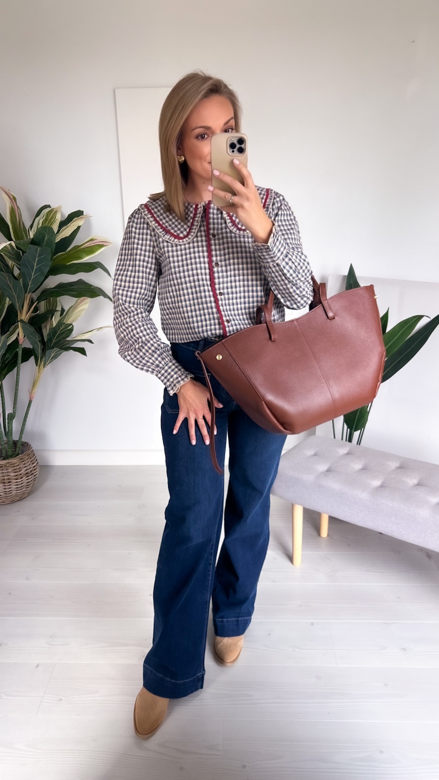 Wprowadź do swojej garderoby ponadczasowy, jesienny styl. Ta koszula w klasyczną kratę w odcieniach khaki i ciepłych brązów to must-have na chłodniejsze dni. Jej wyjątkowy, starannie wyprofilowany kołnierz dodaje elegancji i subtelnego uroku, dzięki czemu sprawdzi się zarówno w codziennych, jak i bardziej wysmakowanych stylizacjach.