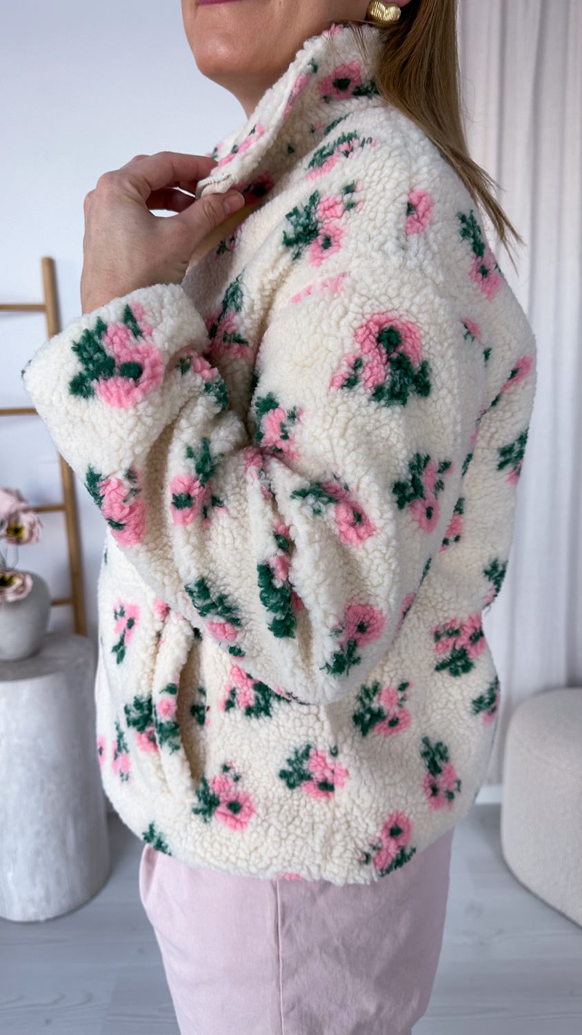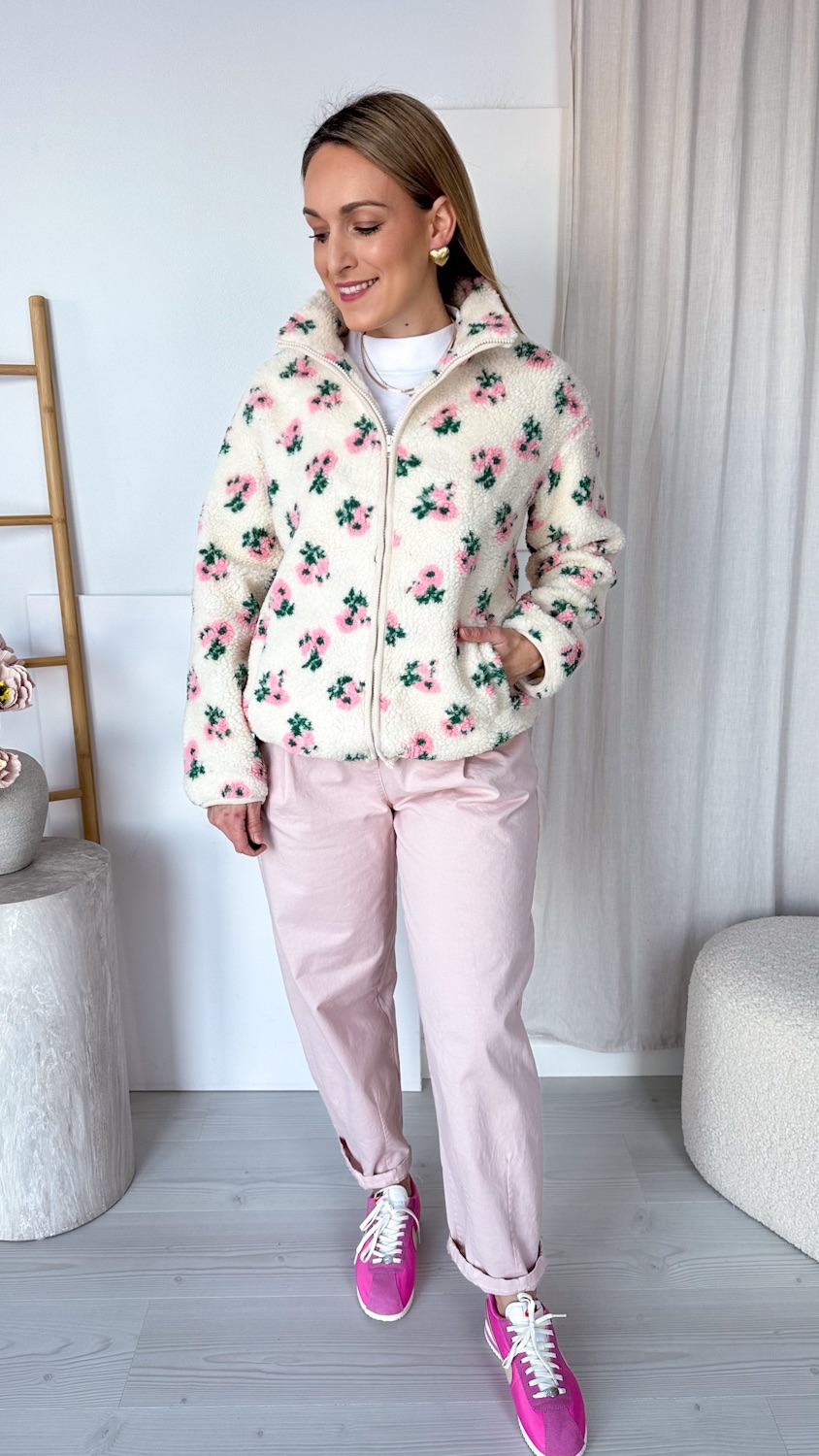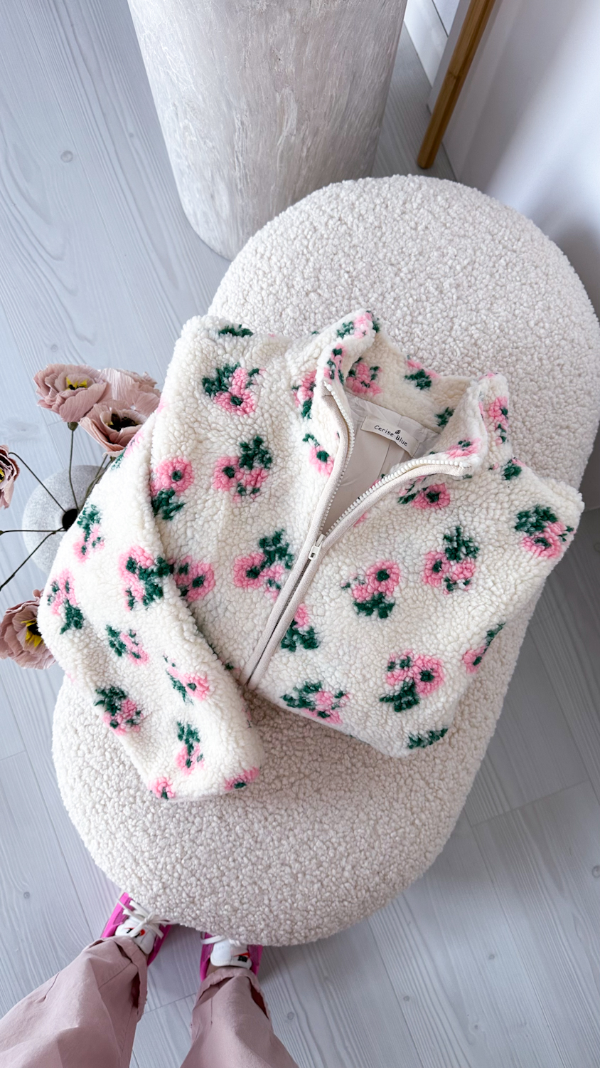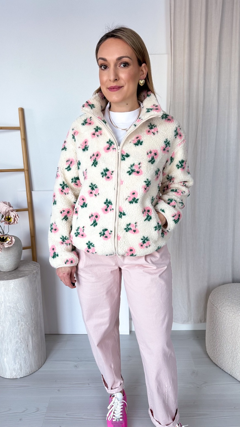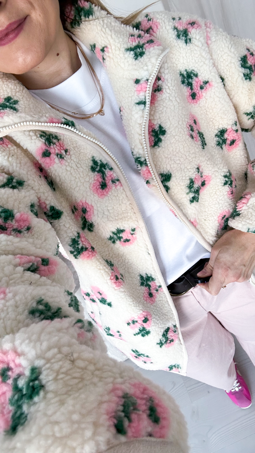 Niezwykle efektowna i oryginalna barankowa kurteczka, która zachwyca romantycznym wzorem w piękne pudrowe kwiatuszki. Wykonana z miękkiego, przyjemnego w dotyku materiału, osadzona na podszewce, zapewnia komfort noszenia i idealnie sprawdzi się w wiosennych stylizacjach.