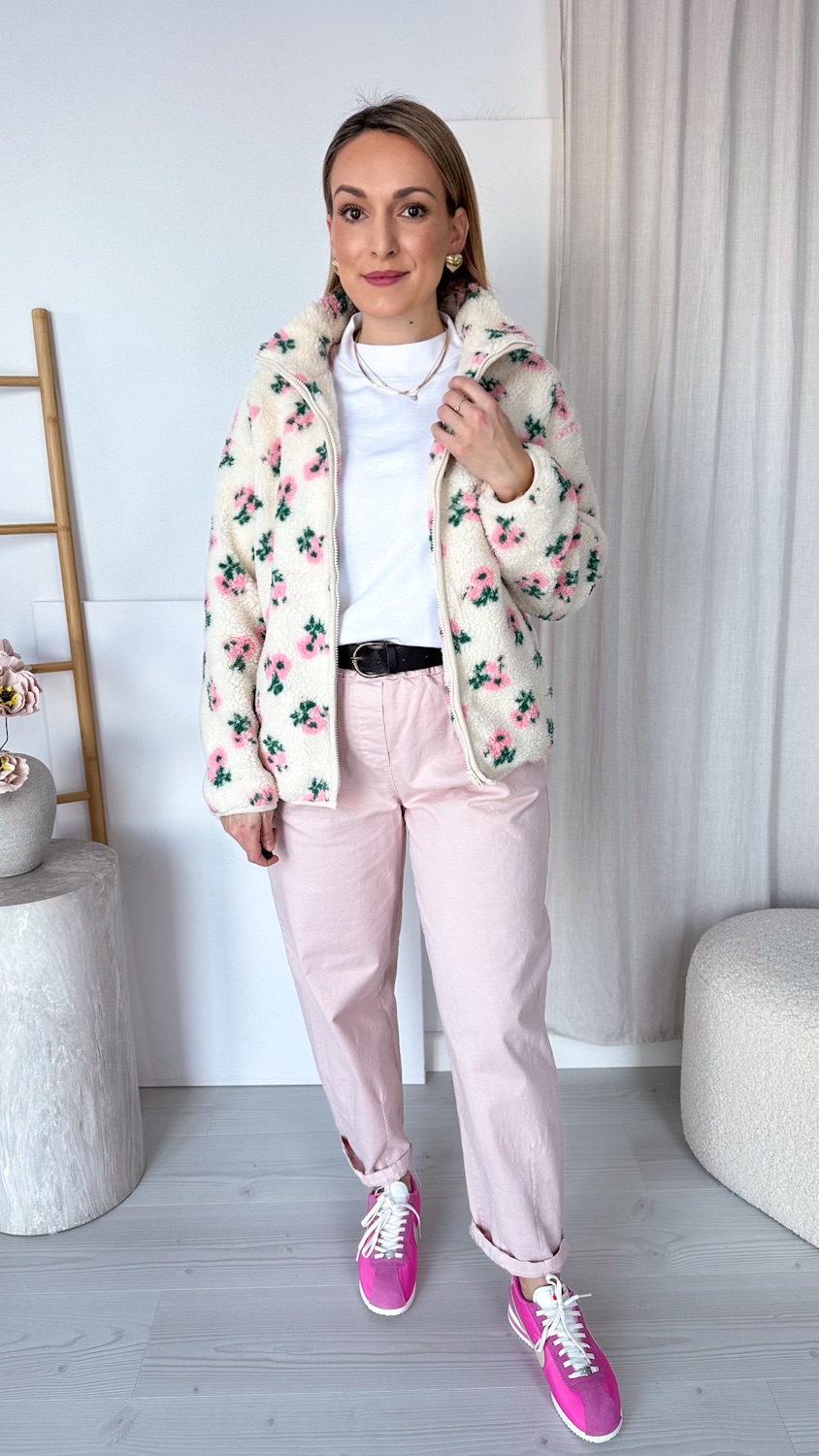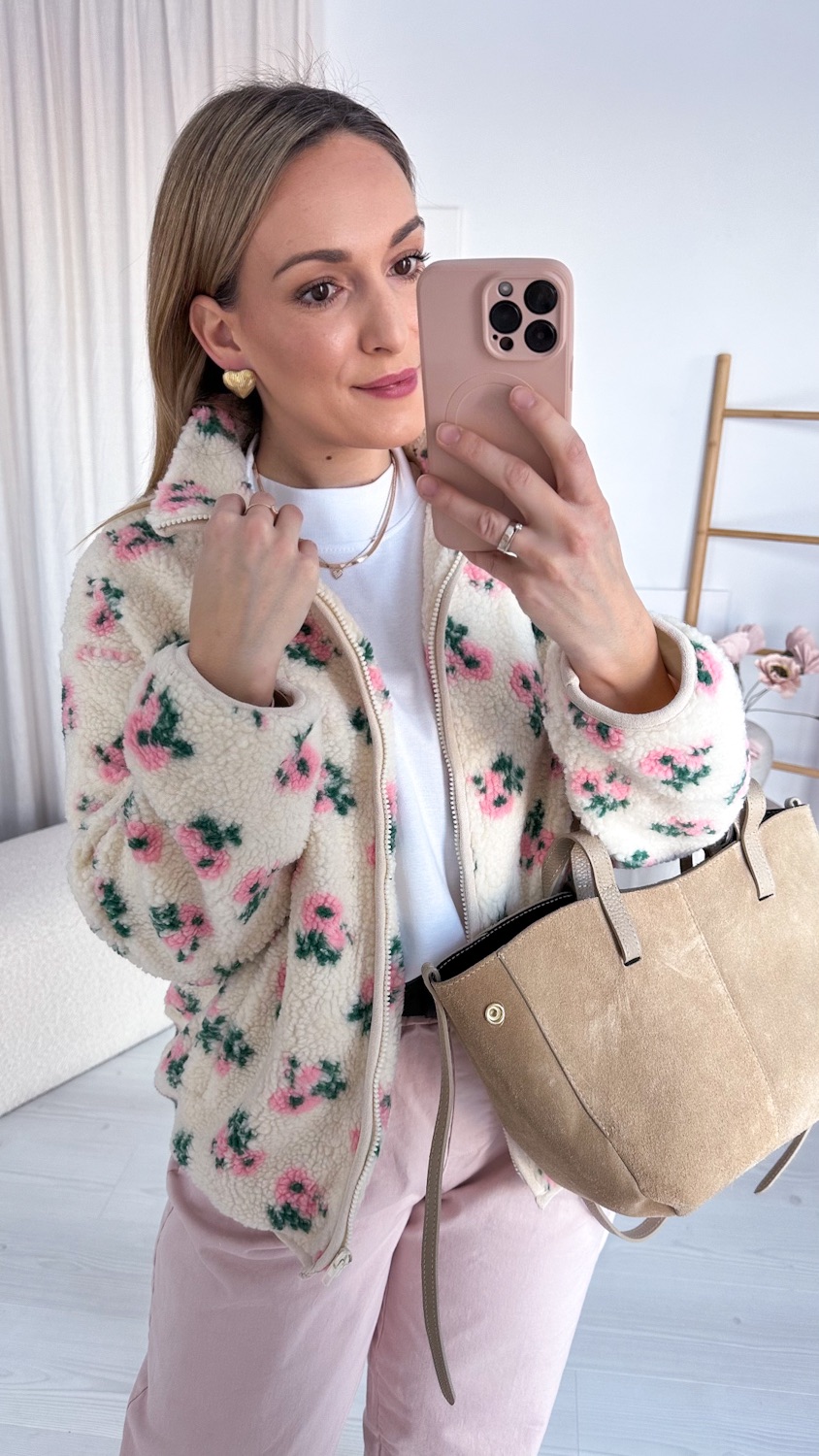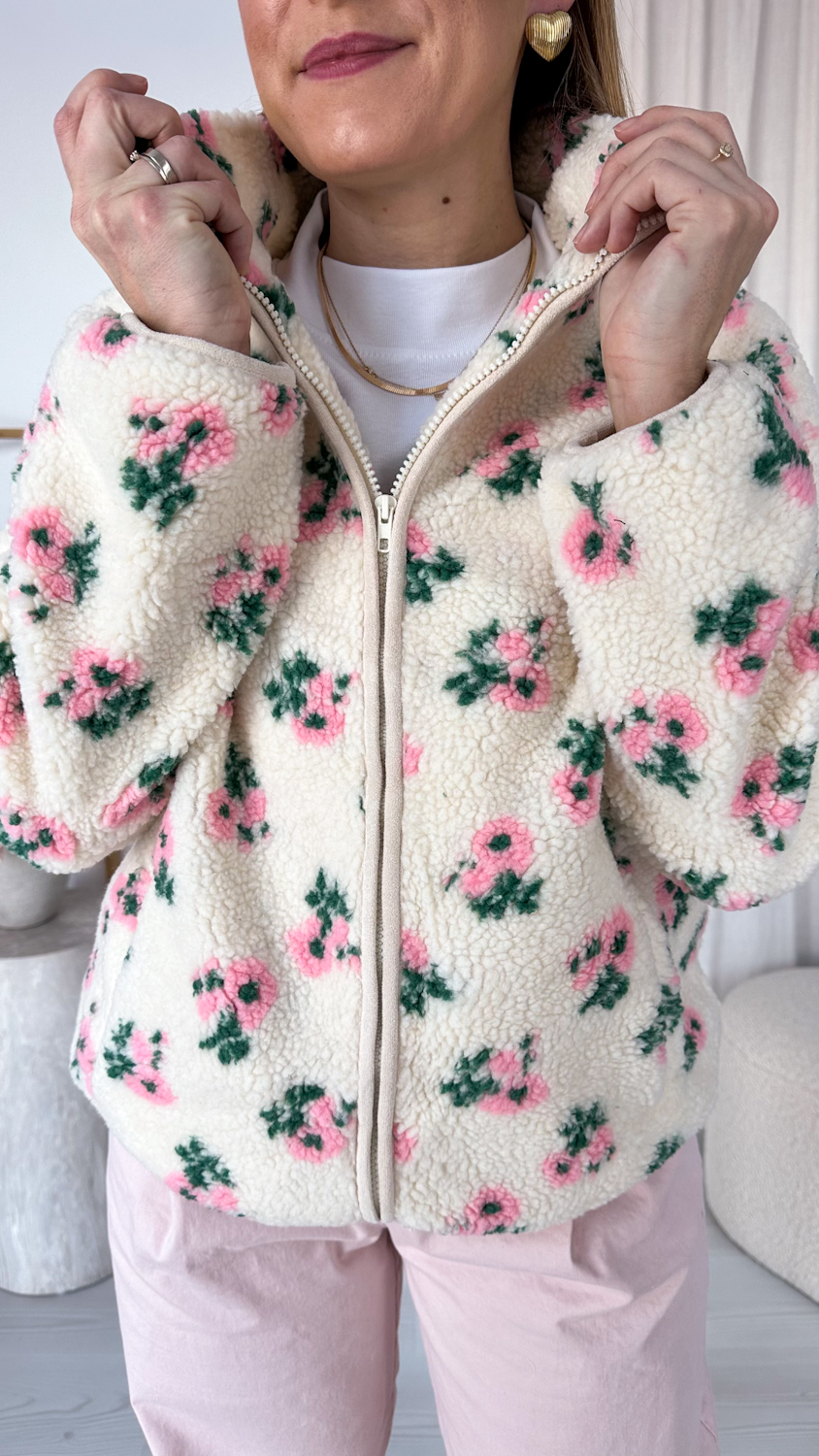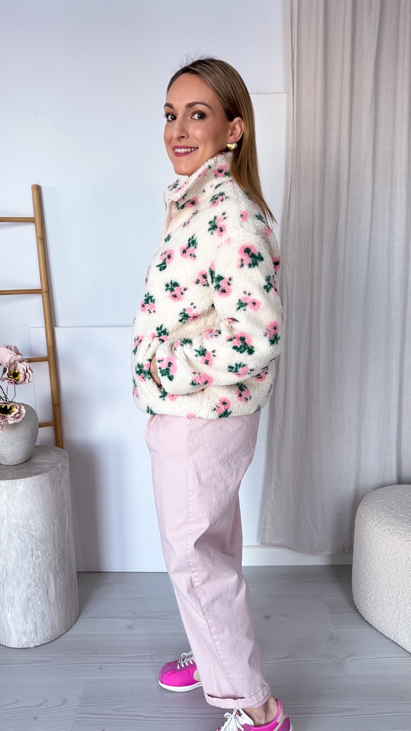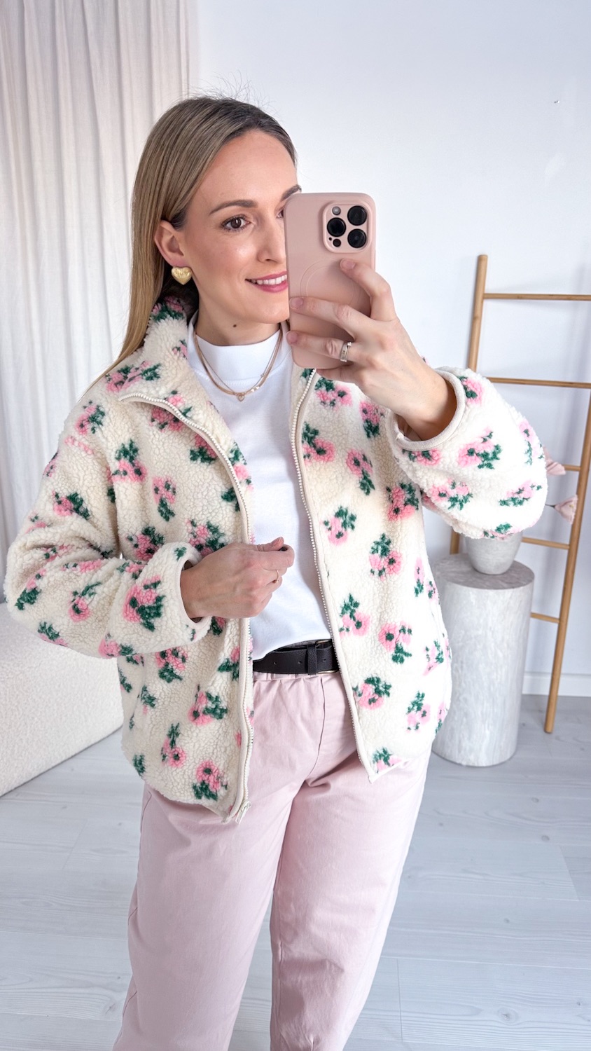 Niezwykle efektowna i oryginalna barankowa kurteczka, która zachwyca romantycznym wzorem w piękne pudrowe kwiatuszki. Wykonana z miękkiego, przyjemnego w dotyku materiału, osadzona na podszewce, zapewnia komfort noszenia i idealnie sprawdzi się w wiosennych stylizacjach.