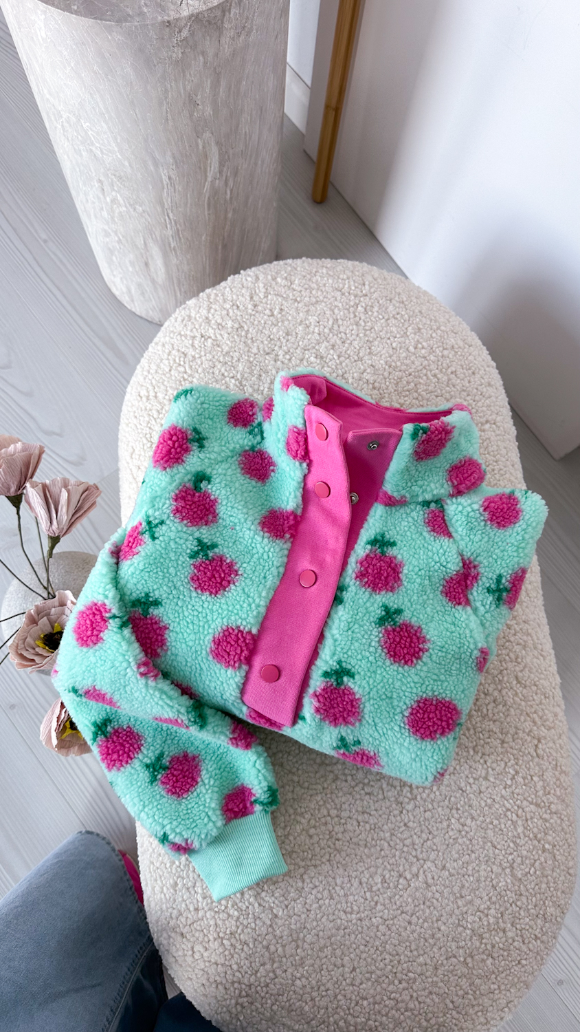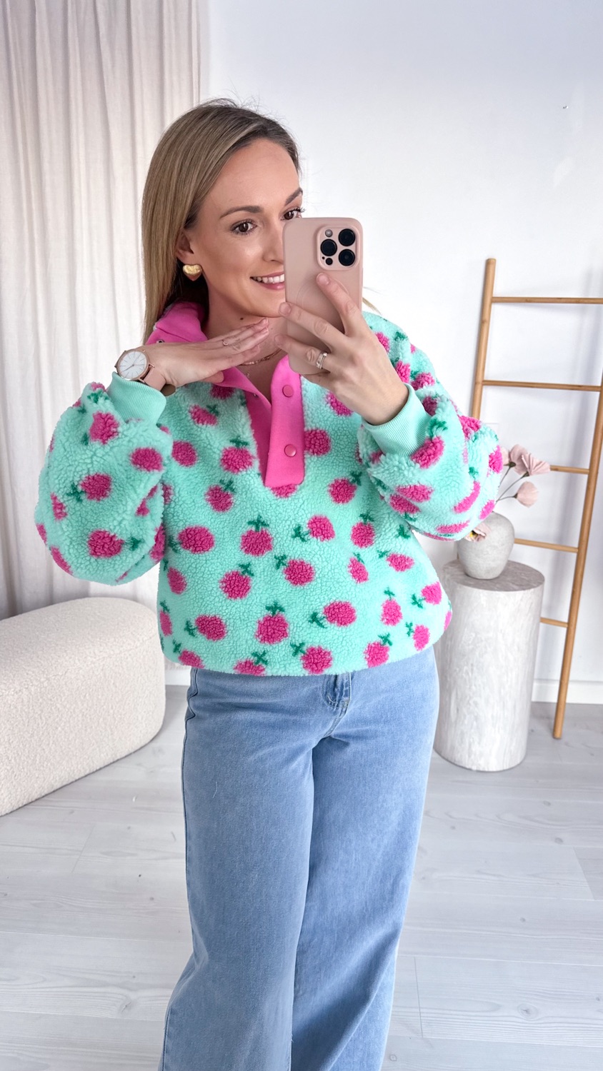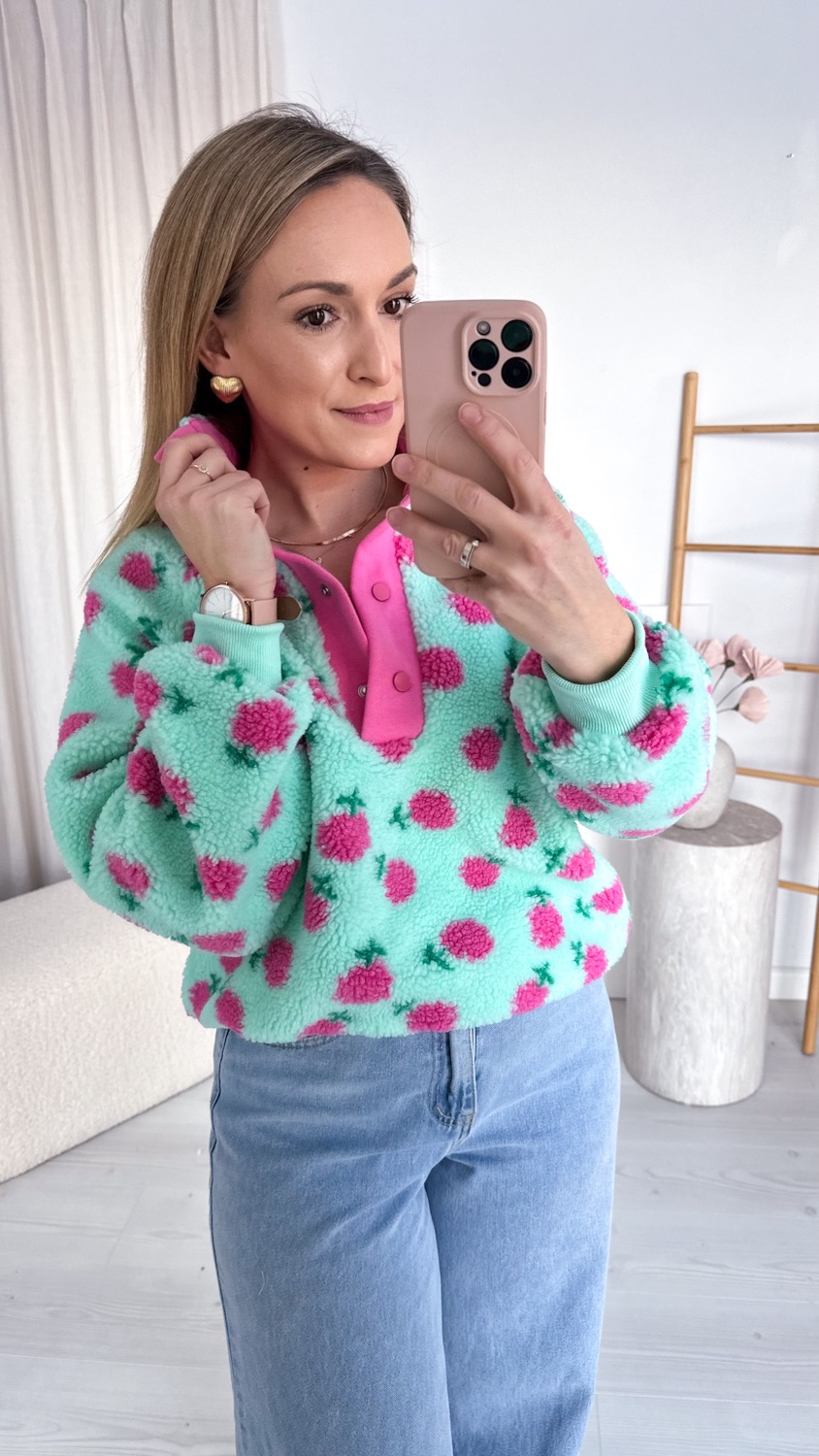Polar typu baranek w wyjątkowym odcieniu ciemnej mięty, ozdobiony wyrazistym wzorem amarantowych kwiatów. To model, który natychmiast przyciąga wzrok i nadaje stylizacji niepowtarzalnego charakteru. Intensywne kolory tworzą odważne, a jednocześnie harmonijne połączenie, gwarantując spektakularny efekt WOW.