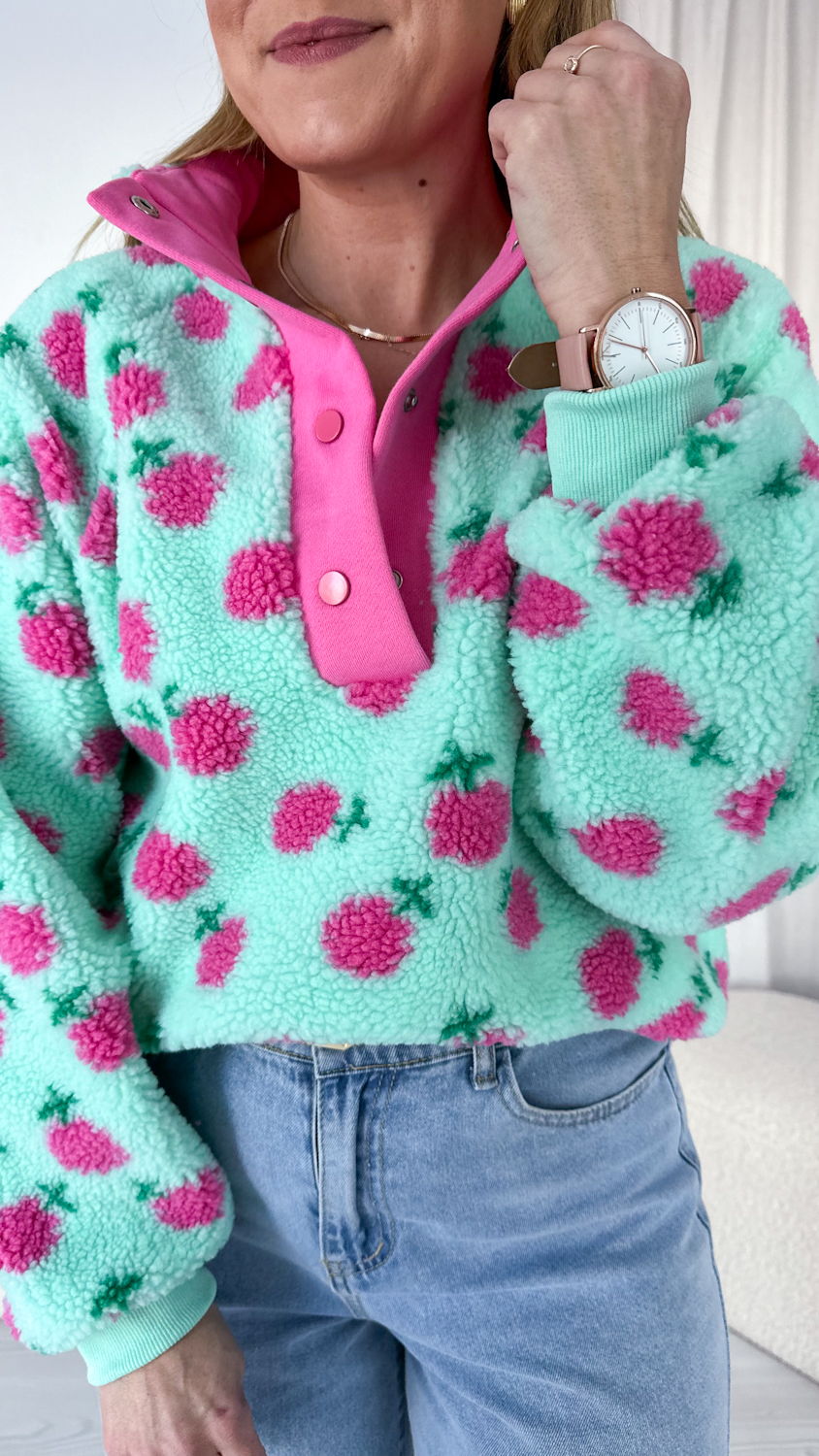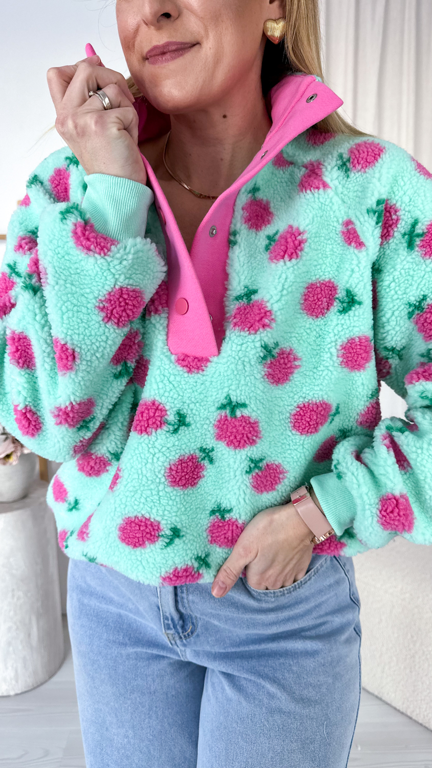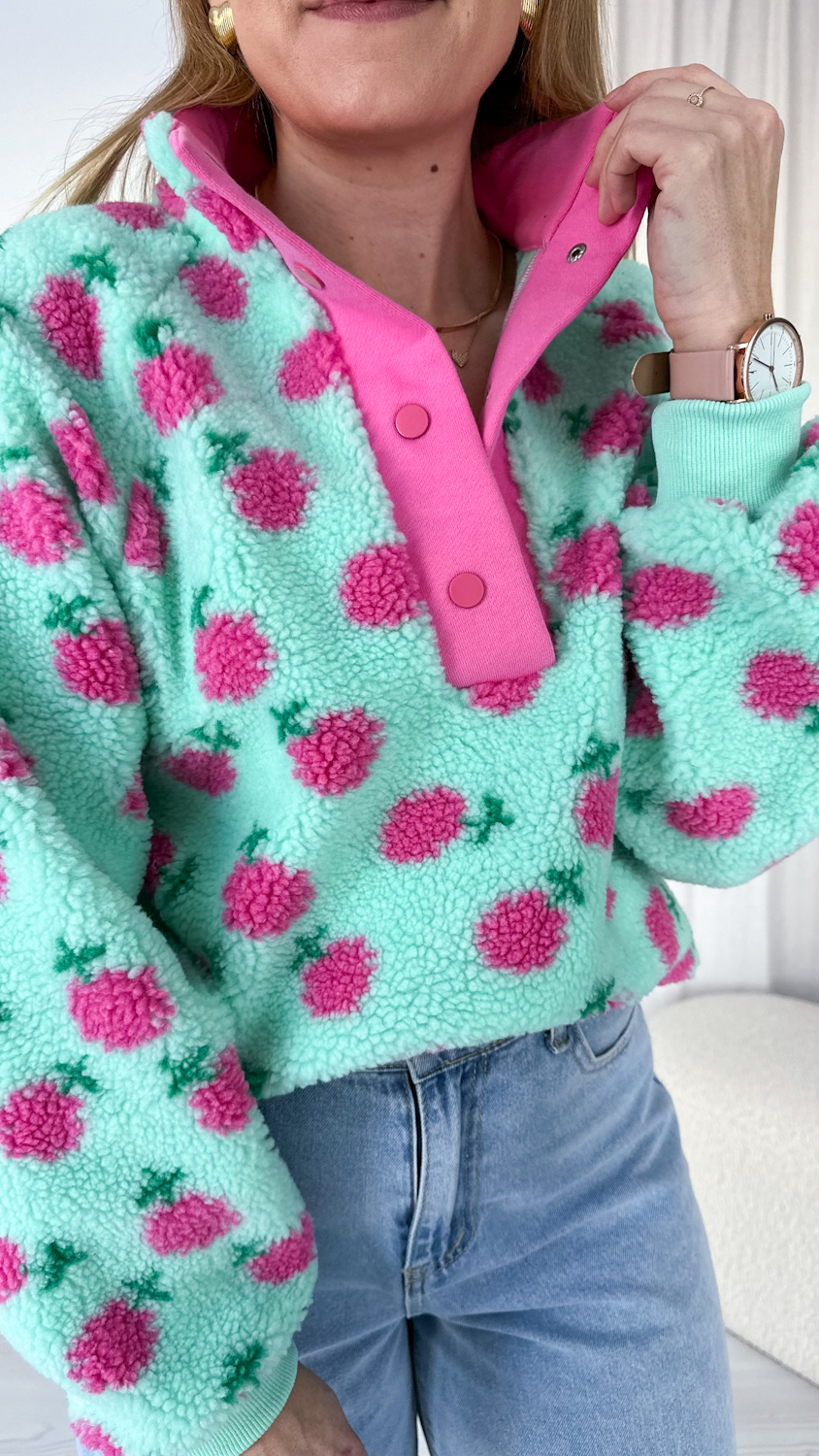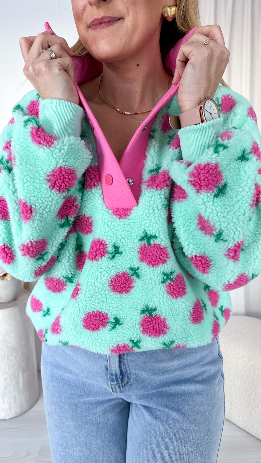 Polar typu baranek w wyjątkowym odcieniu ciemnej mięty, ozdobiony wyrazistym wzorem amarantowych kwiatów. To model, który natychmiast przyciąga wzrok i nadaje stylizacji niepowtarzalnego charakteru. Intensywne kolory tworzą odważne, a jednocześnie harmonijne połączenie, gwarantując spektakularny efekt WOW.