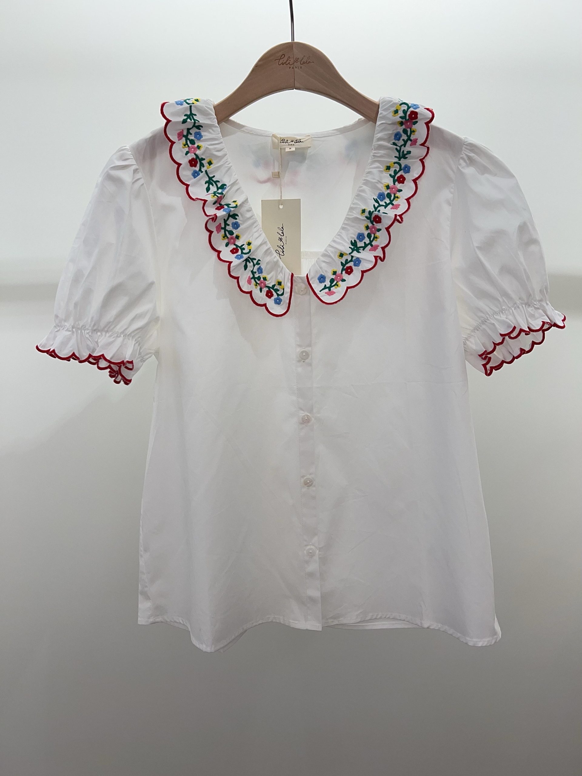Urocza i pełna wdzięku koszula bawełniana z wyjątkowym detalem w postaci haftowanych kwiatów kołnierzyku to idealna propozycja dla kobiet, które lubią subtelne, ale efektowne akcenty w stylizacjach.