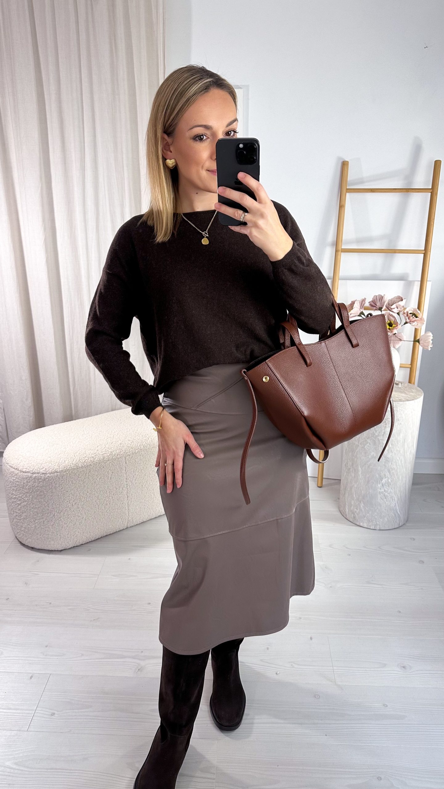 tylowa spódnica uszyta z wysokiej jakości tkaniny skóropodobnej to idealna propozycja na sezon jesienno-zimowy. Klasyczny fason w kształcie litery A pięknie podkreśla sylwetkę, zapewniając jednocześnie komfort noszenia i swobodę ruchów.