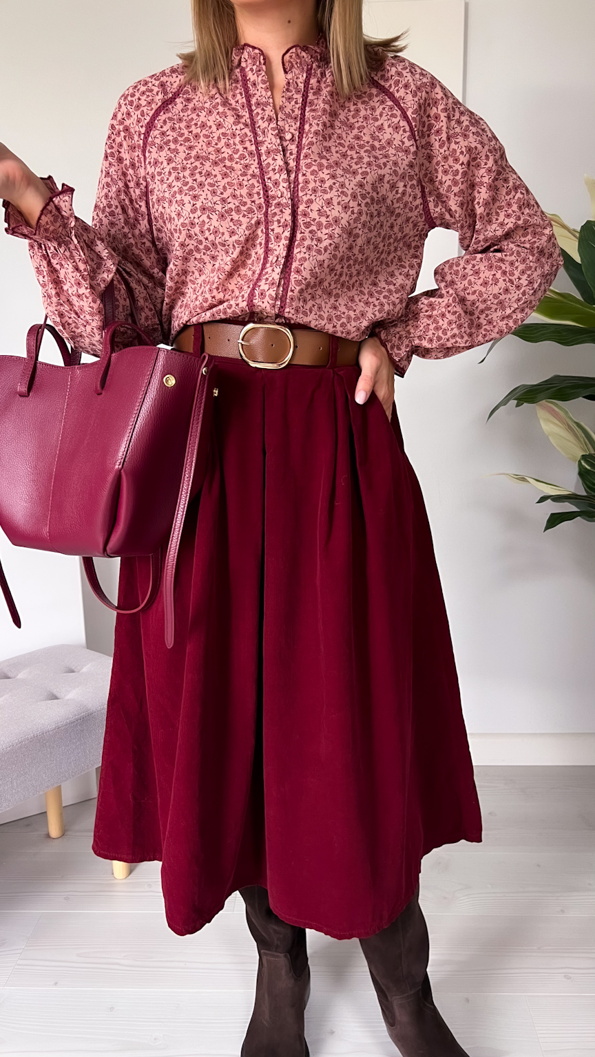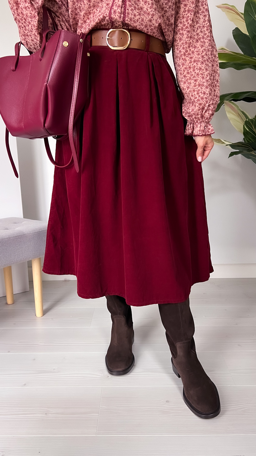 Spódnica sztruksowa bordowa
