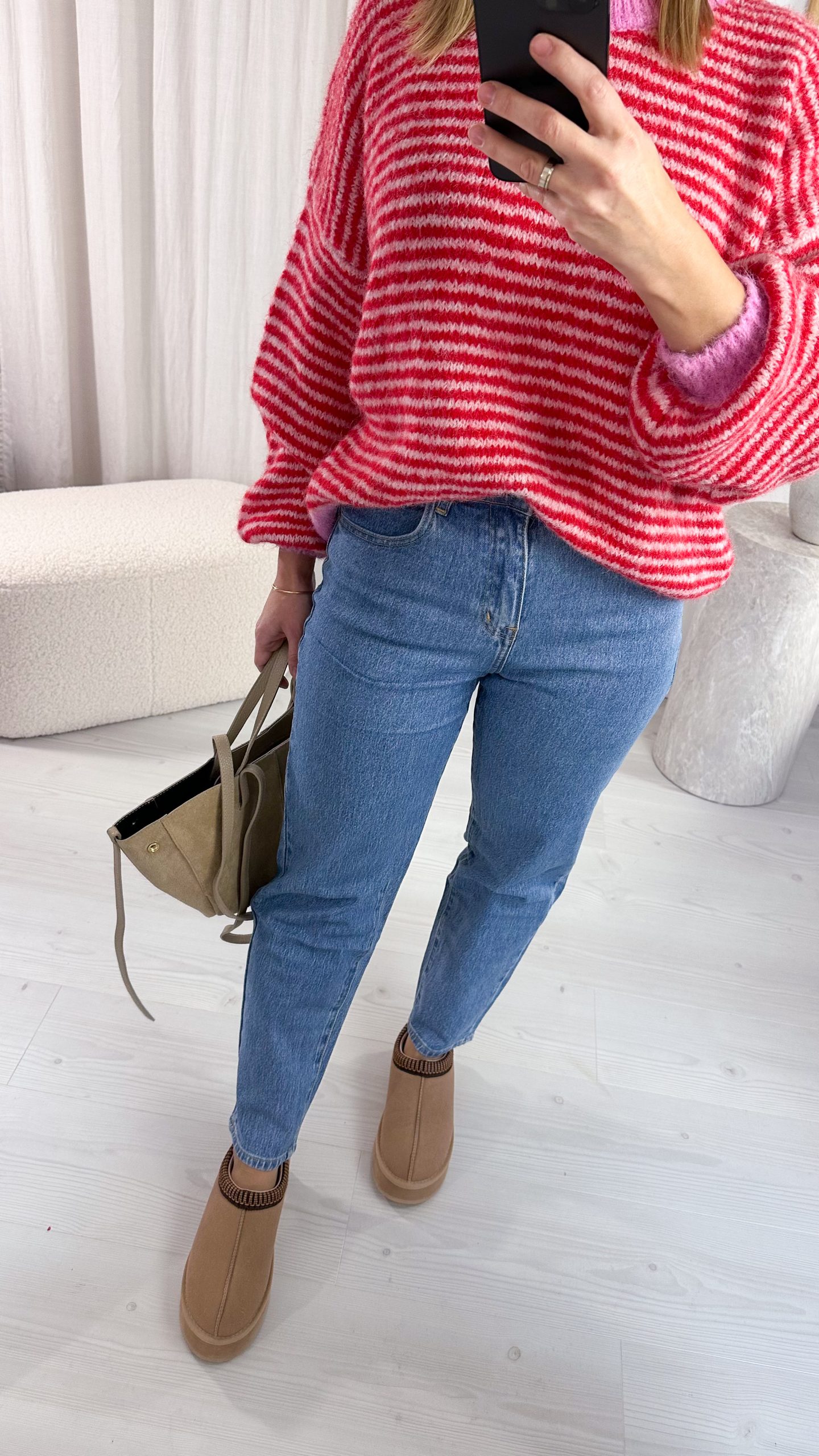 Spodnie typu mom fit renomowanej firmy ADORO to połączenie doskonałej jakości wykonania i ponadczasowej klasyki. Starannie dopracowany fason pięknie podkreśla sylwetkę, jednocześnie zapewniając komfort noszenia przez cały dzień.