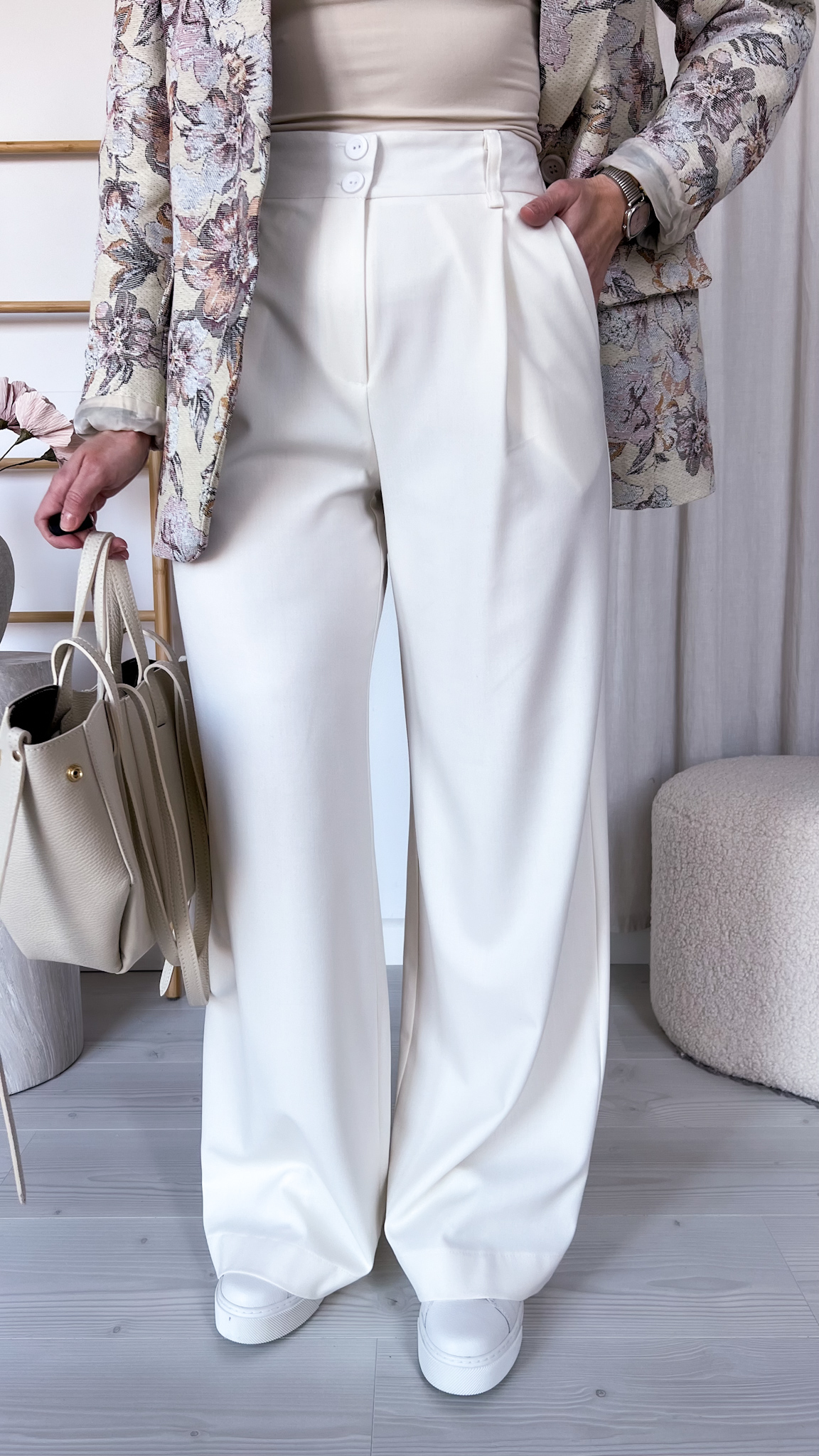 Stylowe i niezwykle kobiece spodnie stworzone z myślą o komforcie i elegancji. Model został wyprodukowany w Polsce z dbałością o każdy detal, dzięki czemu łączy wysoką jakość wykonania z ponadczasowym stylem.