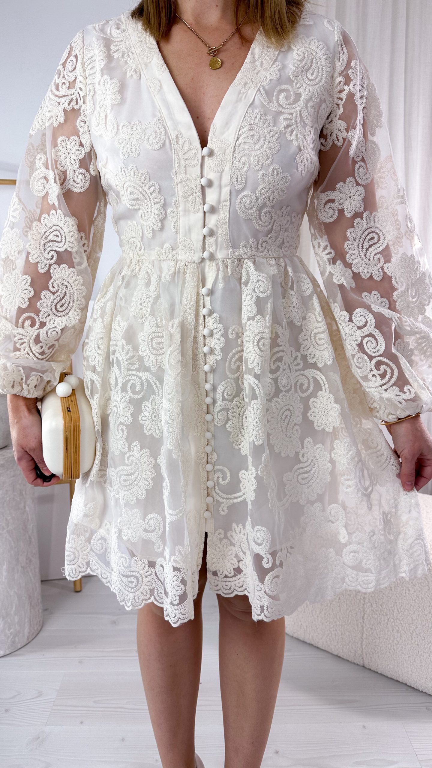 Charakterystyczny kształt bombki nadaje sylwetce lekkości i wyjątkowego uroku, podkreślając talię i tworząc delikatnie rozkloszowaną linię. To model, który łączy klasykę z nietuzinkowym wyglądem, dzięki czemu przyciąga uwagę w najbardziej stylowy sposób.