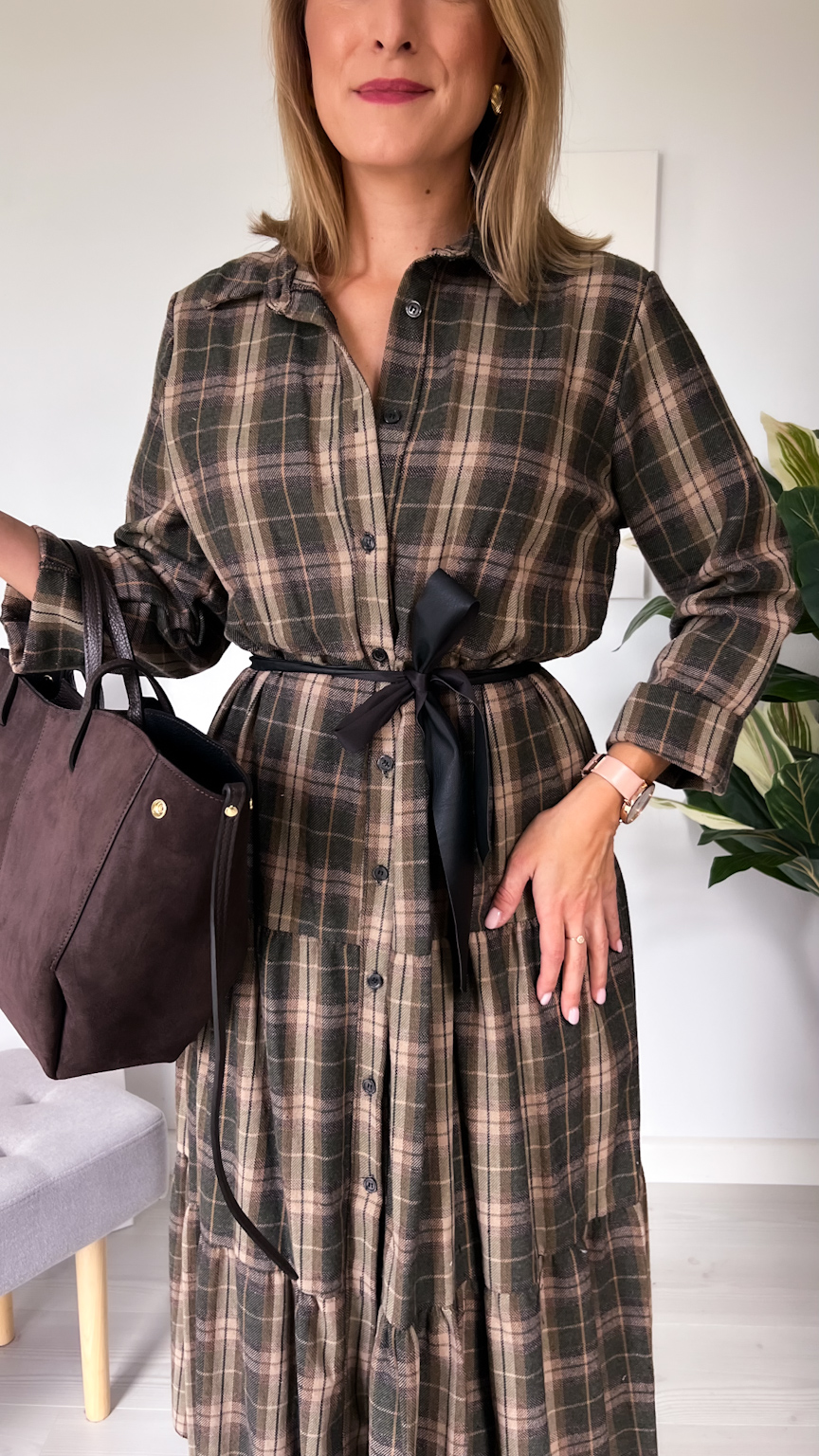Sukienka maxi w jesienną kratkę – styl i wygoda w jednym