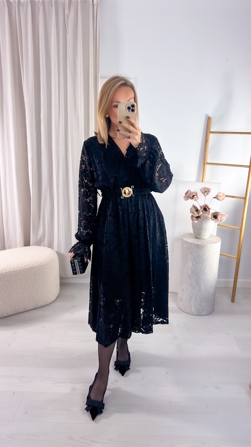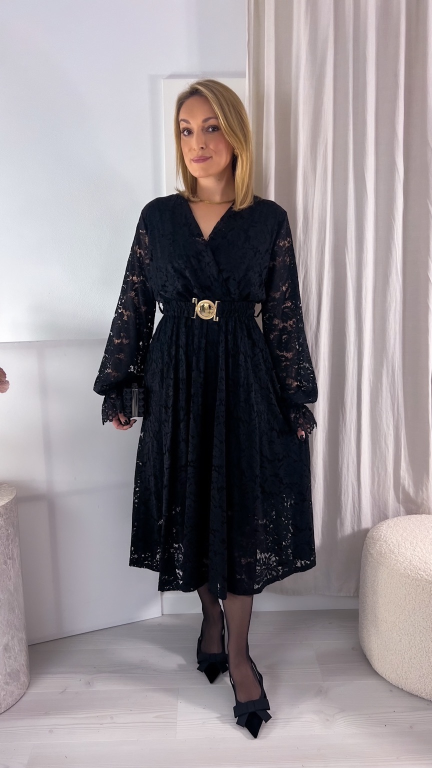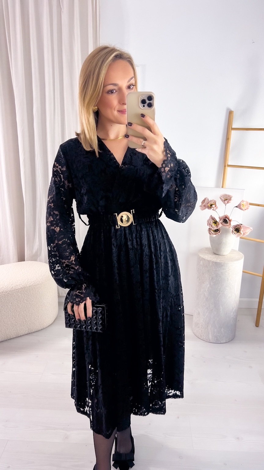 Delikatna i niezwykle kobieca sukienka midi z koronki to połączenie elegancji i komfortu. Model z kopertowym dekoltem pięknie podkreśla biust i jest wyjątkowo praktyczny dla kobiet karmiących piersią.