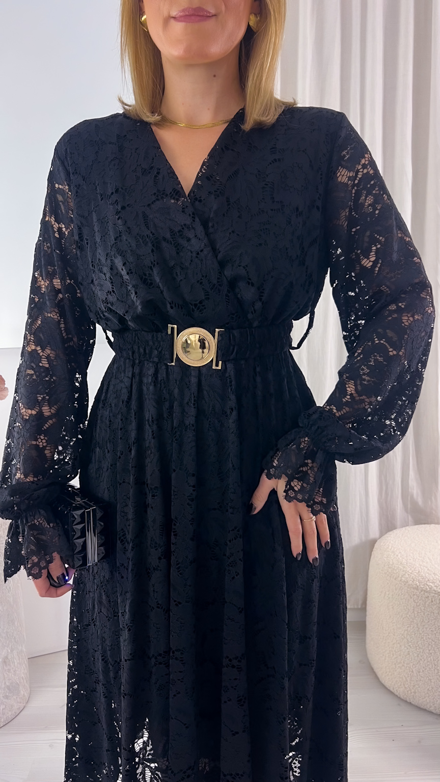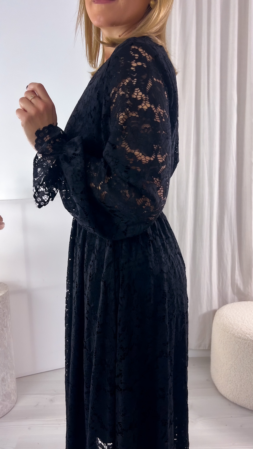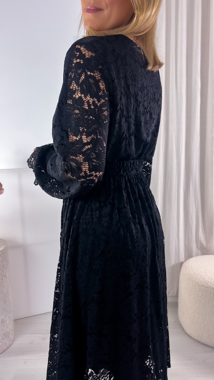 Delikatna i niezwykle kobieca sukienka midi z koronki to połączenie elegancji i komfortu. Model z kopertowym dekoltem pięknie podkreśla biust i jest wyjątkowo praktyczny dla kobiet karmiących piersią.