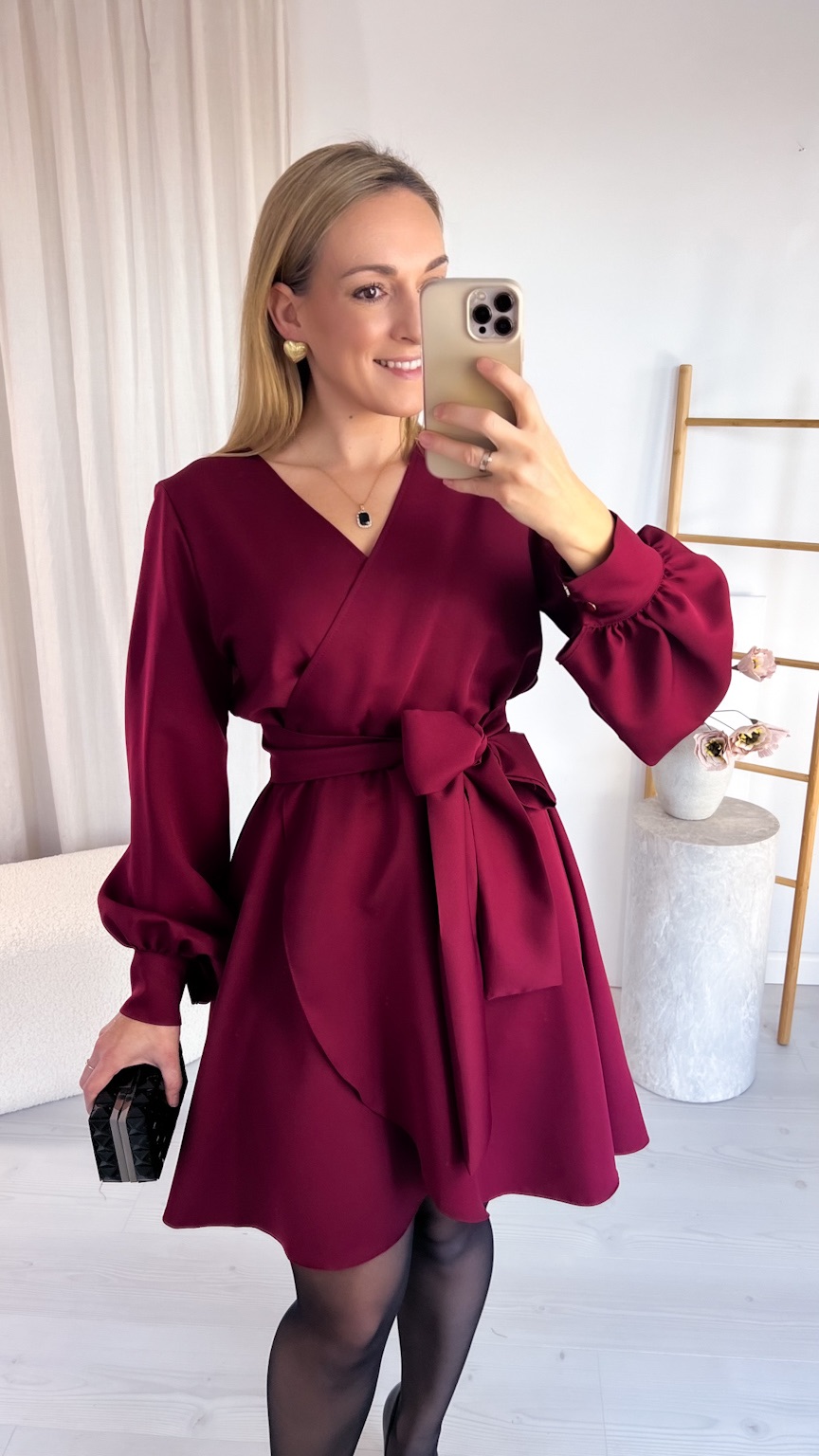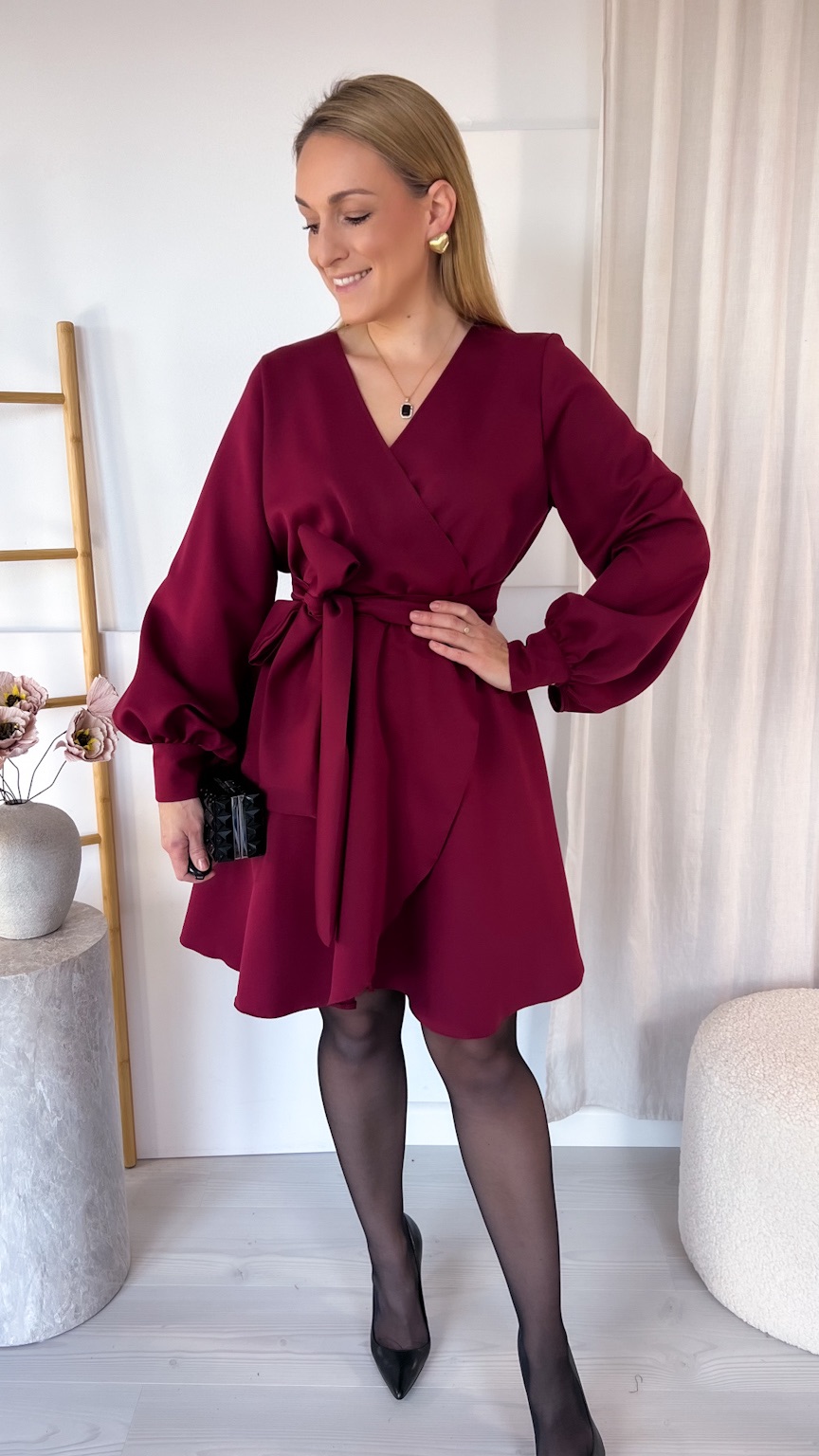 W głębokim, ponadczasowym kolorze bordo prezentuje się wyjątkowo szykownie — to odcień idealny na świąteczny czas, rodzinne uroczystości i eleganckie spotkania.
