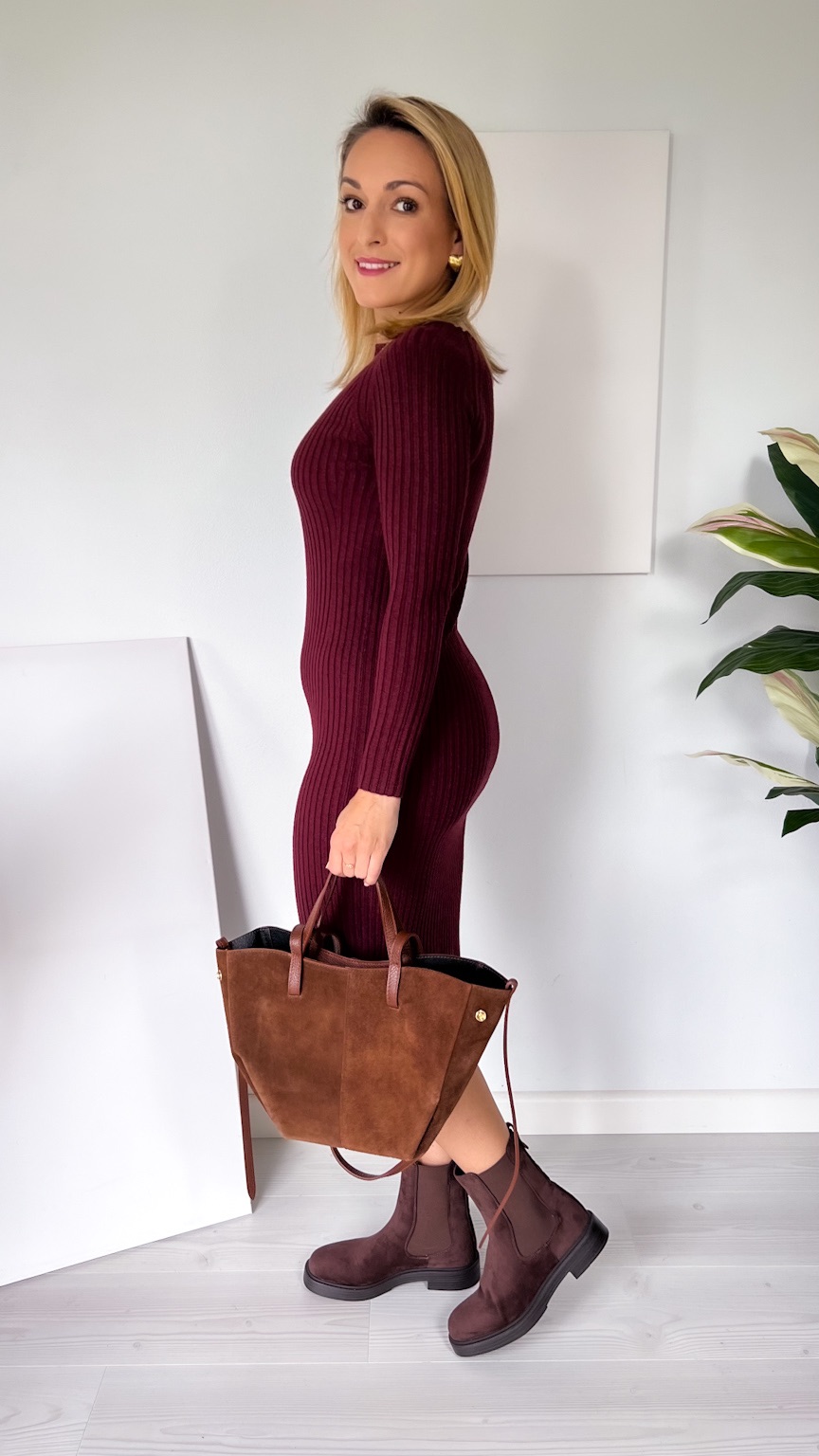 Postaw na wygodę i kobiecy styl w jesiennym sezonie! Nasza prążkowana sukienka typu tuba została uszyta z wyjątkowo elastycznej tkaniny, która doskonale dopasowuje się do sylwetki i zapewnia pełną swobodę ruchów. Dzięki swojej rozciągliwości świetnie sprawdzi się także na ciążowe brzuszki, gwarantując komfort i styl w każdej fazie.