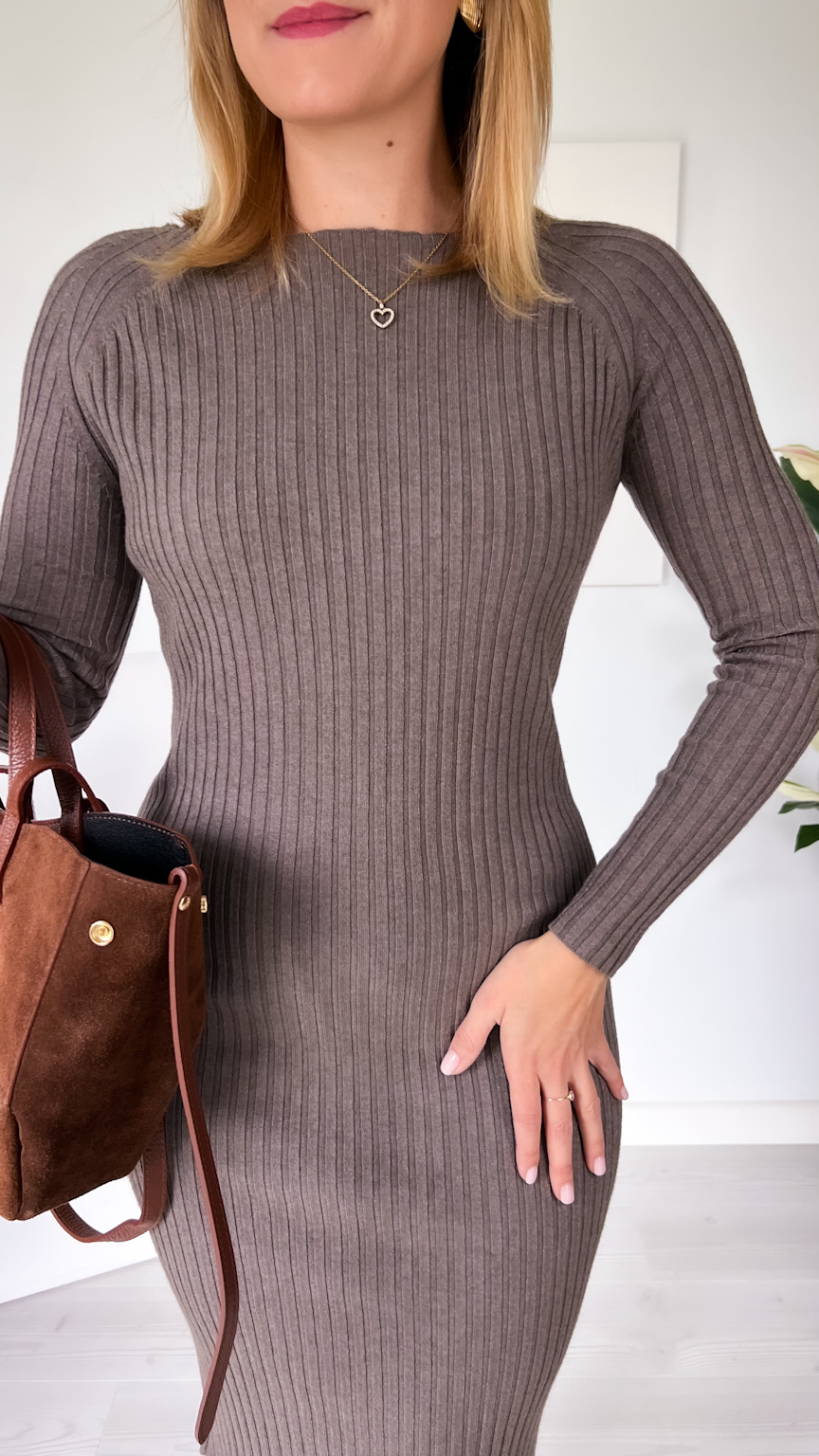 Postaw na wygodę i kobiecy styl w jesiennym sezonie! Nasza prążkowana sukienka typu tuba została uszyta z wyjątkowo elastycznej tkaniny, która doskonale dopasowuje się do sylwetki i zapewnia pełną swobodę ruchów. Dzięki swojej rozciągliwości świetnie sprawdzi się także na ciążowe brzuszki, gwarantując komfort i styl w każdej fazie.