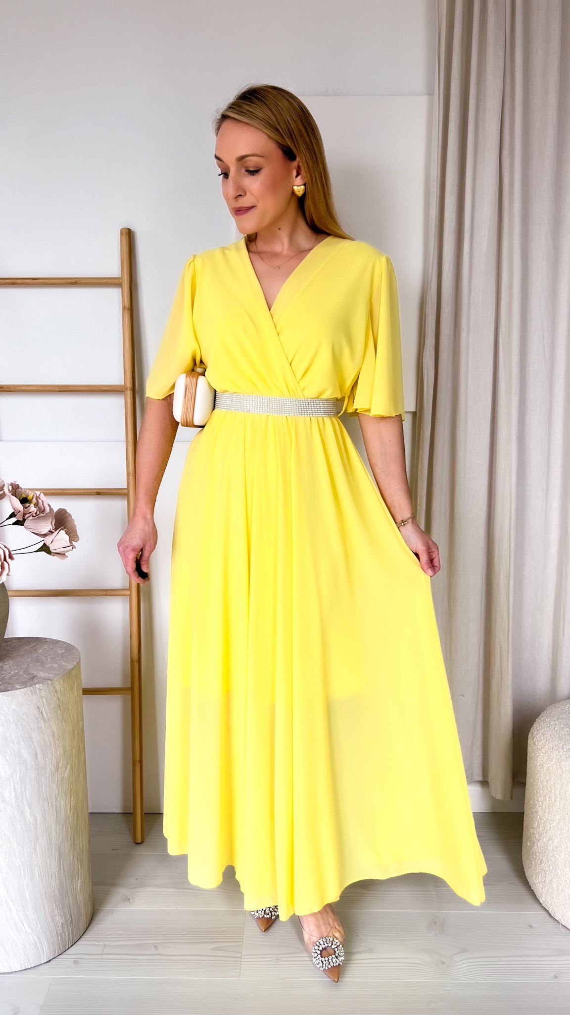 Sukienka maxi z błyszczącym paskiem – elegancja na wielkie okazje
