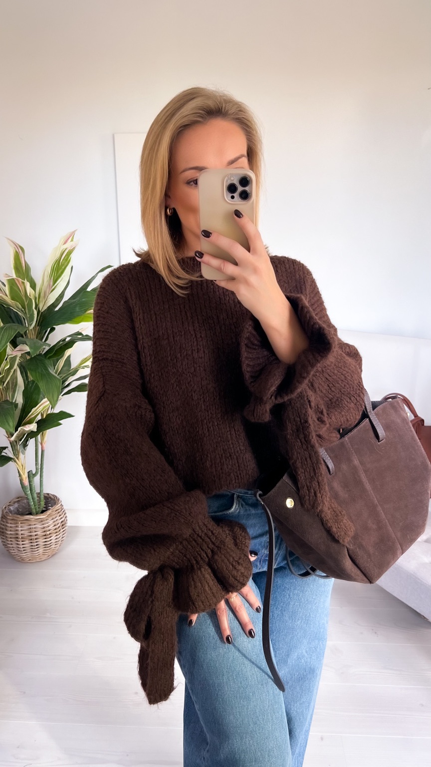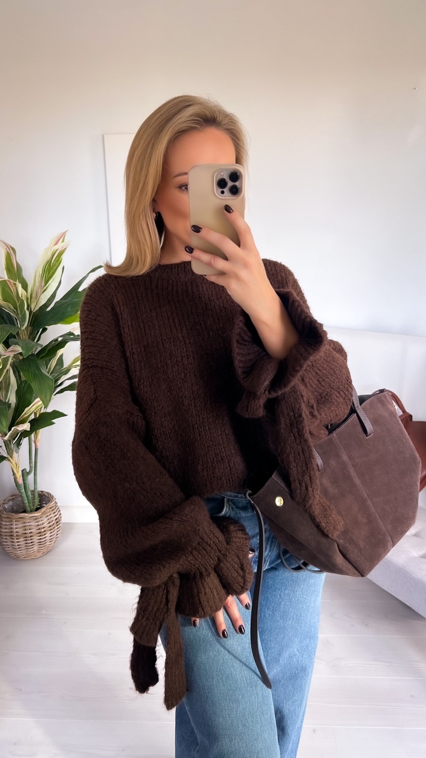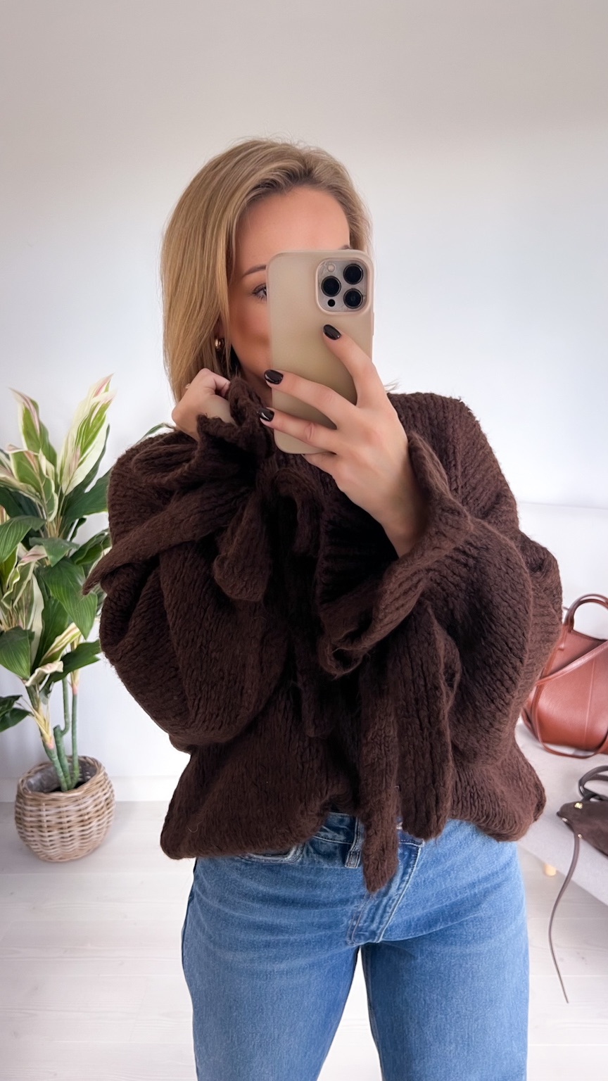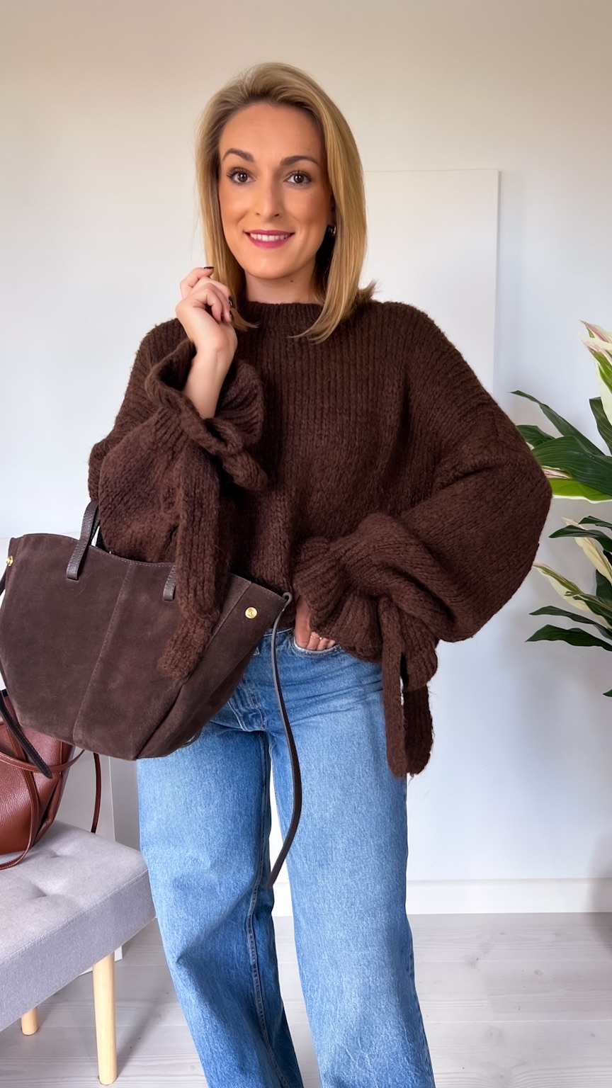 Zjawiskowy i kobiecy – ten sweter oversize z efektownymi kokardami na rękawach to must-have nadchodzącego sezonu. Luźny krój gwarantuje wygodę i swobodę ruchów, a dekoracyjne wiązania nadają całości wyjątkowego, romantycznego charakteru.