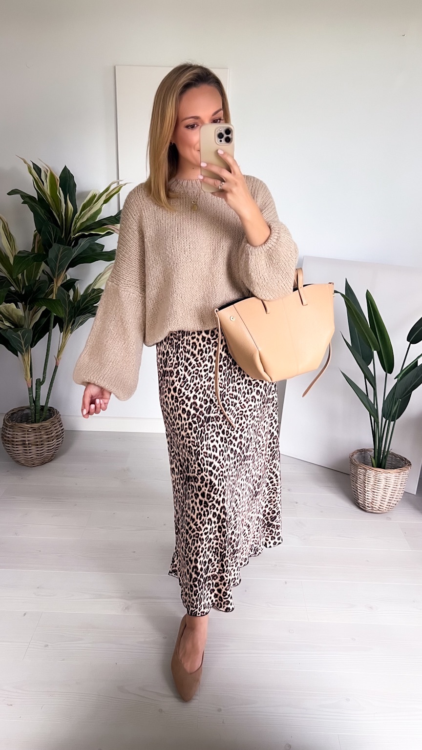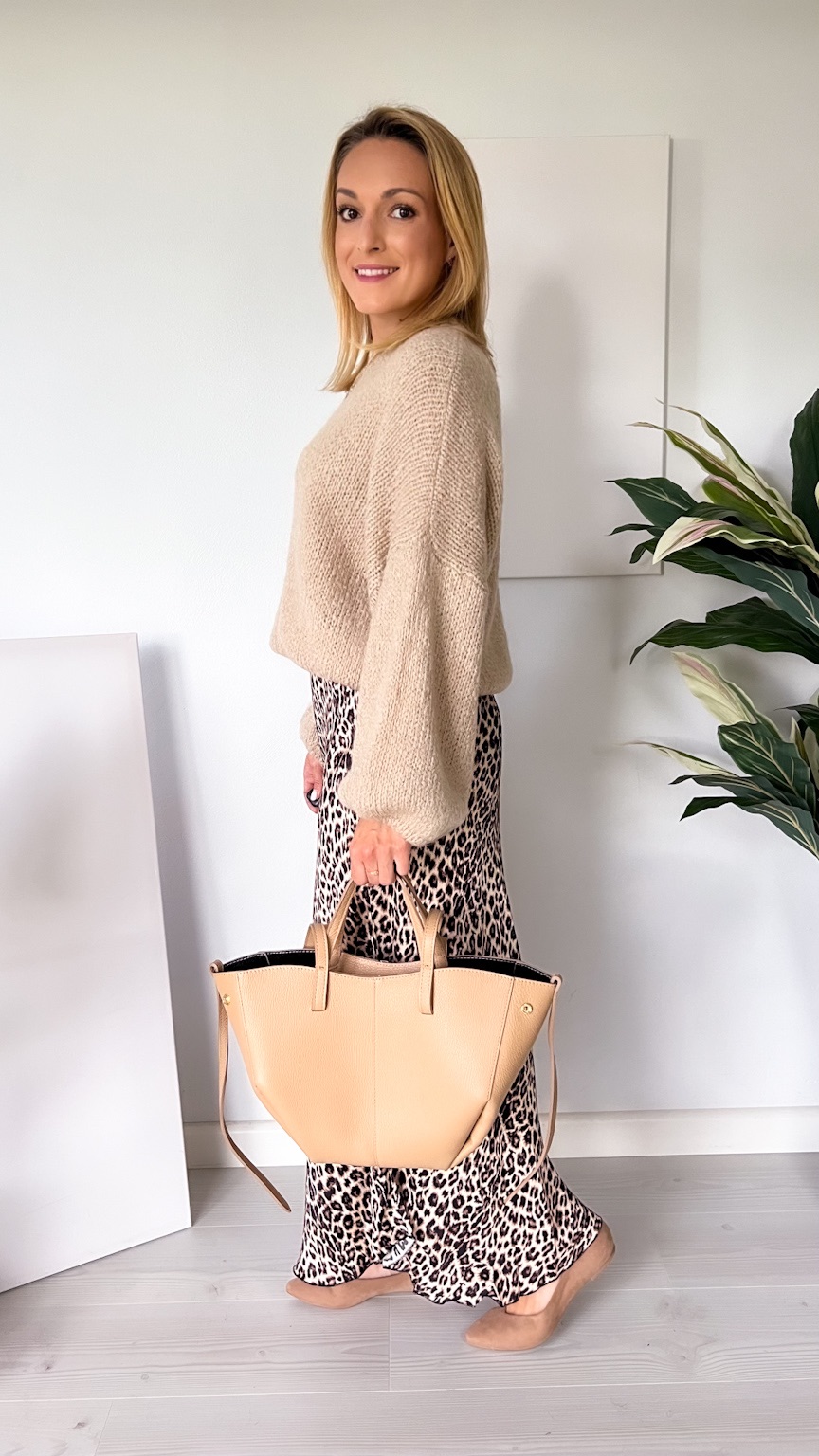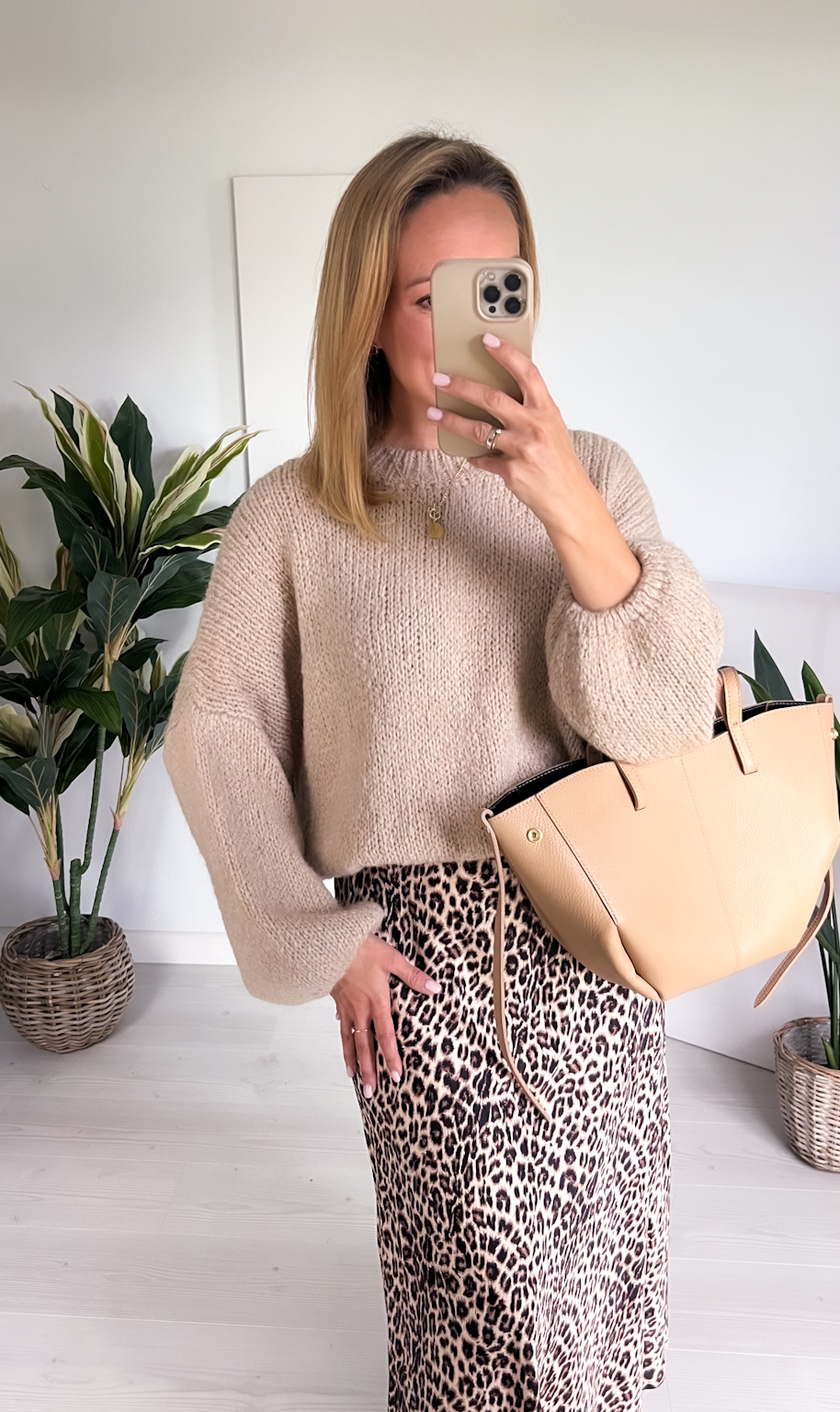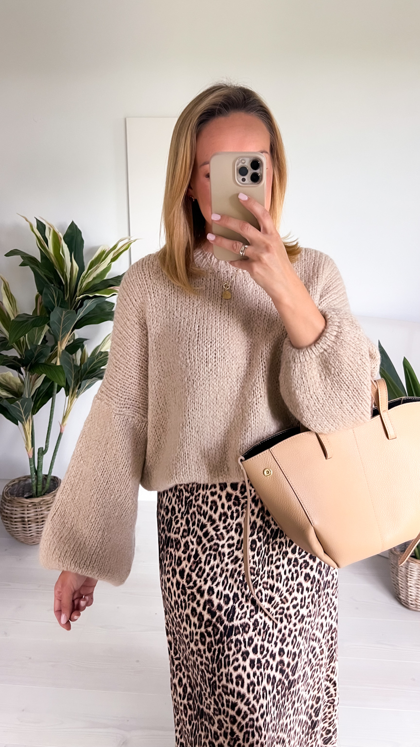Przyjemny i otulający sweterek wykonany z miękkiej dzianiny to must-have w każdej garderobie. Szerszy dekolt subtelnie podkreśla linię szyi, a bufiaste rękawy zakończone ściągaczem dodają całości lekkości i stylu. Dzięki oversize’owemu krojowi oraz ściągaczowi w dole prezentuje się niezwykle swobodnie, a jednocześnie modnie.