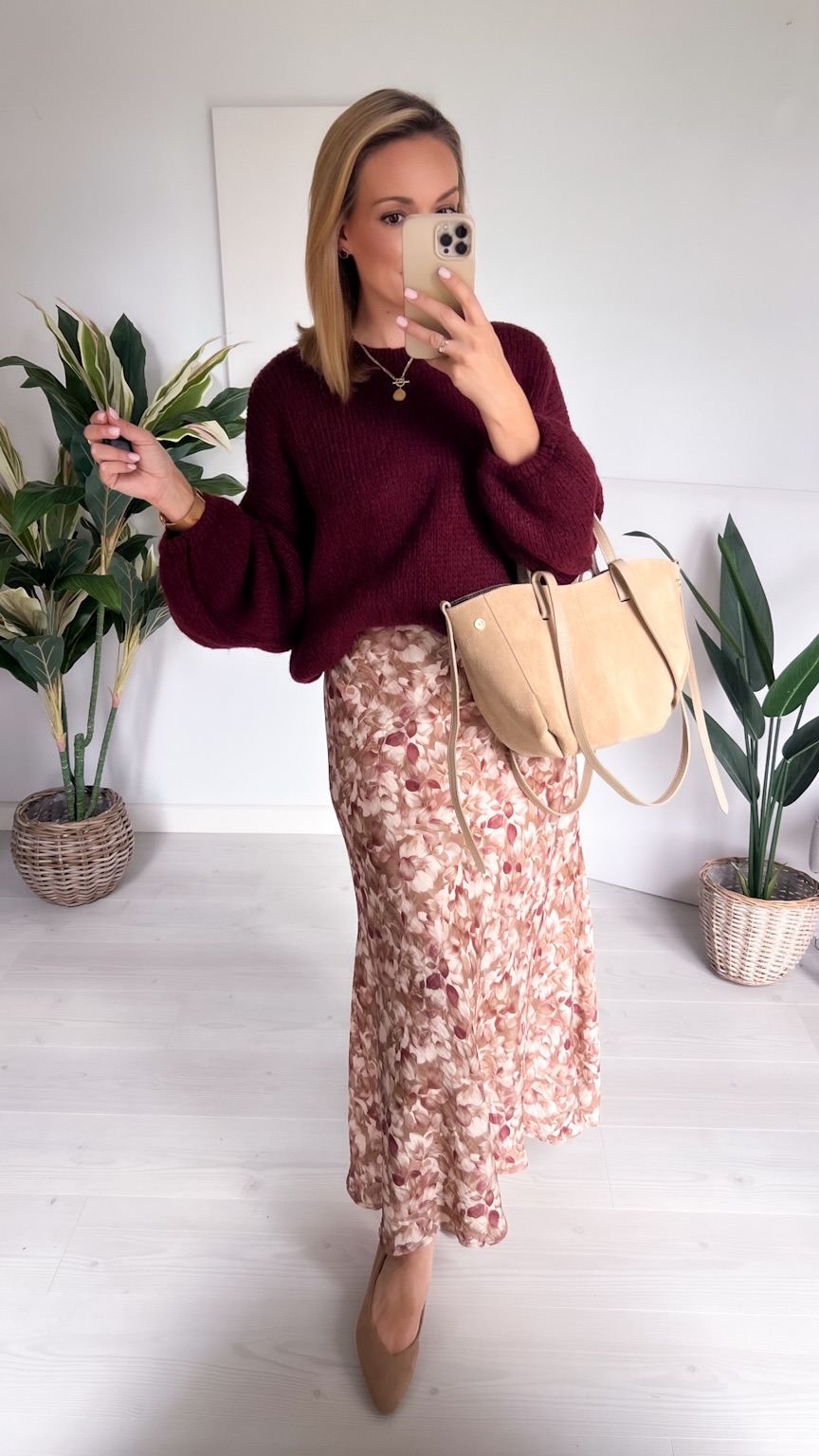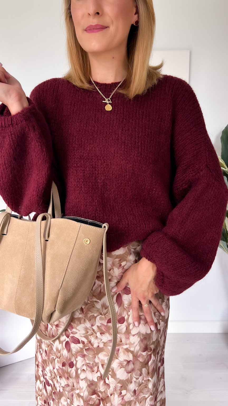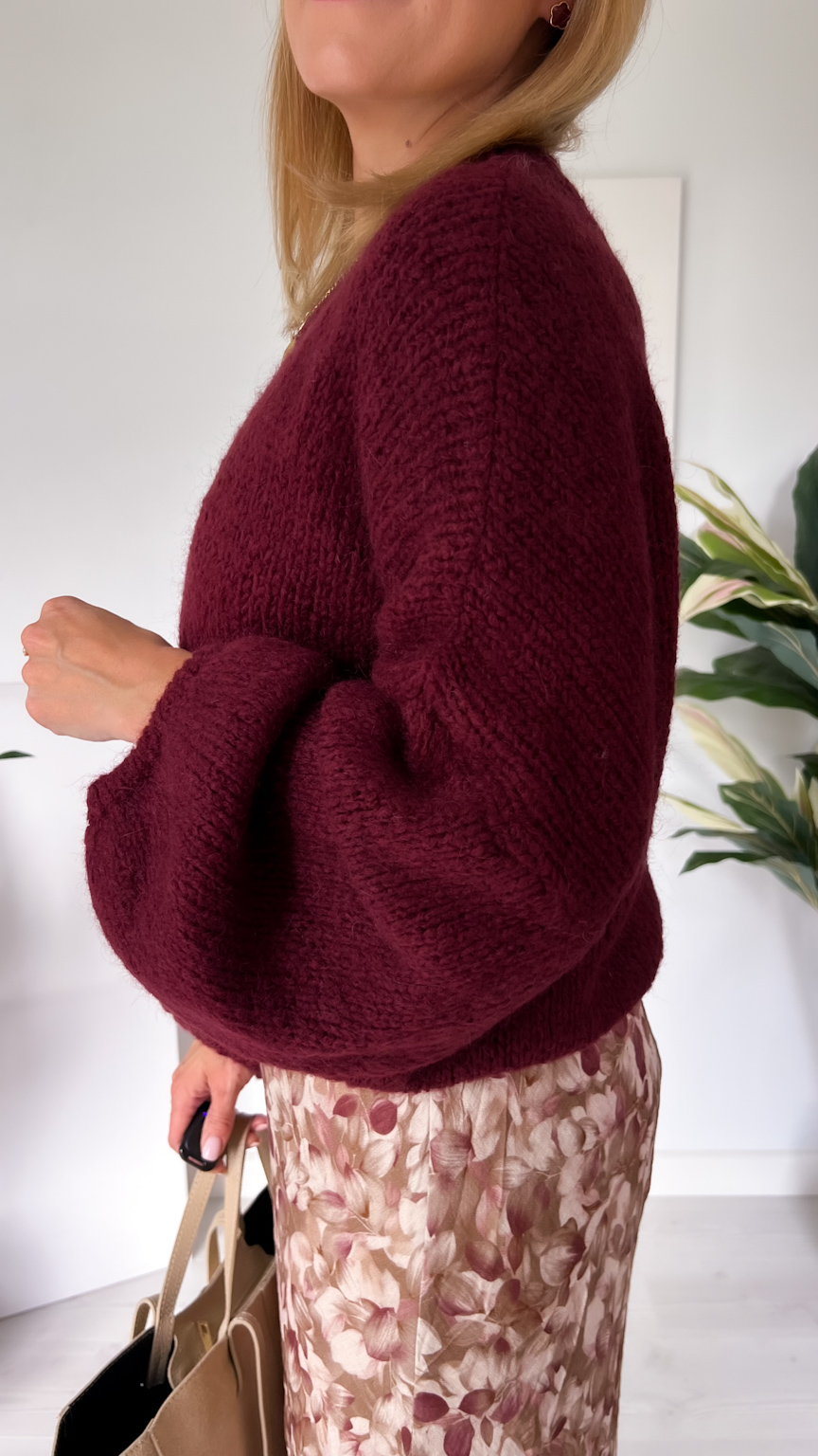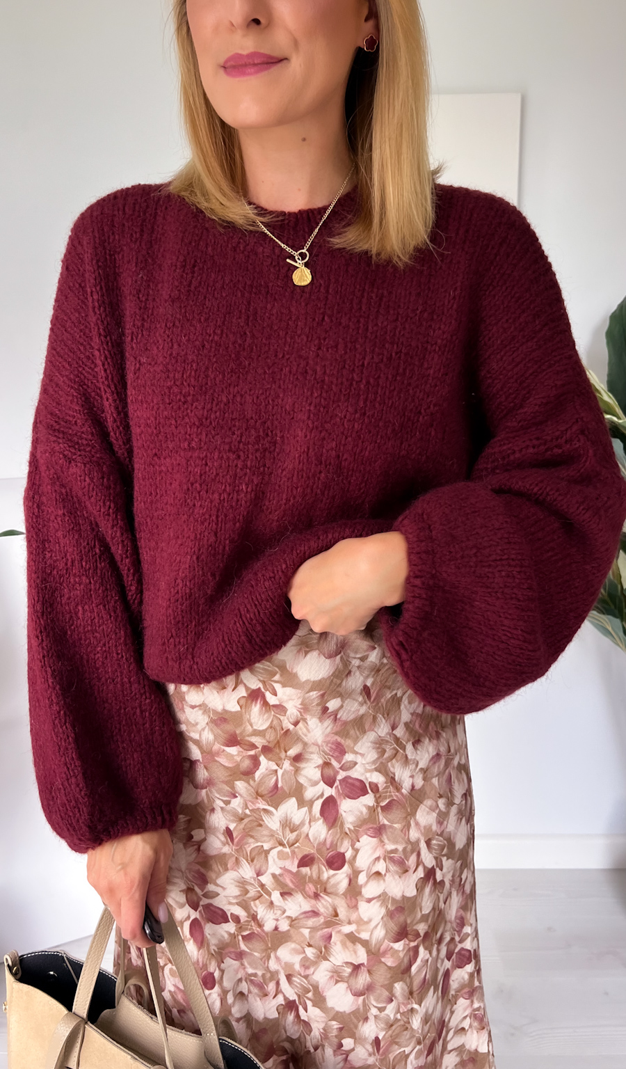 Przyjemny i otulający sweterek wykonany z miękkiej dzianiny to must-have w każdej garderobie. Szerszy dekolt subtelnie podkreśla linię szyi, a bufiaste rękawy zakończone ściągaczem dodają całości lekkości i stylu. Dzięki oversize’owemu krojowi oraz ściągaczowi w dole prezentuje się niezwykle swobodnie, a jednocześnie modnie.