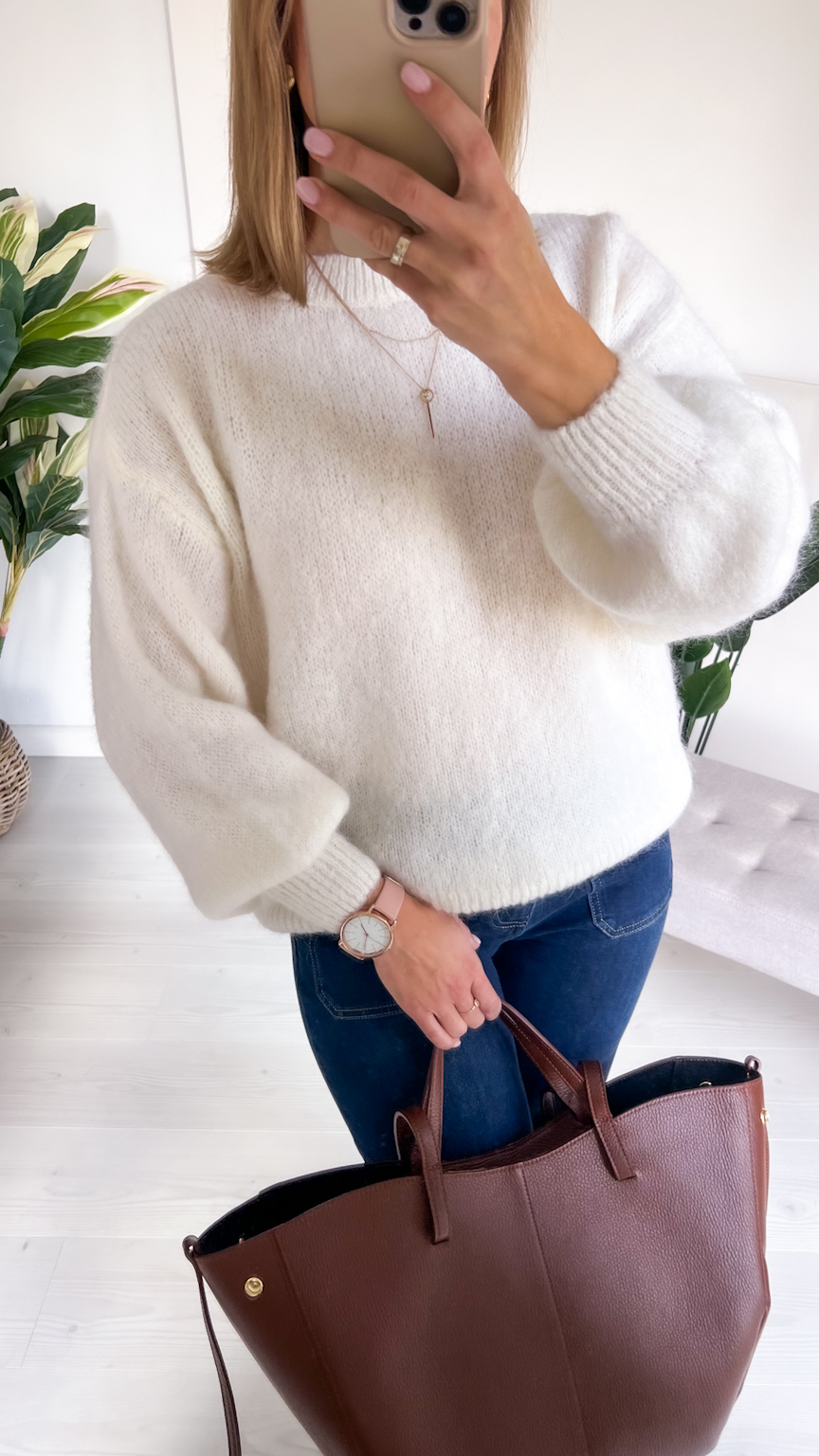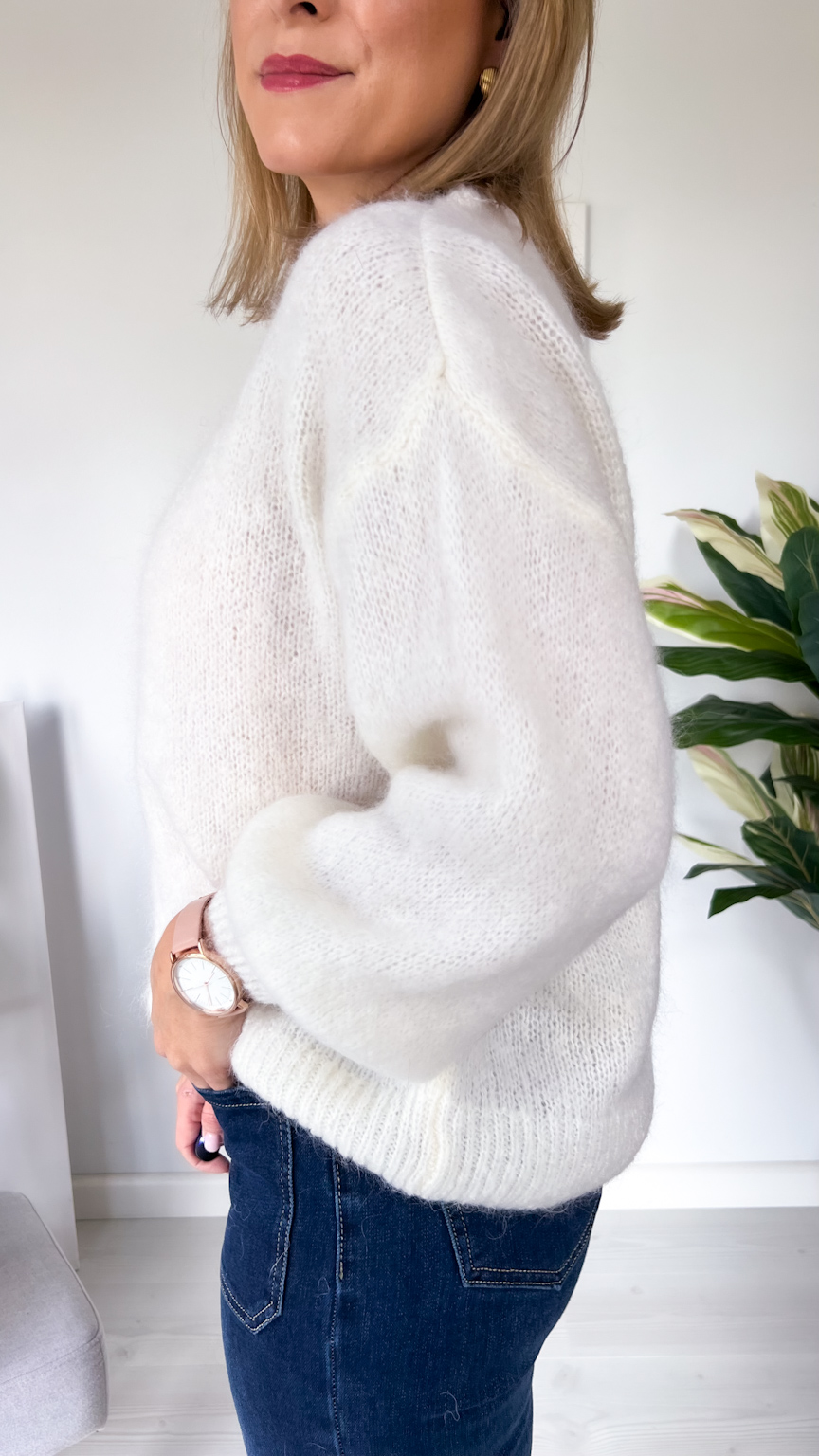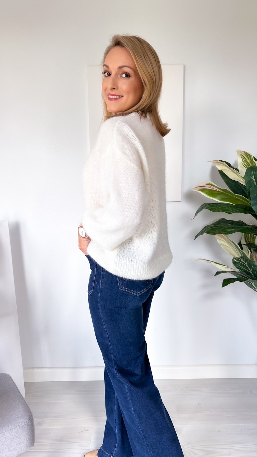 Wybierz klasyczny sweter z moherem, jeśli szukasz eleganckiego, naturalnego i ponadczasowego elementu garderoby, który doda przytulności każdej stylizacji.