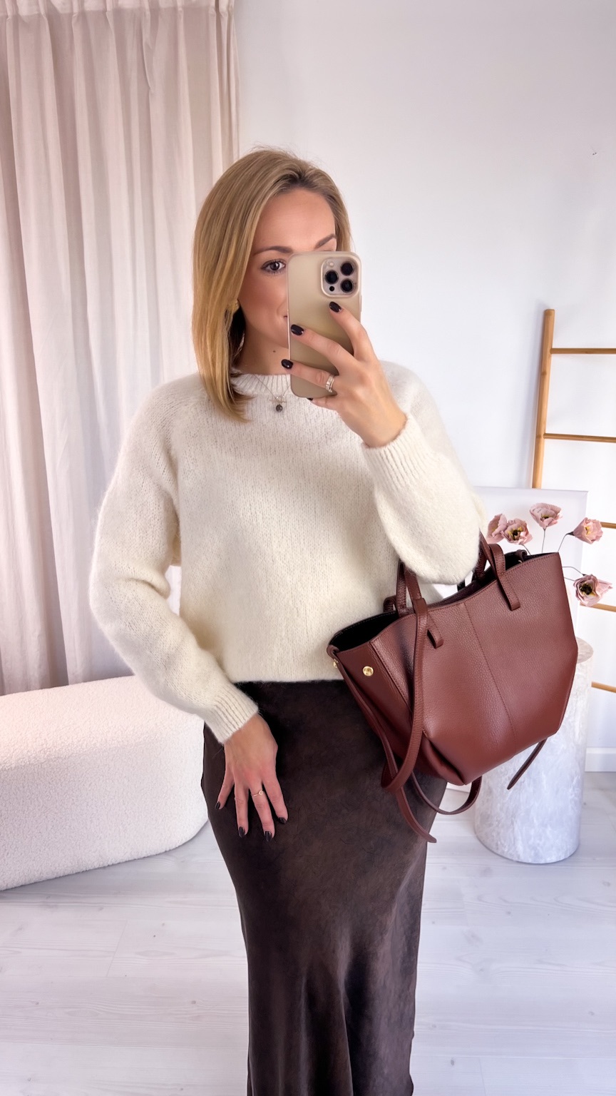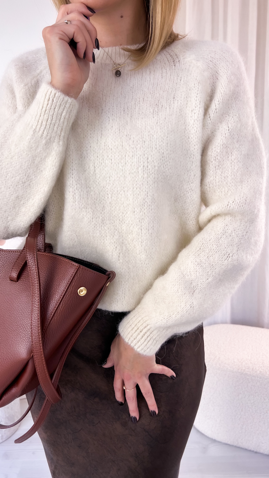Klasycznie szyty sweter wykonany z wysokiej jakości przędzy z dodatkiem 50% alpaki to ponadczasowy element garderoby, który zachwyca miękkością i komfortem noszenia. Naturalne włókna alpaki sprawiają, że sweter jest wyjątkowo ciepły, lekki i przyjemny w dotyku.