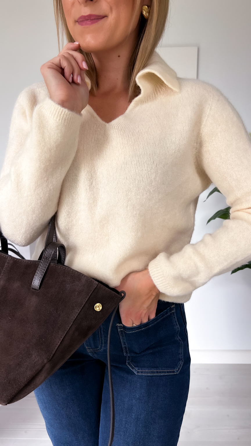 Postaw na sweterek z baby alpaki z kołnierzykiem, jeśli szukasz eleganckiego, naturalnego i komfortowego elementu garderoby, który doda klasy każdej stylizacji.