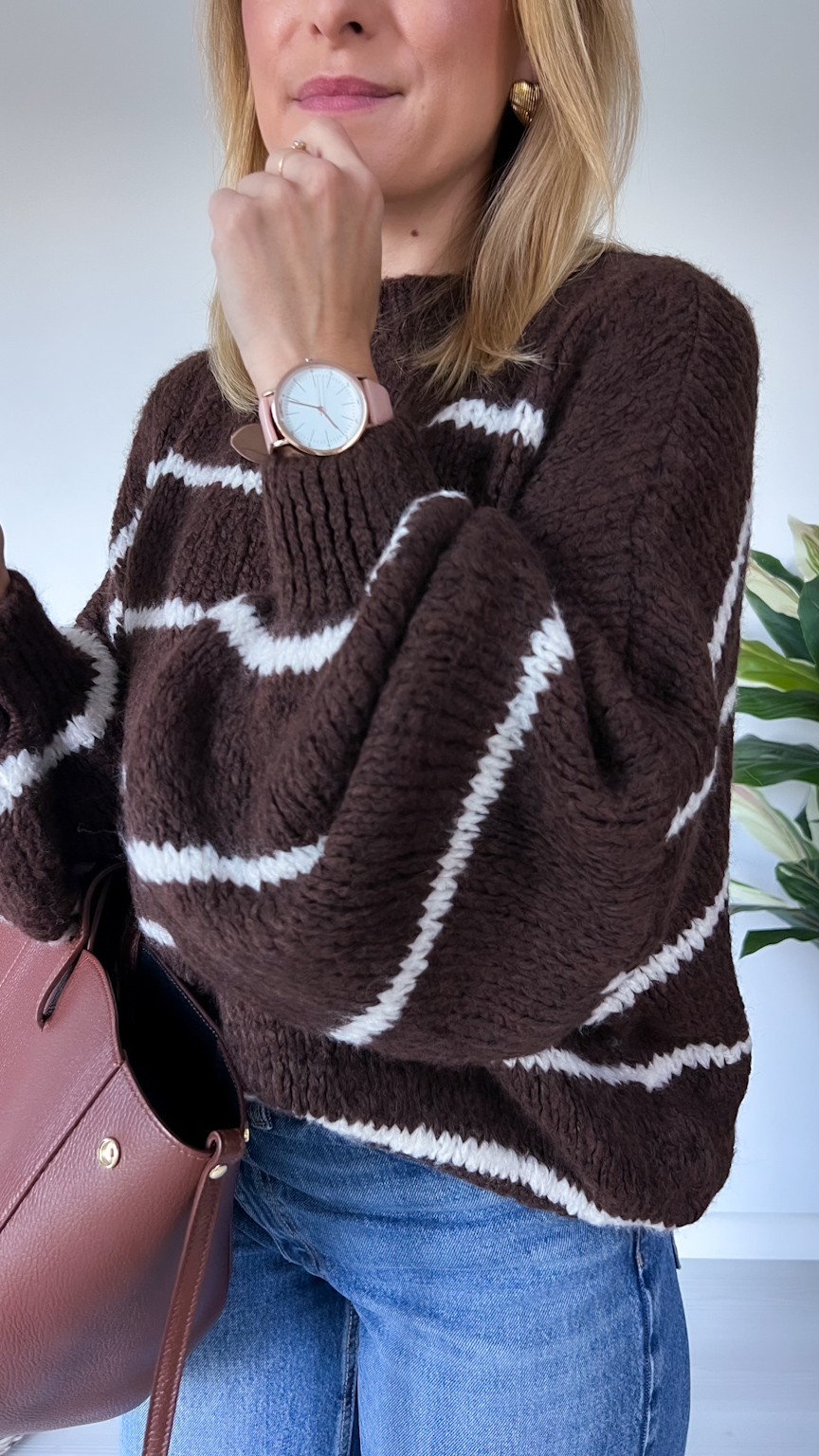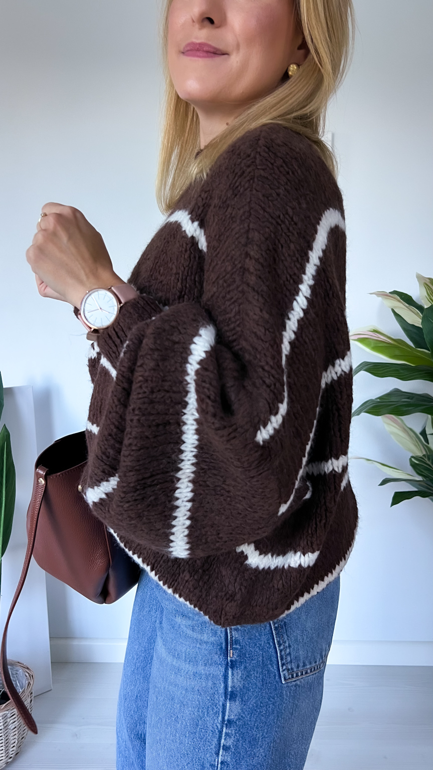 Ten niezwykle efektowny model to połączenie wygody i stylu, które przyciąga uwagę od pierwszego wejrzenia. Wykonany z mięsistej, przyjemnej w dotyku dzianiny, zapewnia komfort noszenia i doskonale otula w chłodniejsze dni. Szerokie rękawy zakończone elastycznym ściągaczem nadają całości modnego, nowoczesnego charakteru, a jednocześnie podkreślają lekkość fasonu.