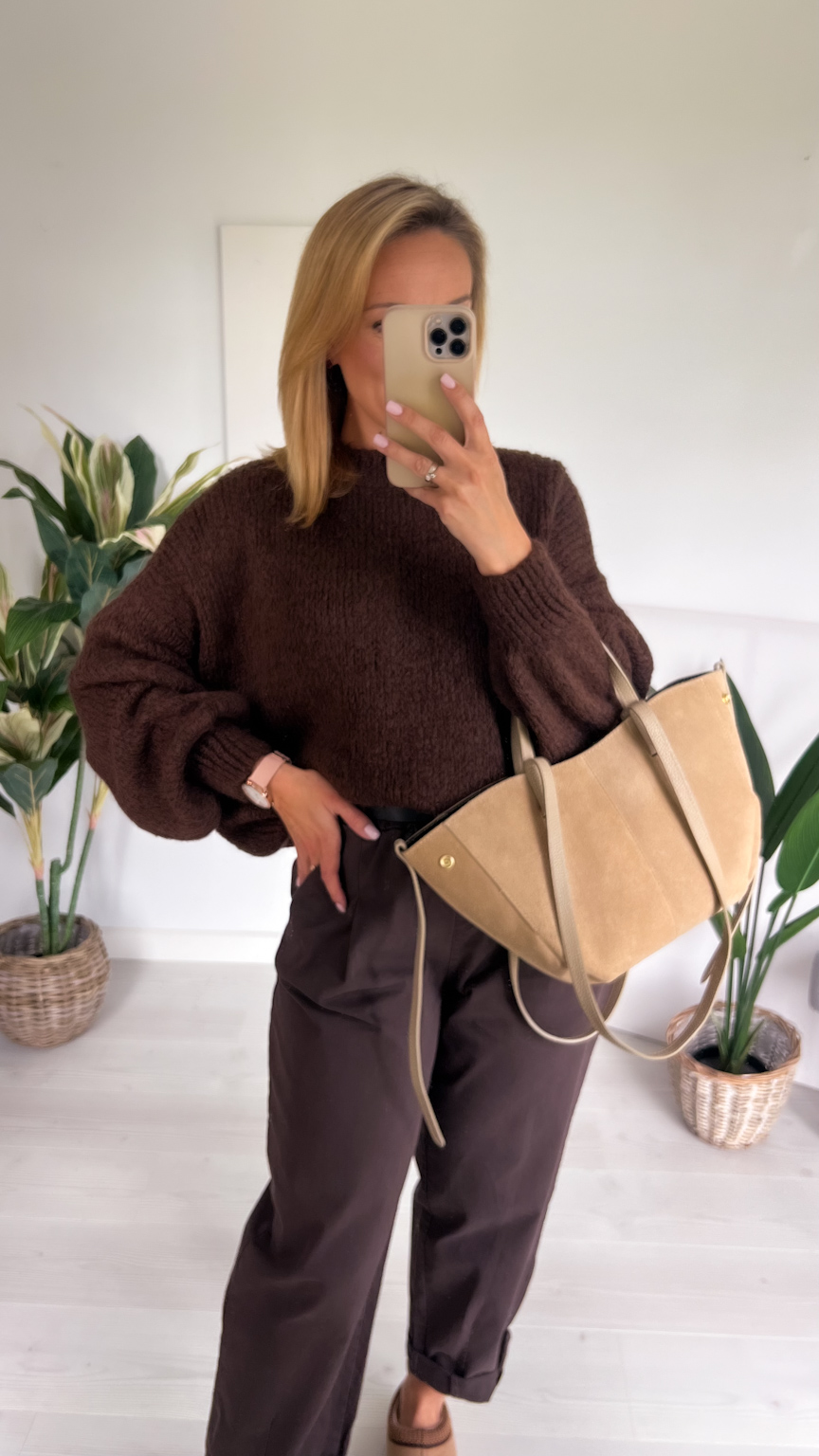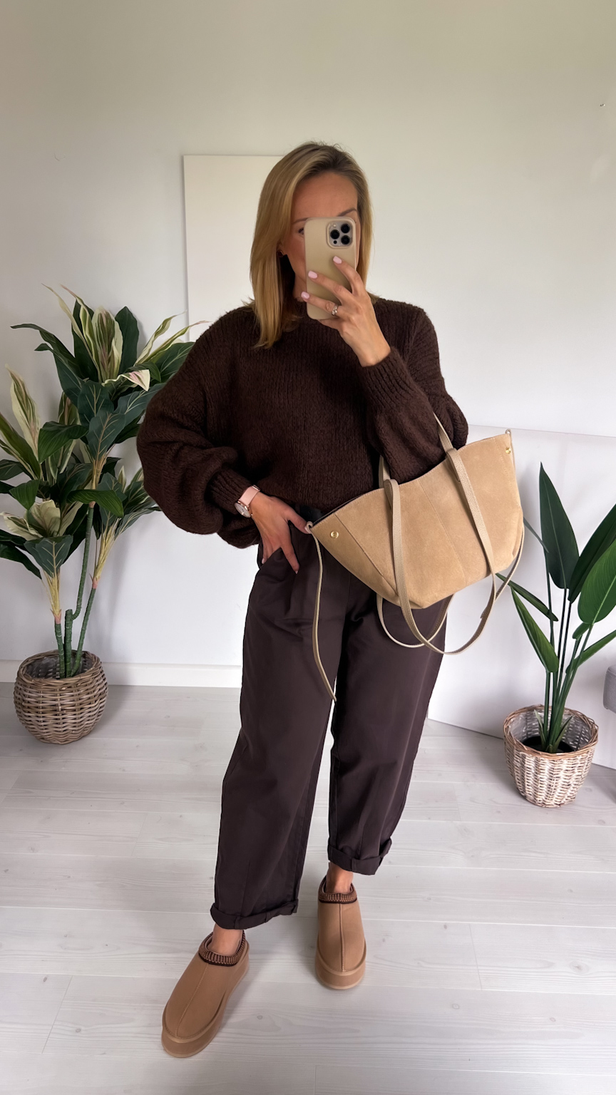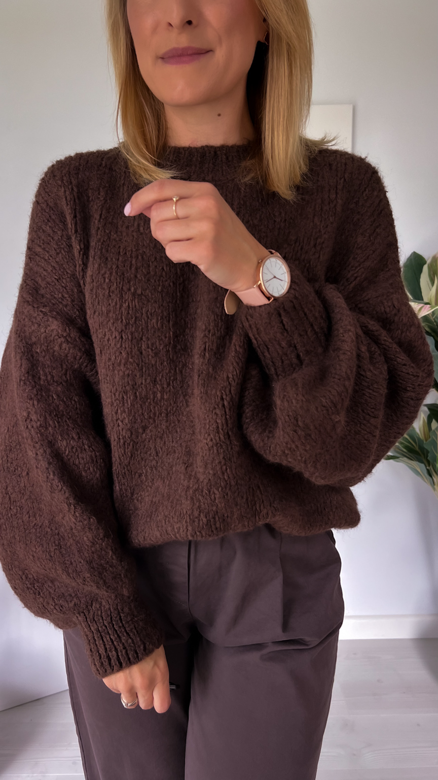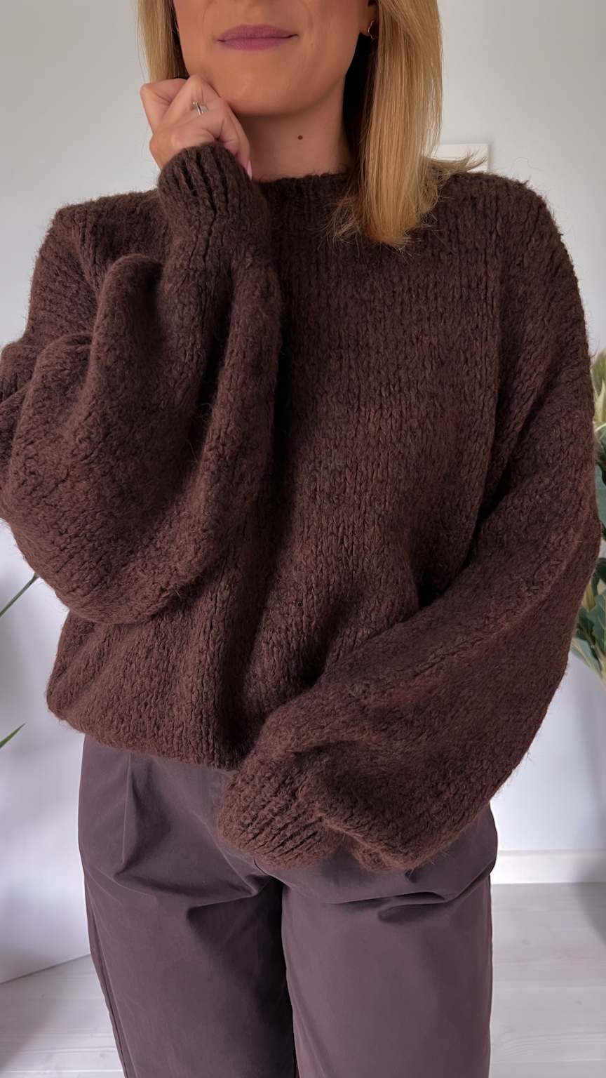 Ten niezwykle efektowny model to połączenie wygody i stylu, które przyciąga uwagę od pierwszego wejrzenia. Wykonany z mięsistej, przyjemnej w dotyku dzianiny, zapewnia komfort noszenia i doskonale otula w chłodniejsze dni. Szerokie rękawy zakończone elastycznym ściągaczem nadają całości modnego, nowoczesnego charakteru, a jednocześnie podkreślają lekkość fasonu.