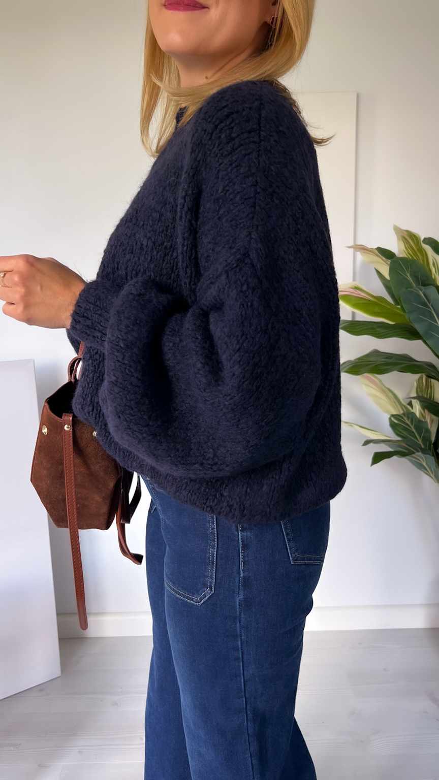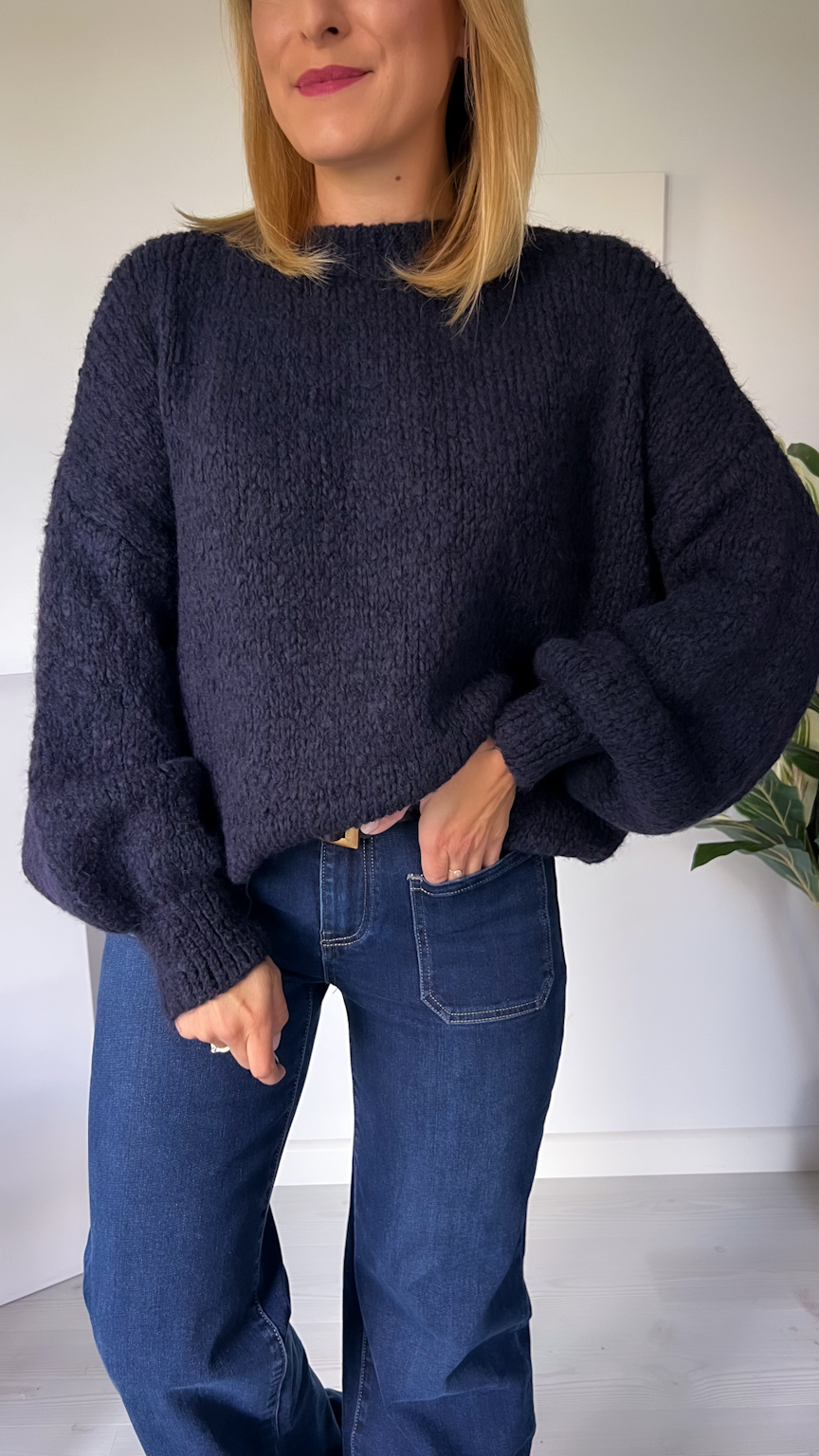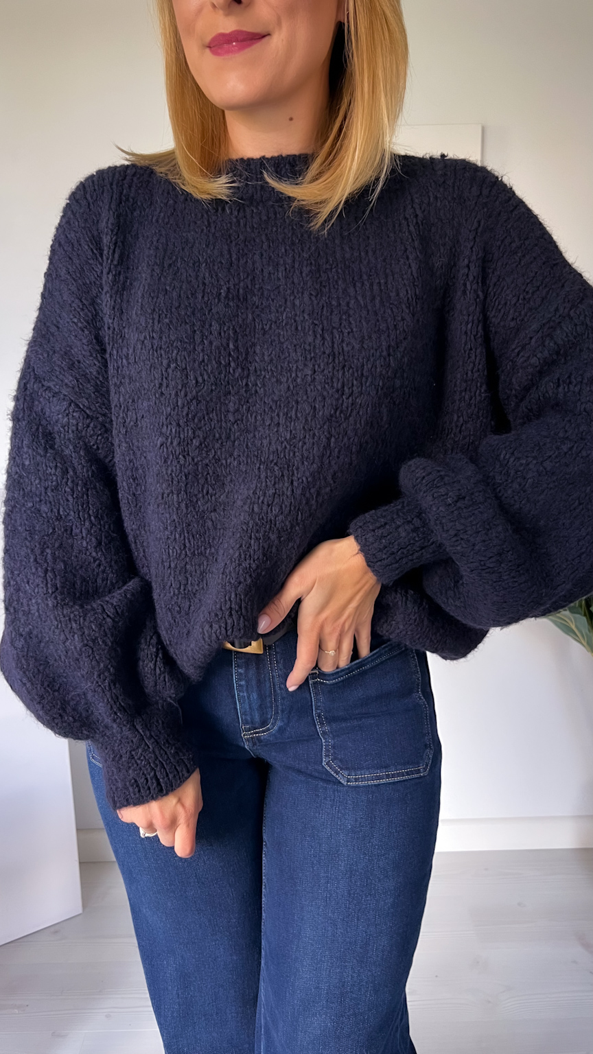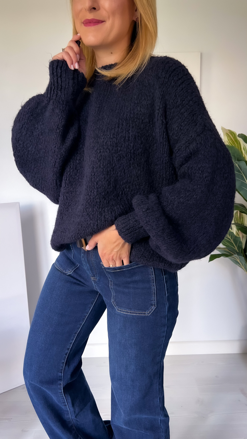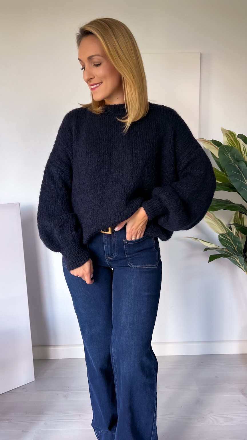 Ten niezwykle efektowny model to połączenie wygody i stylu, które przyciąga uwagę od pierwszego wejrzenia. Wykonany z mięsistej, przyjemnej w dotyku dzianiny, zapewnia komfort noszenia i doskonale otula w chłodniejsze dni. Szerokie rękawy zakończone elastycznym ściągaczem nadają całości modnego, nowoczesnego charakteru, a jednocześnie podkreślają lekkość fasonu.