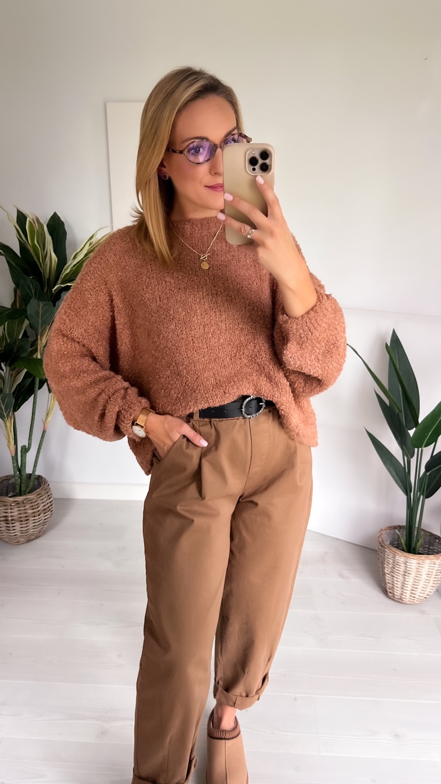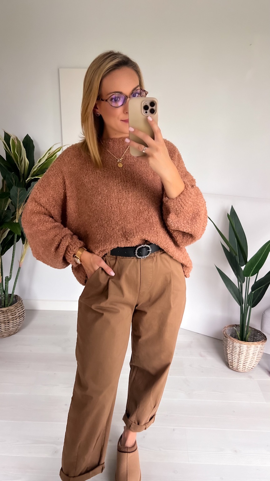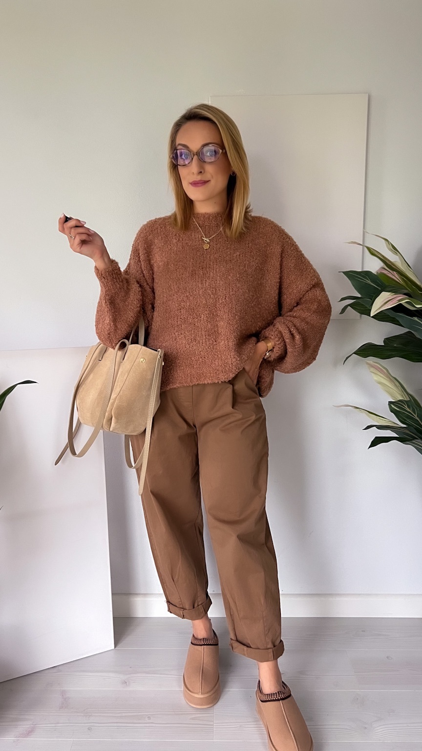 Sweter z bukli łączy styl, wygodę i ponadczasowy design – idealny wybór na co dzień oraz na wyjątkowe okazje.