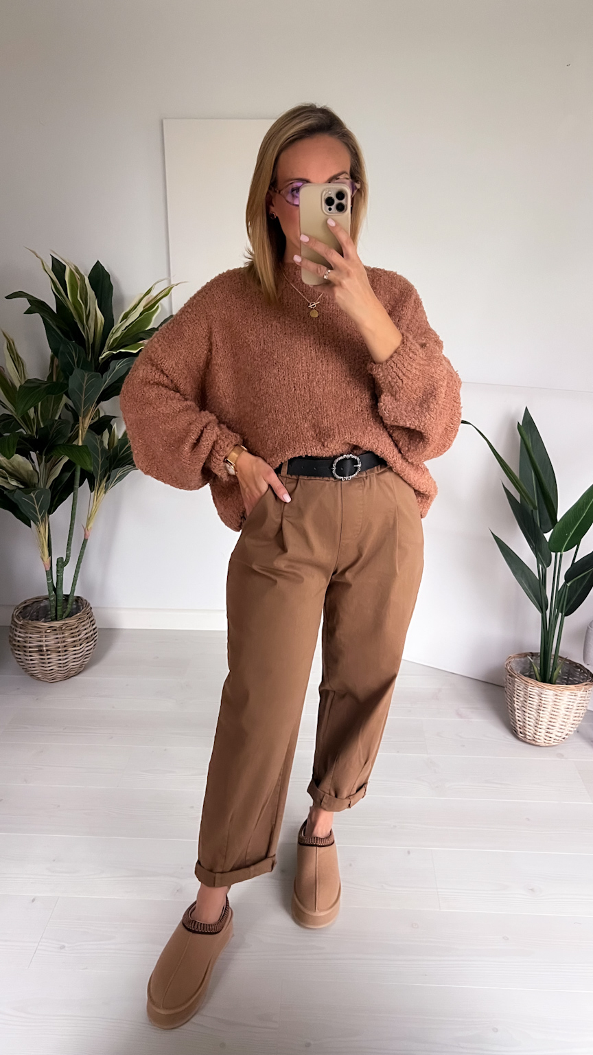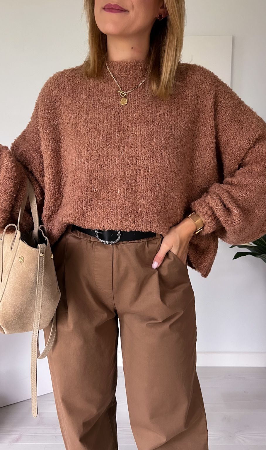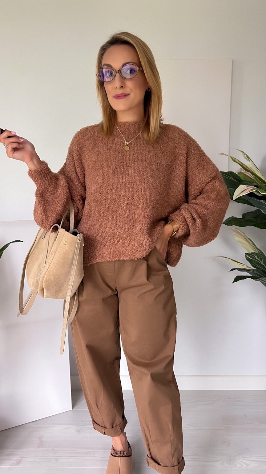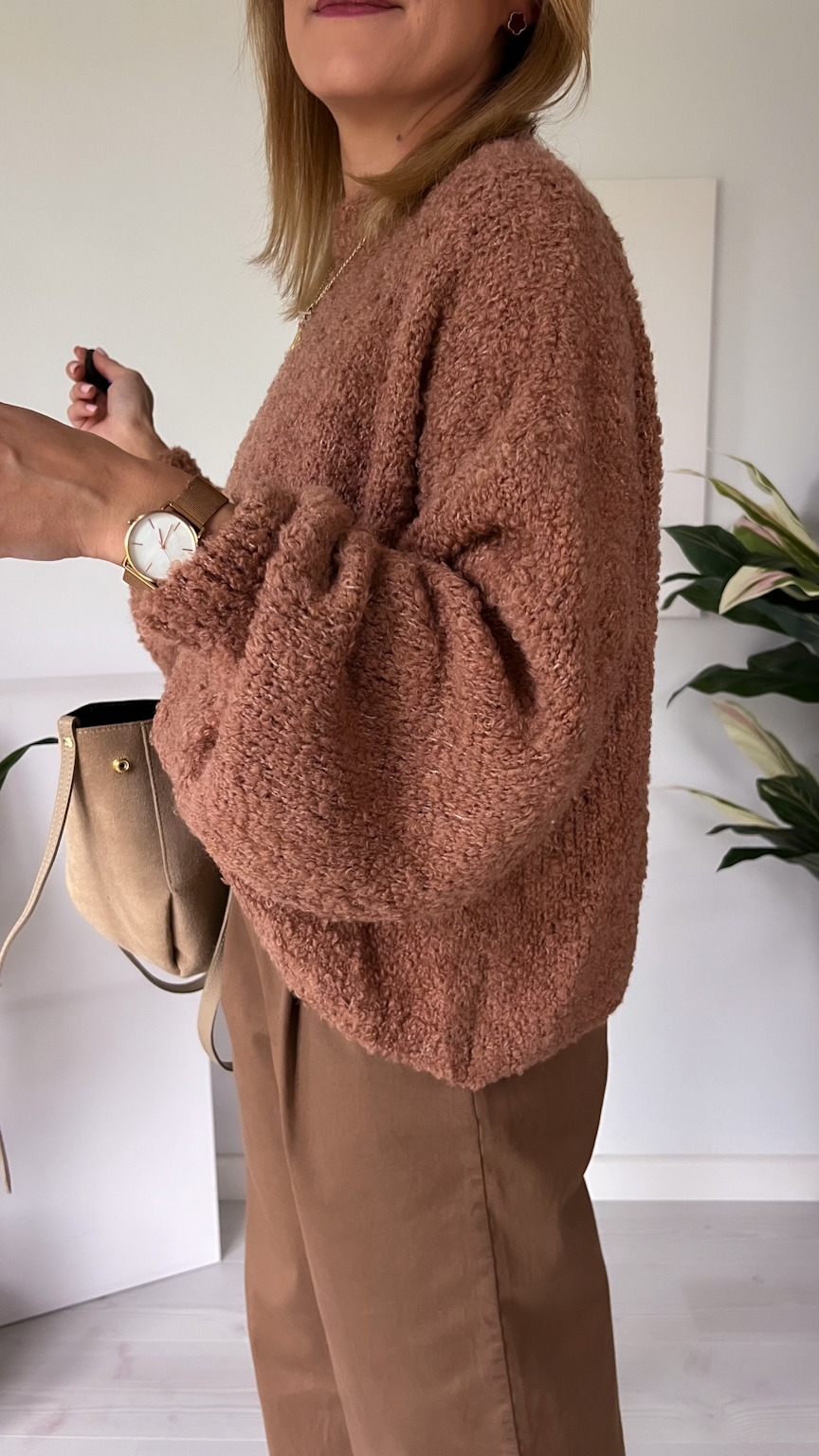 Sweter z bukli łączy styl, wygodę i ponadczasowy design – idealny wybór na co dzień oraz na wyjątkowe okazje.