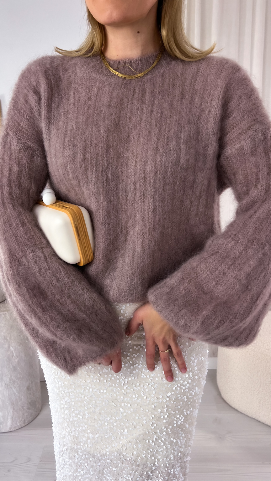 Dodaj swojej stylizacji nutę elegancji i lekkości dzięki wyjątkowemu swetrowi wykonanemu z domieszką moheru. To model zakładany przez głowę, o klasycznym prążkowanym splocie, który pięknie dopasowuje się do sylwetki. Jego charakterystycznym detalem są szeroko rozszerzane rękawy – efektowne i kobiece, nadają całości subtelnej nonszalancji.