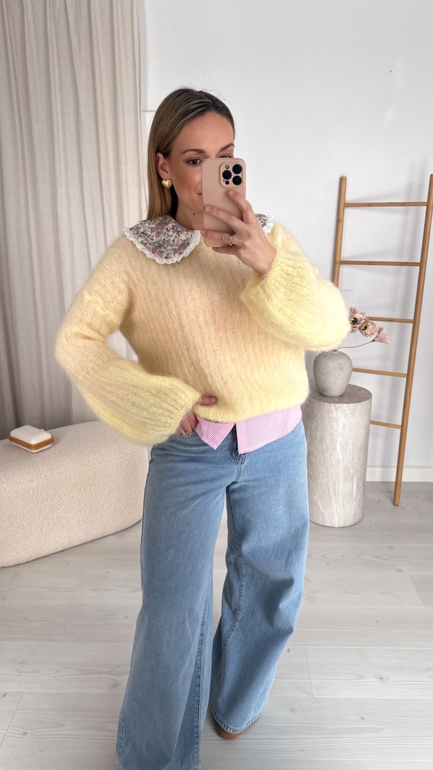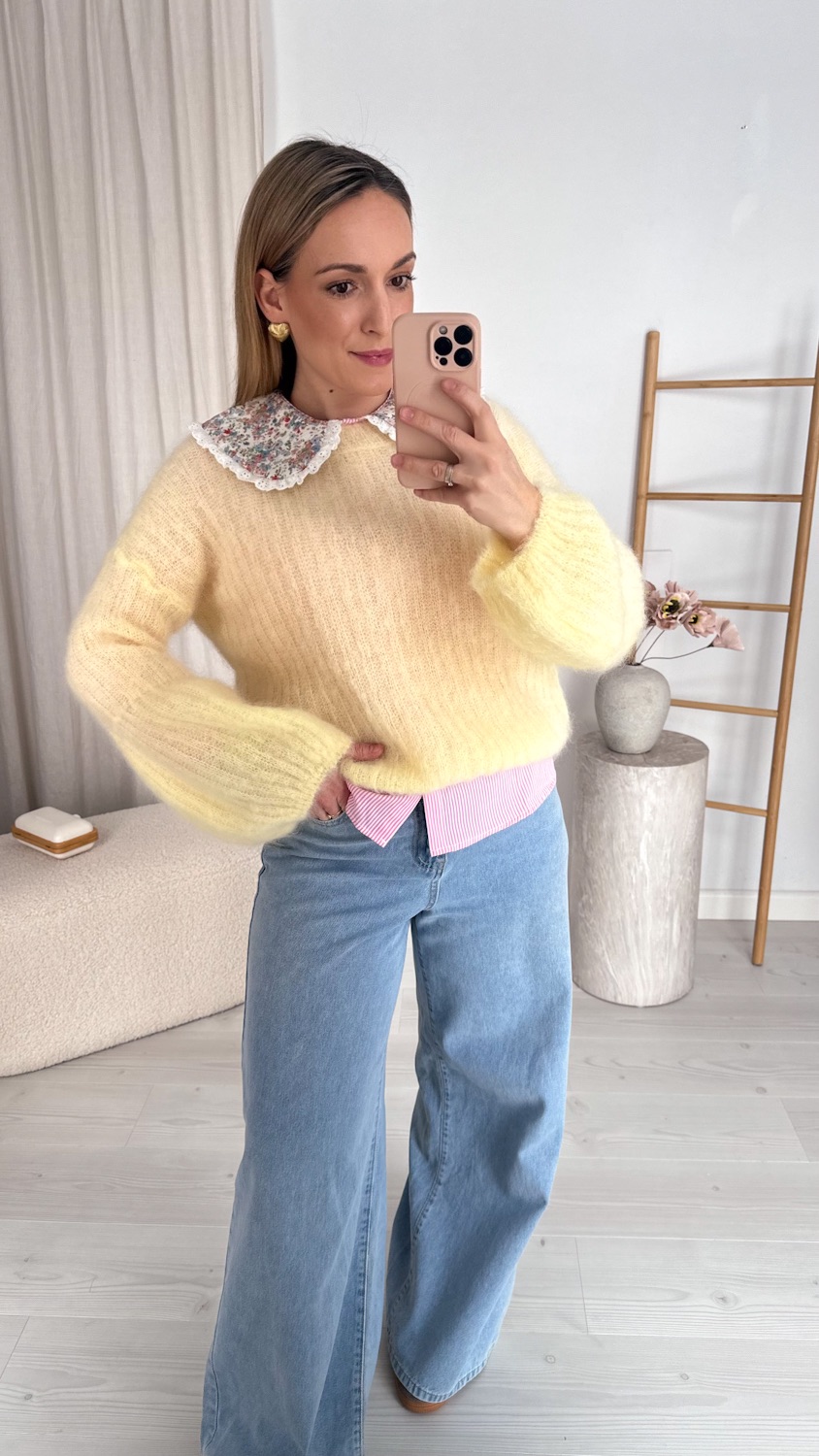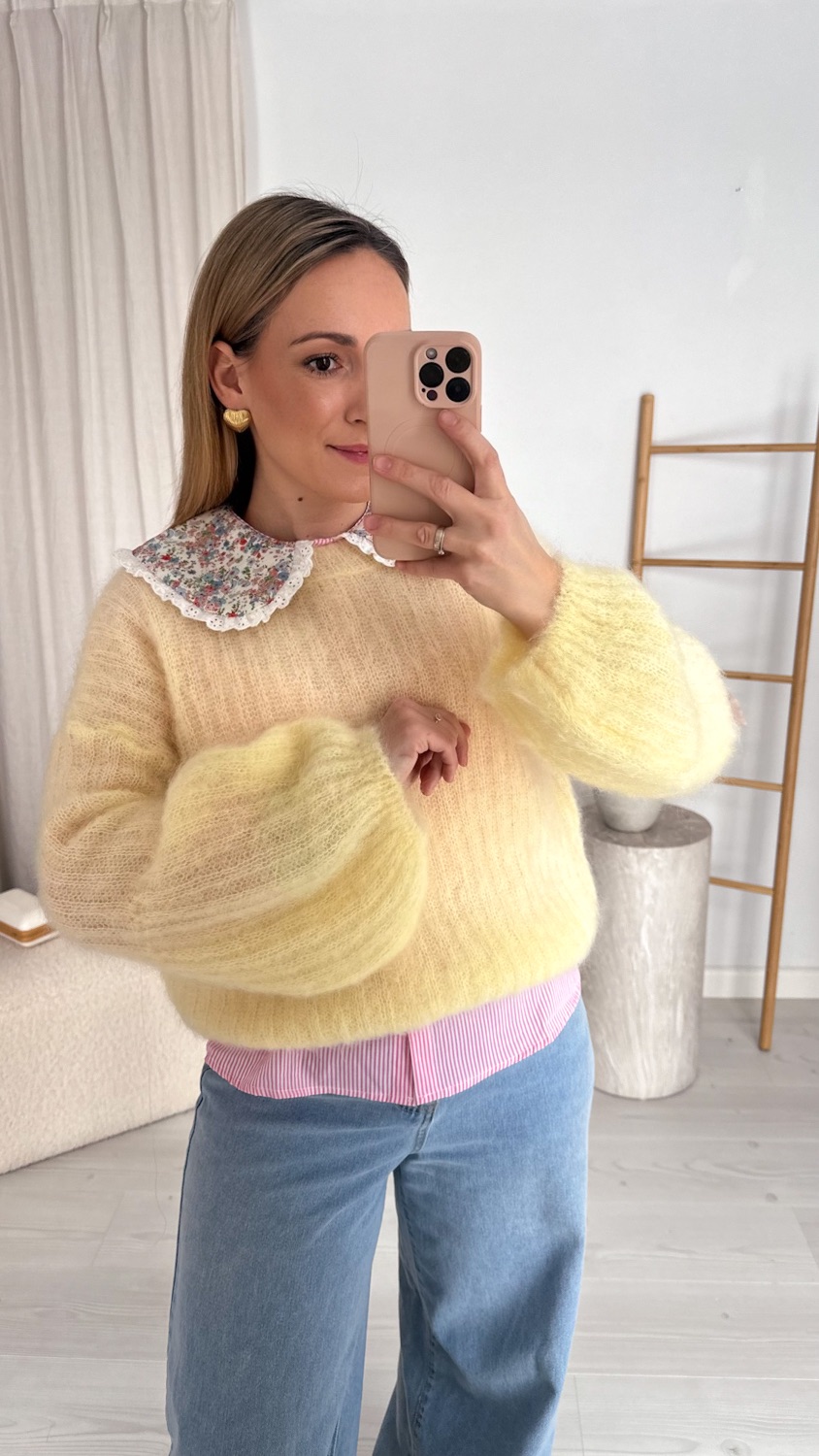 Dodaj swojej stylizacji nutę elegancji i lekkości dzięki wyjątkowemu swetrowi wykonanemu z domieszką moheru. To model zakładany przez głowę, o klasycznym prążkowanym splocie, który pięknie dopasowuje się do sylwetki. Jego charakterystycznym detalem są szeroko rozszerzane rękawy – efektowne i kobiece, nadają całości subtelnej nonszalancji.