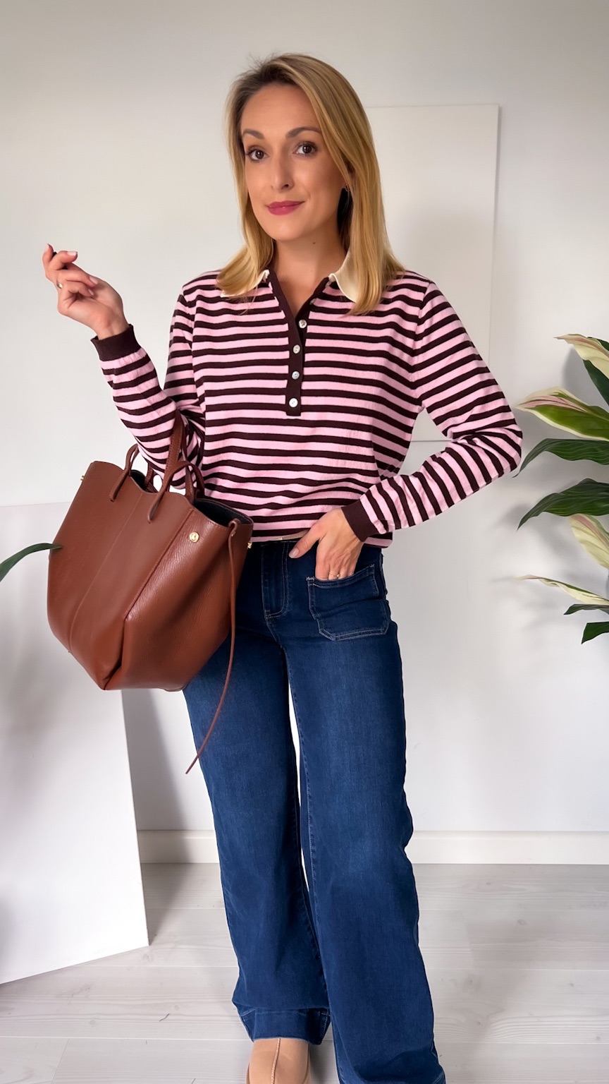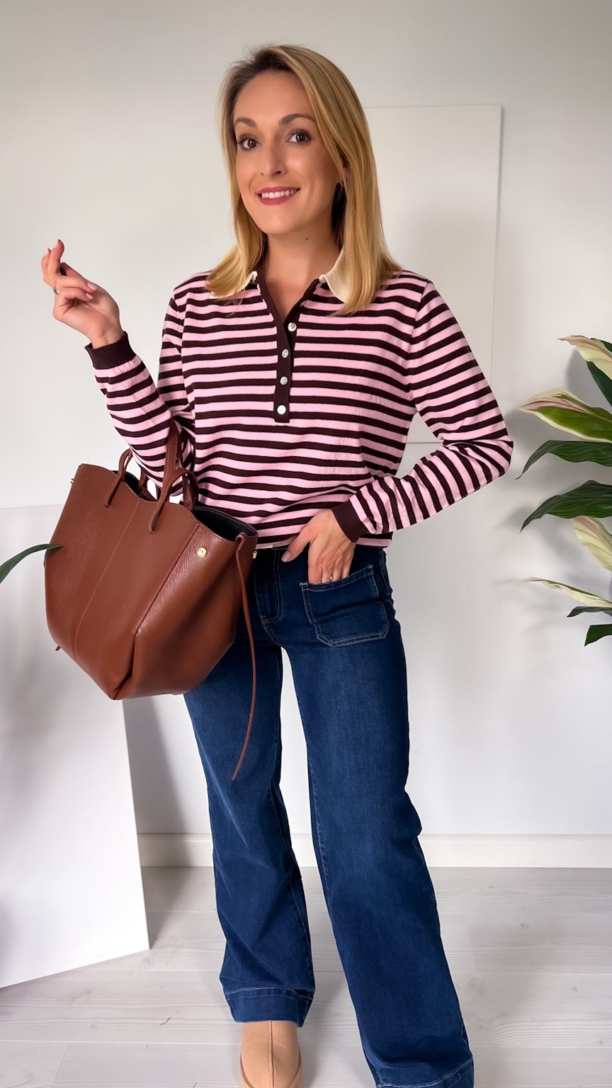 Sweterek w paski z kołnierzykiem – must-have tego sezonu