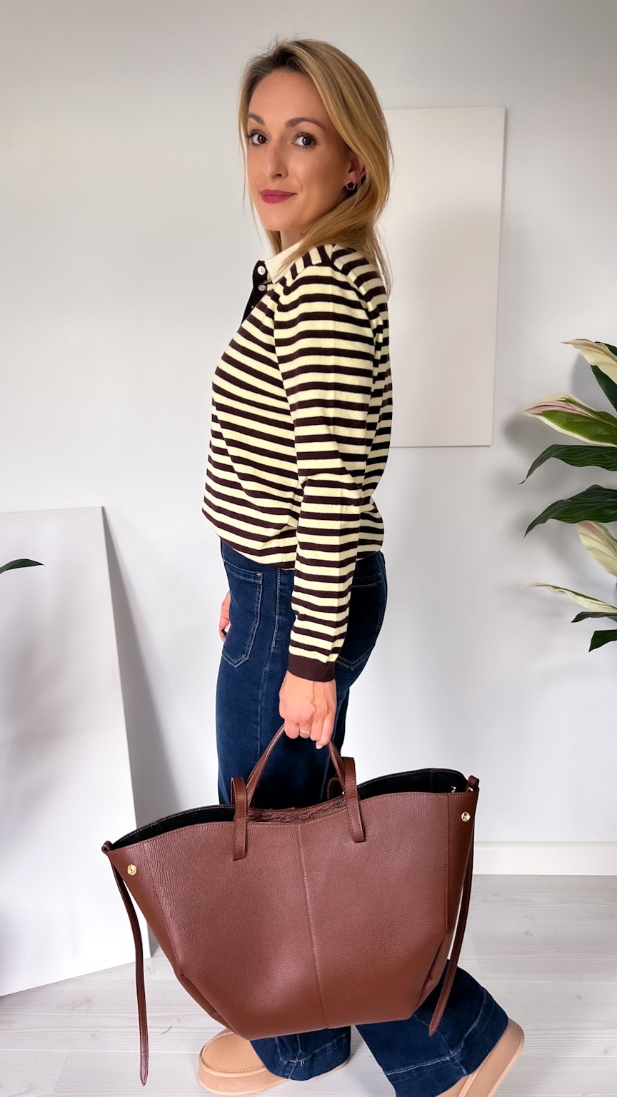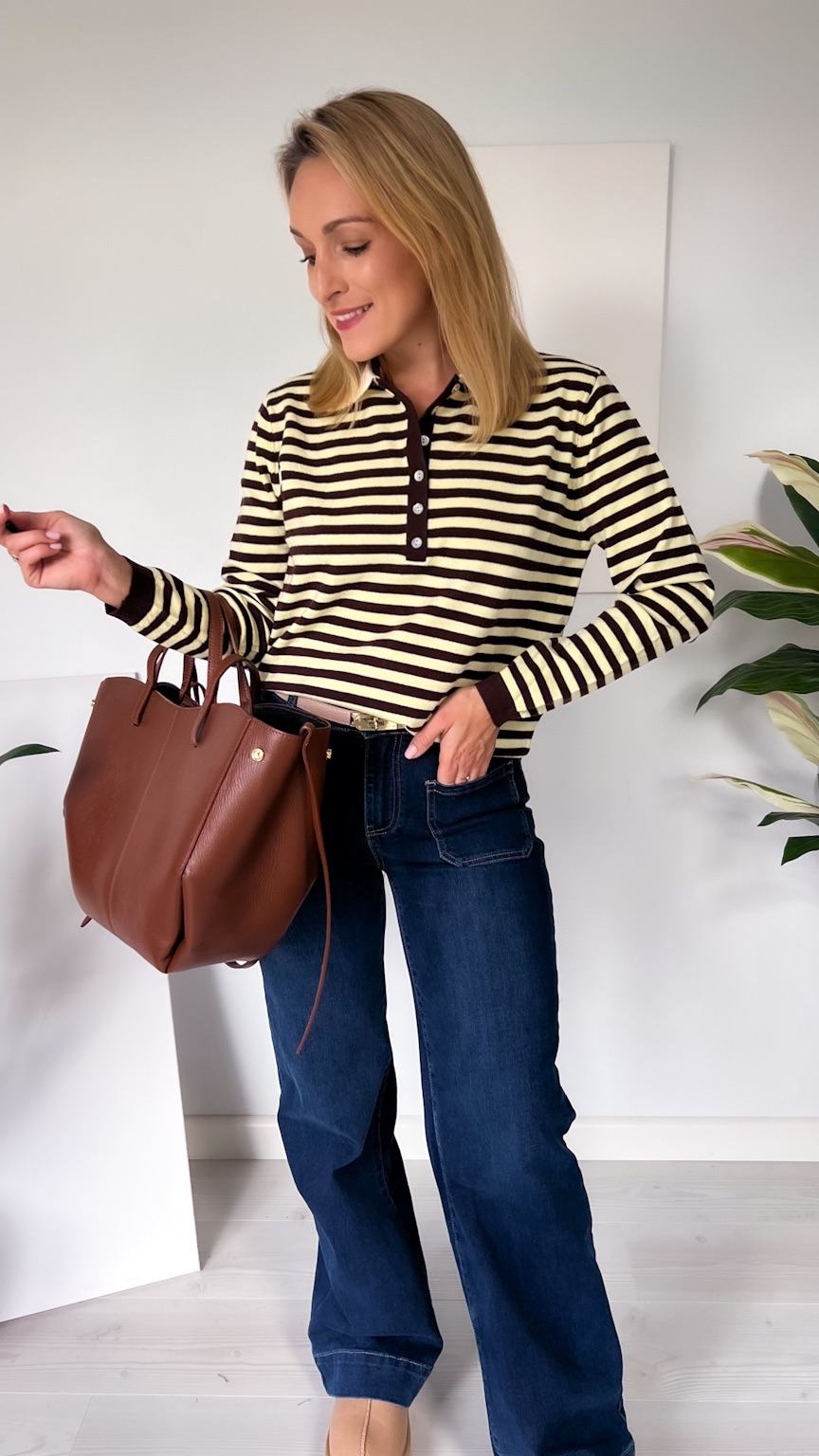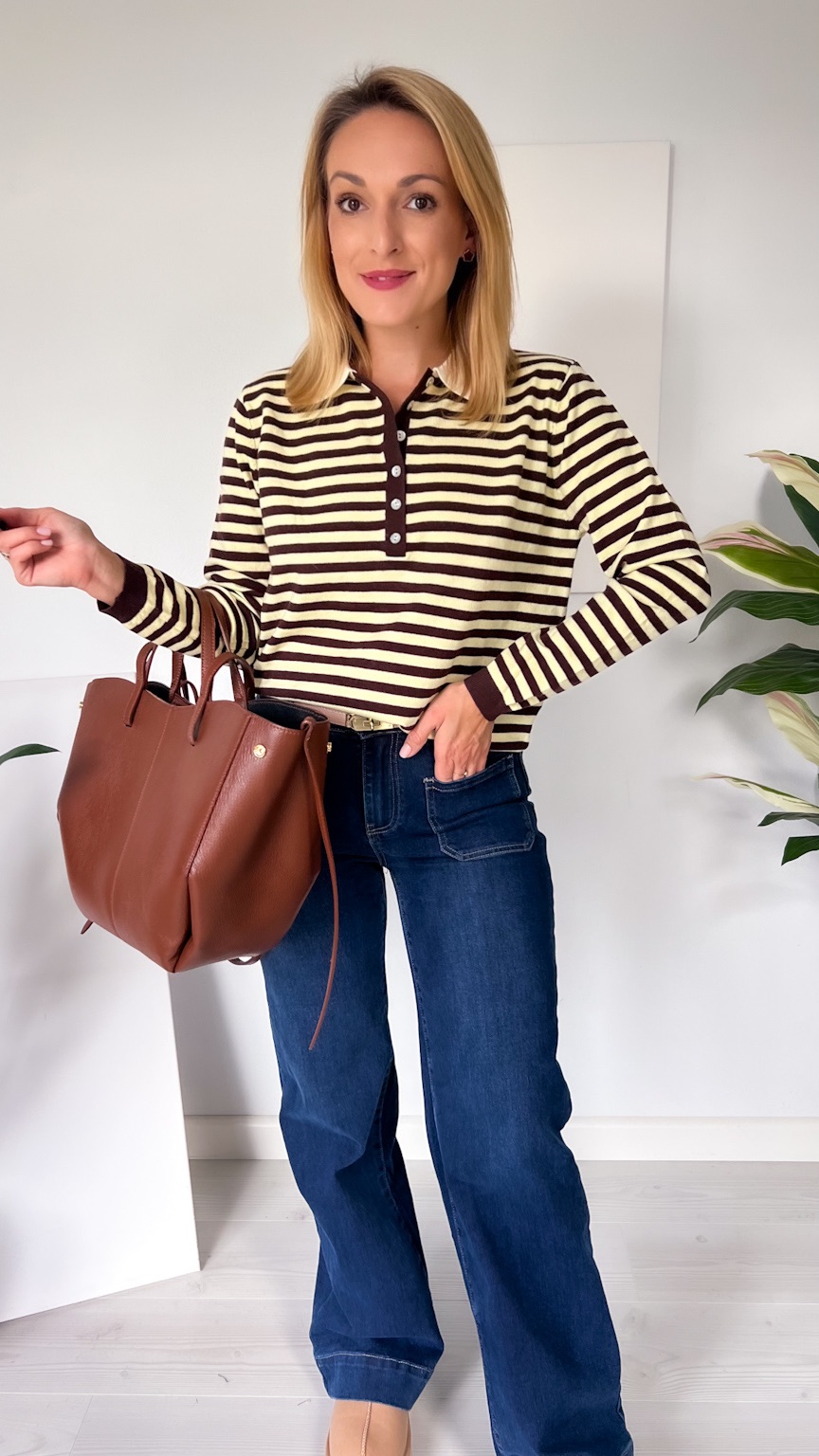 Sweterek w paski z kołnierzykiem – must-have tego sezonu