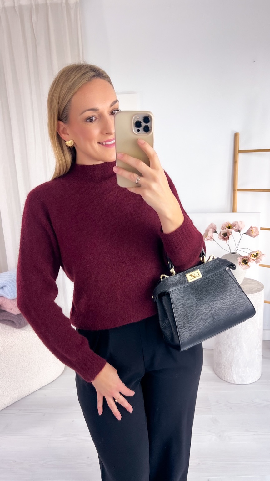 Dzięki minimalistycznemu fasonowi sweter doskonale sprawdzi się zarówno w codziennych, jak i bardziej formalnych zestawach — świetnie wygląda z jeansami, spódnicą czy eleganckimi spodniami.