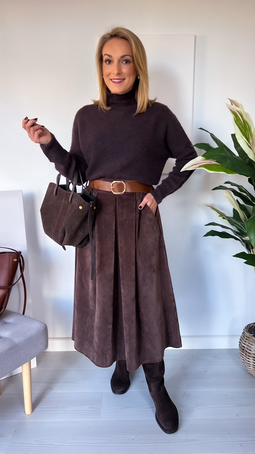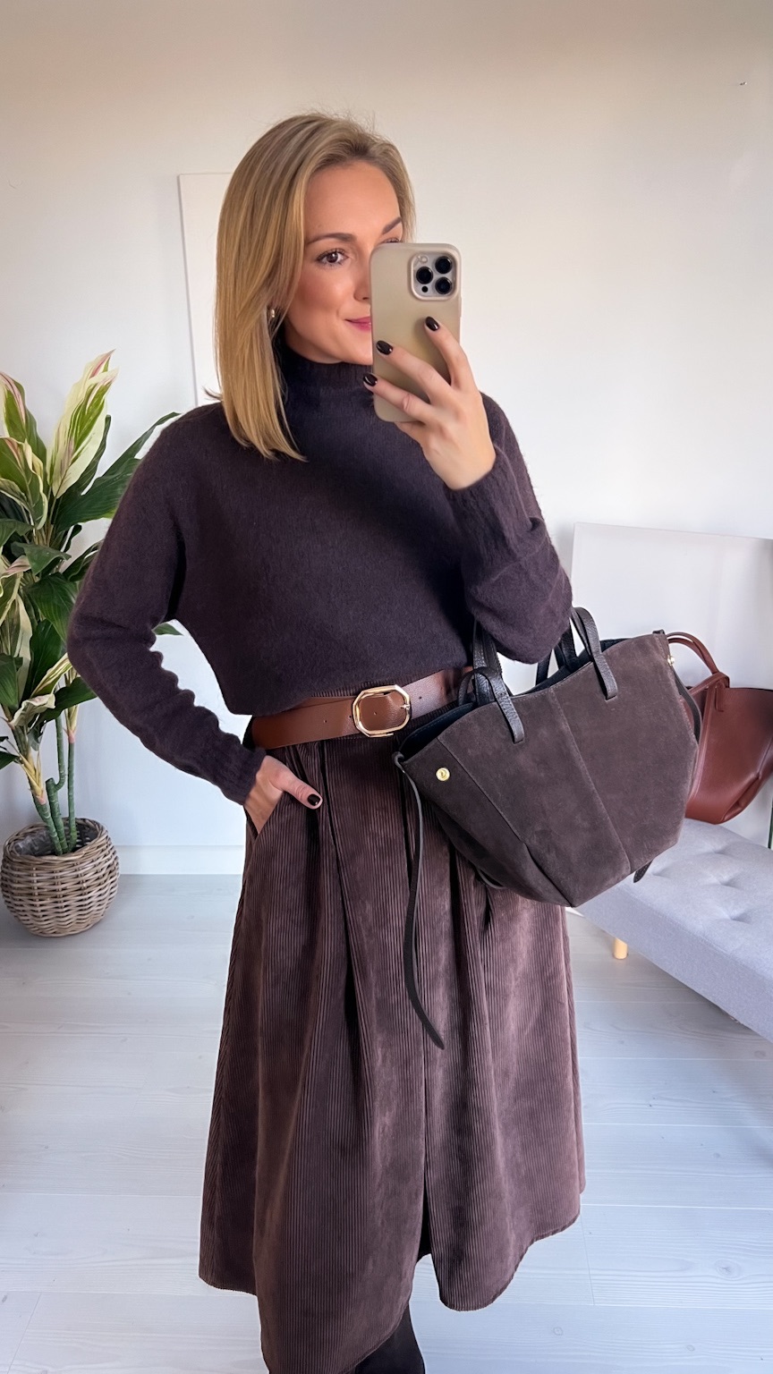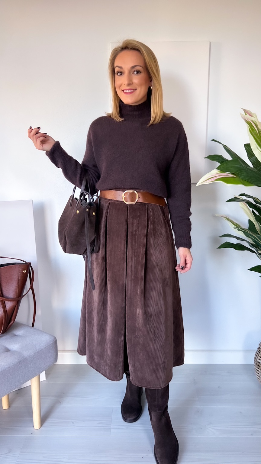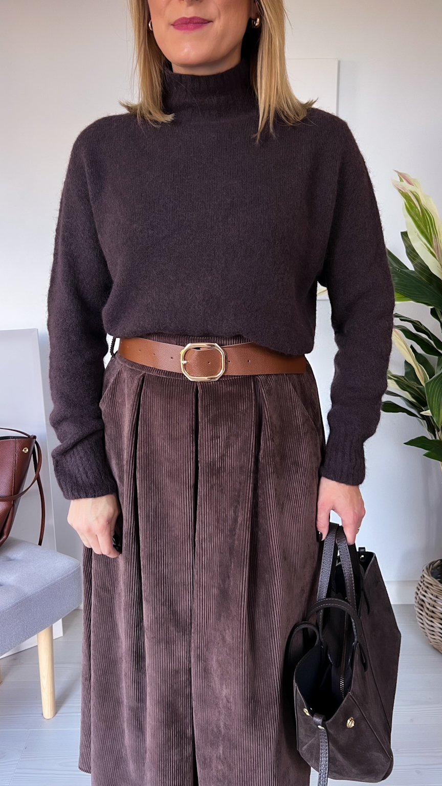 Dzięki minimalistycznemu fasonowi sweter doskonale sprawdzi się zarówno w codziennych, jak i bardziej formalnych zestawach — świetnie wygląda z jeansami, spódnicą czy eleganckimi spodniami.