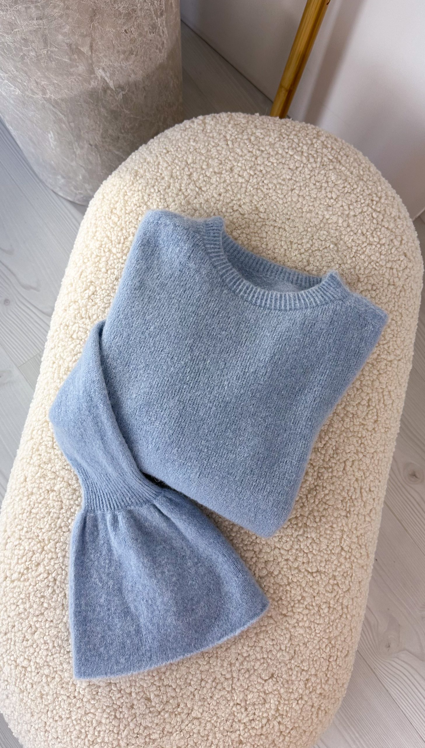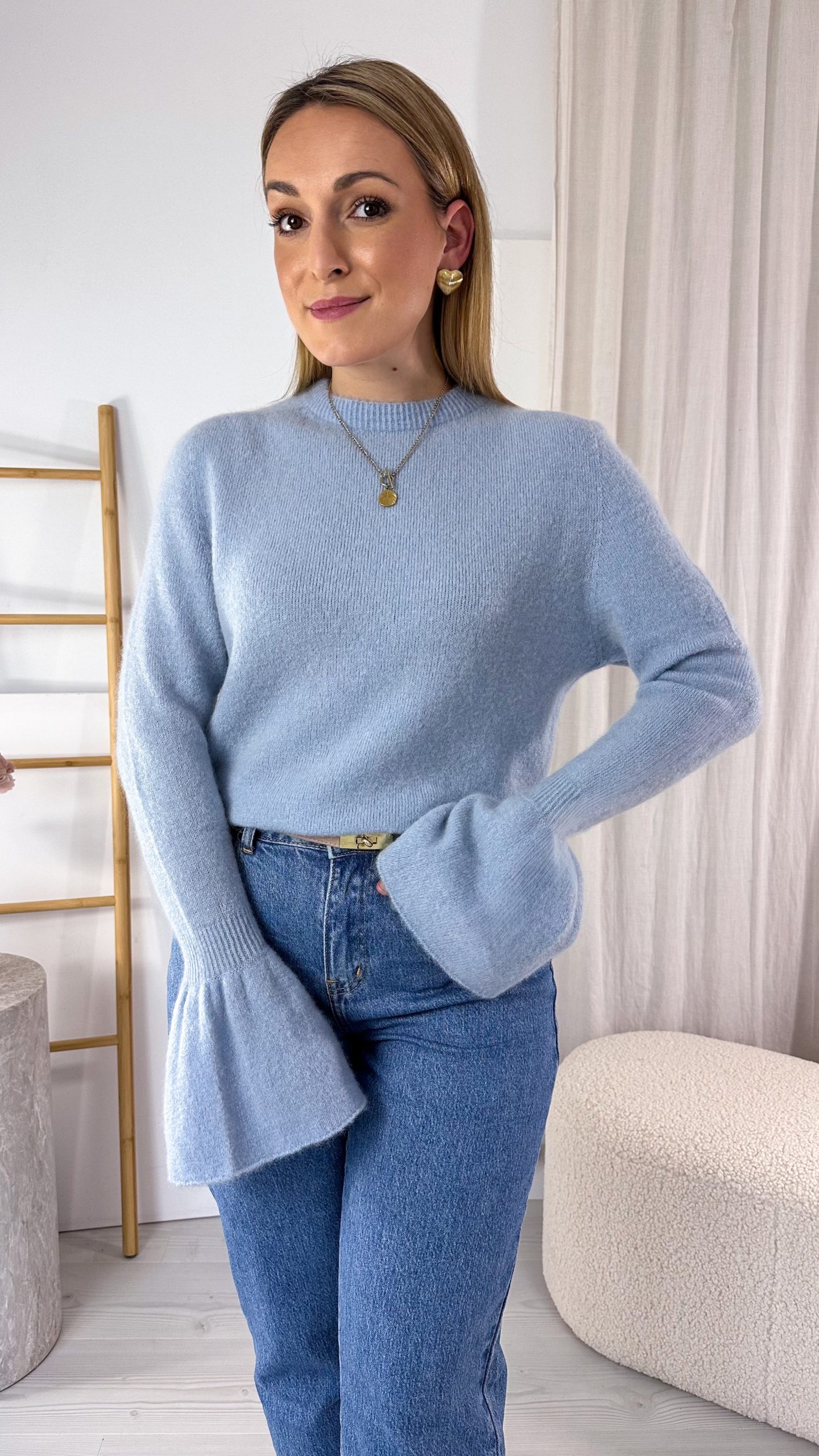 Sweter z dodatkiem alpaki z rozkloszowanymi rękawami