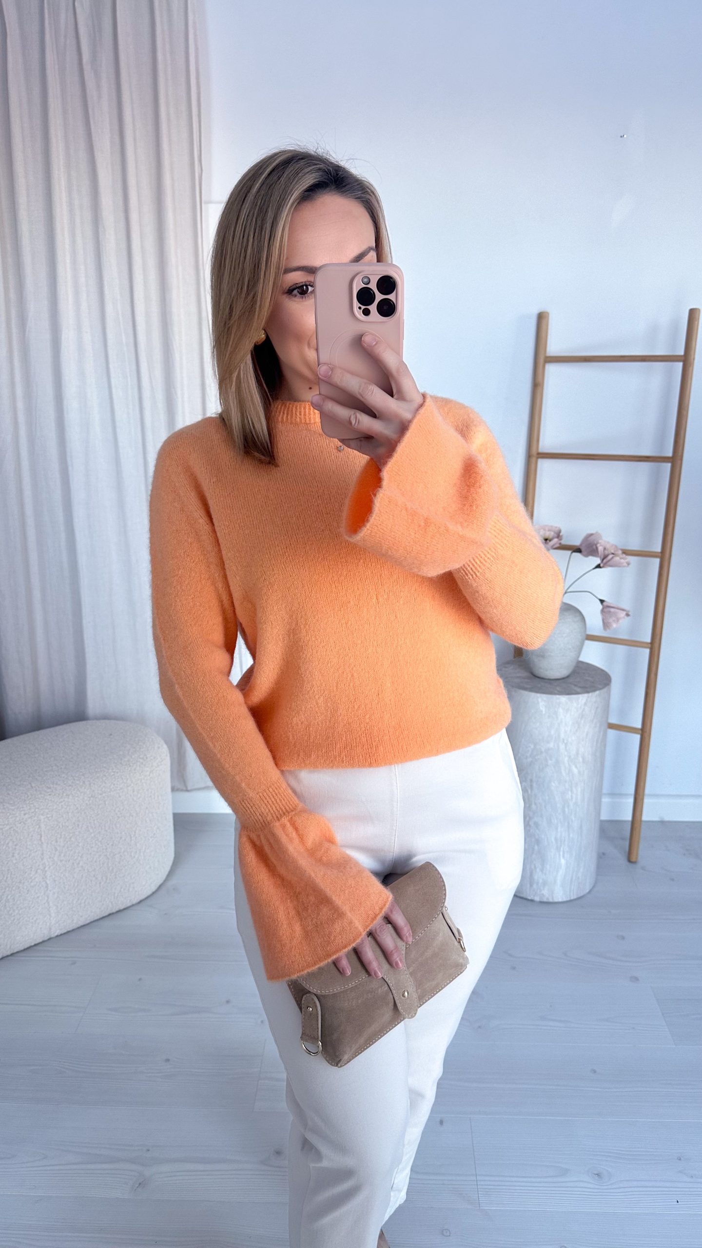 Sweter z dodatkiem alpaki z rozkloszowanymi rękawami