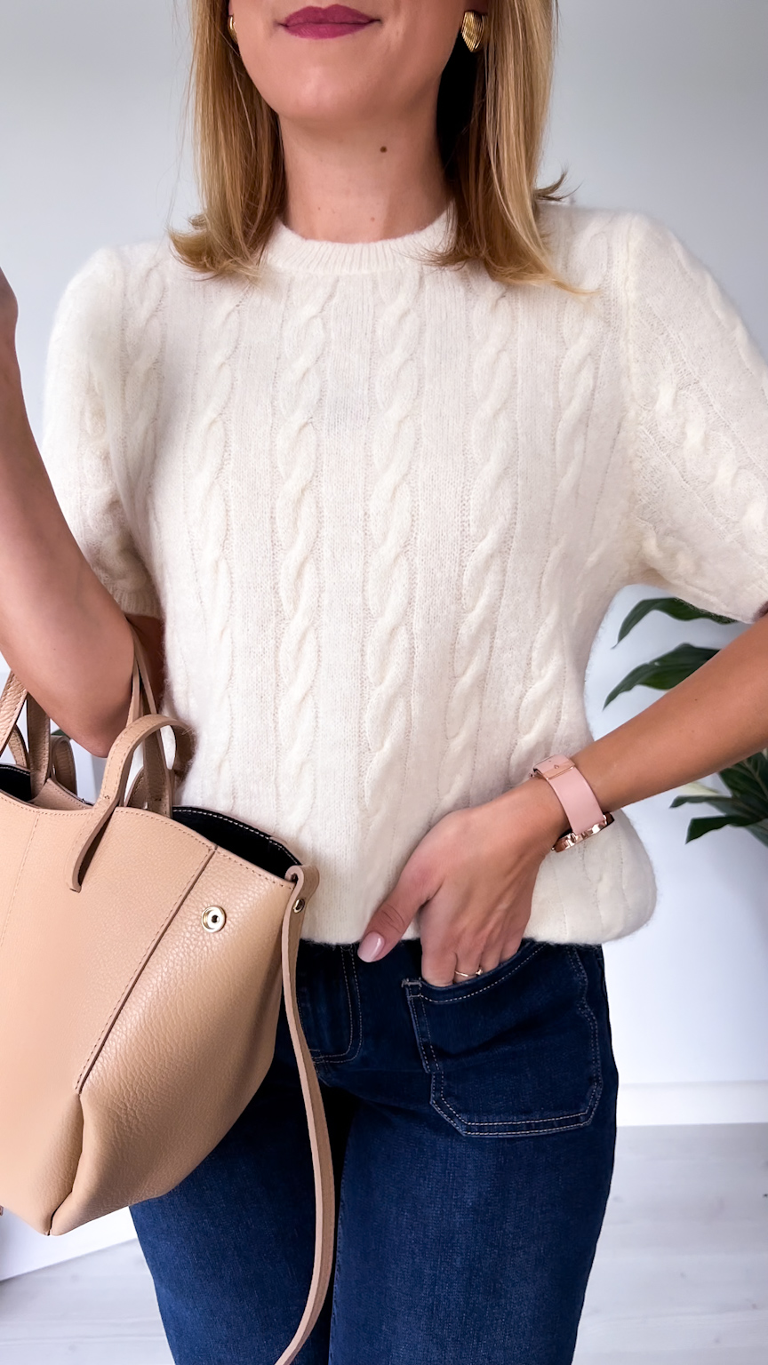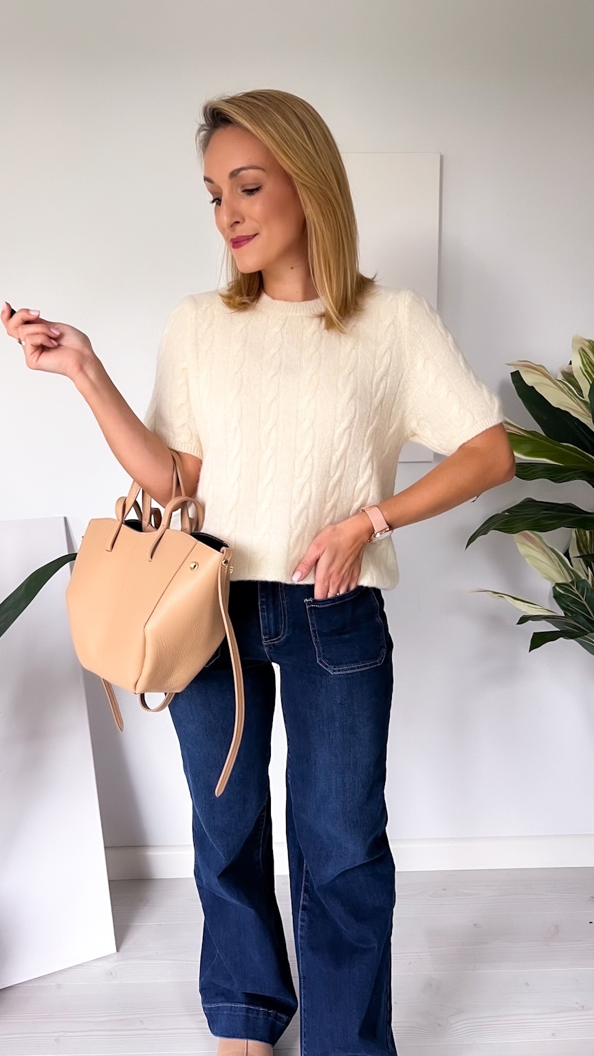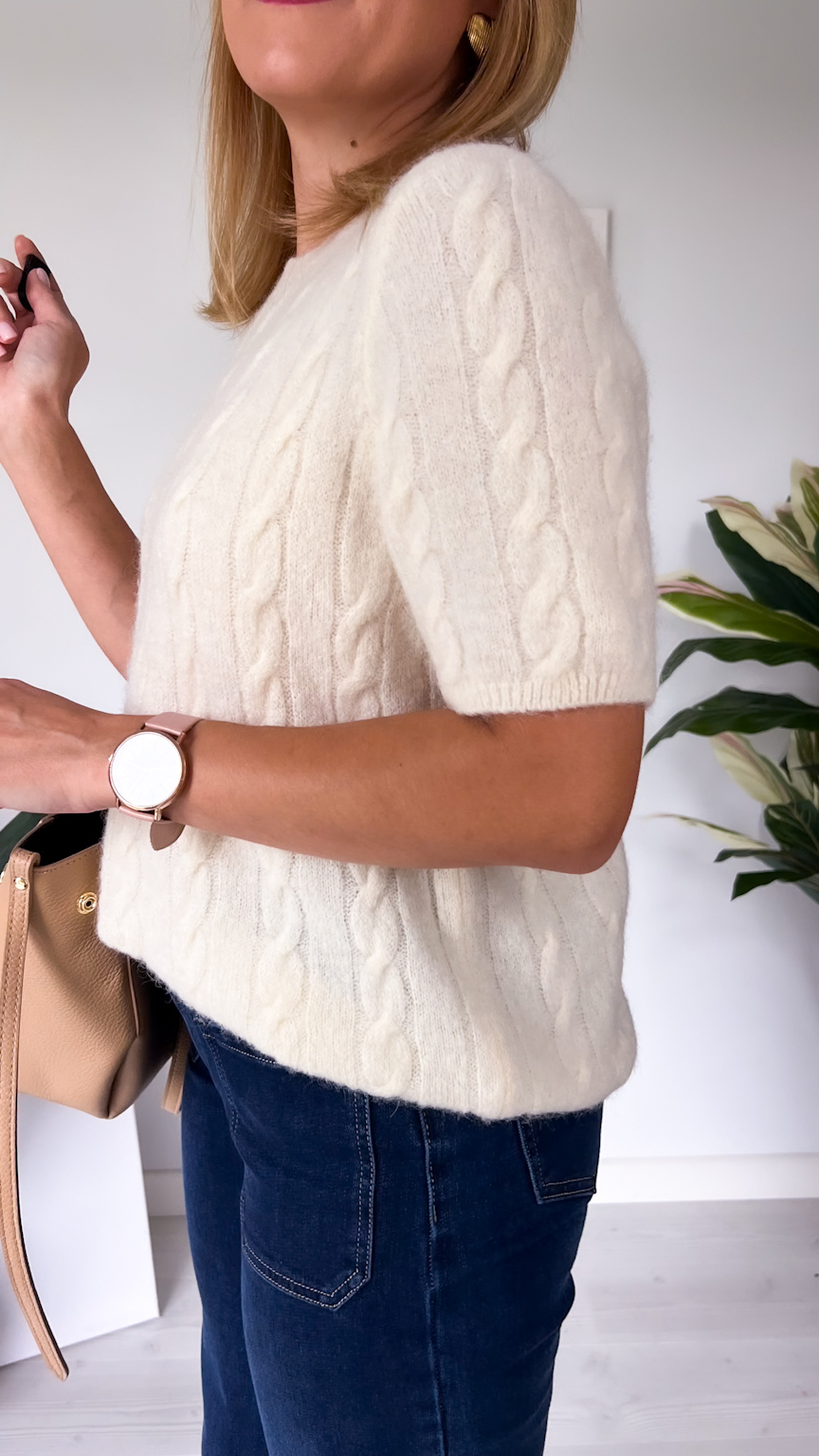 🧶 Sweter z krótkim rękawem – sportowy warkocz z alpaką 🧶