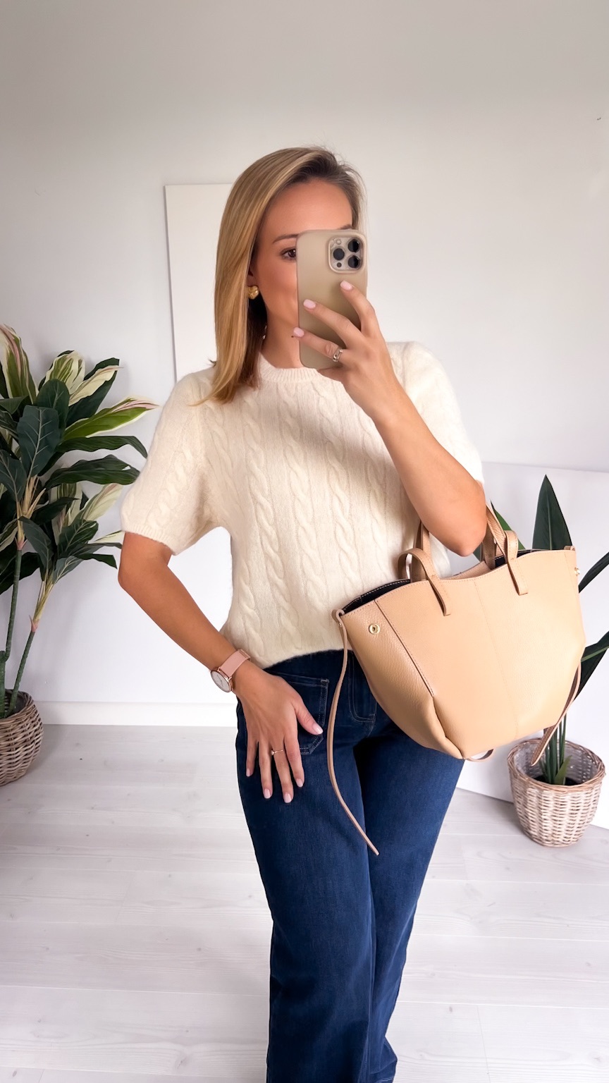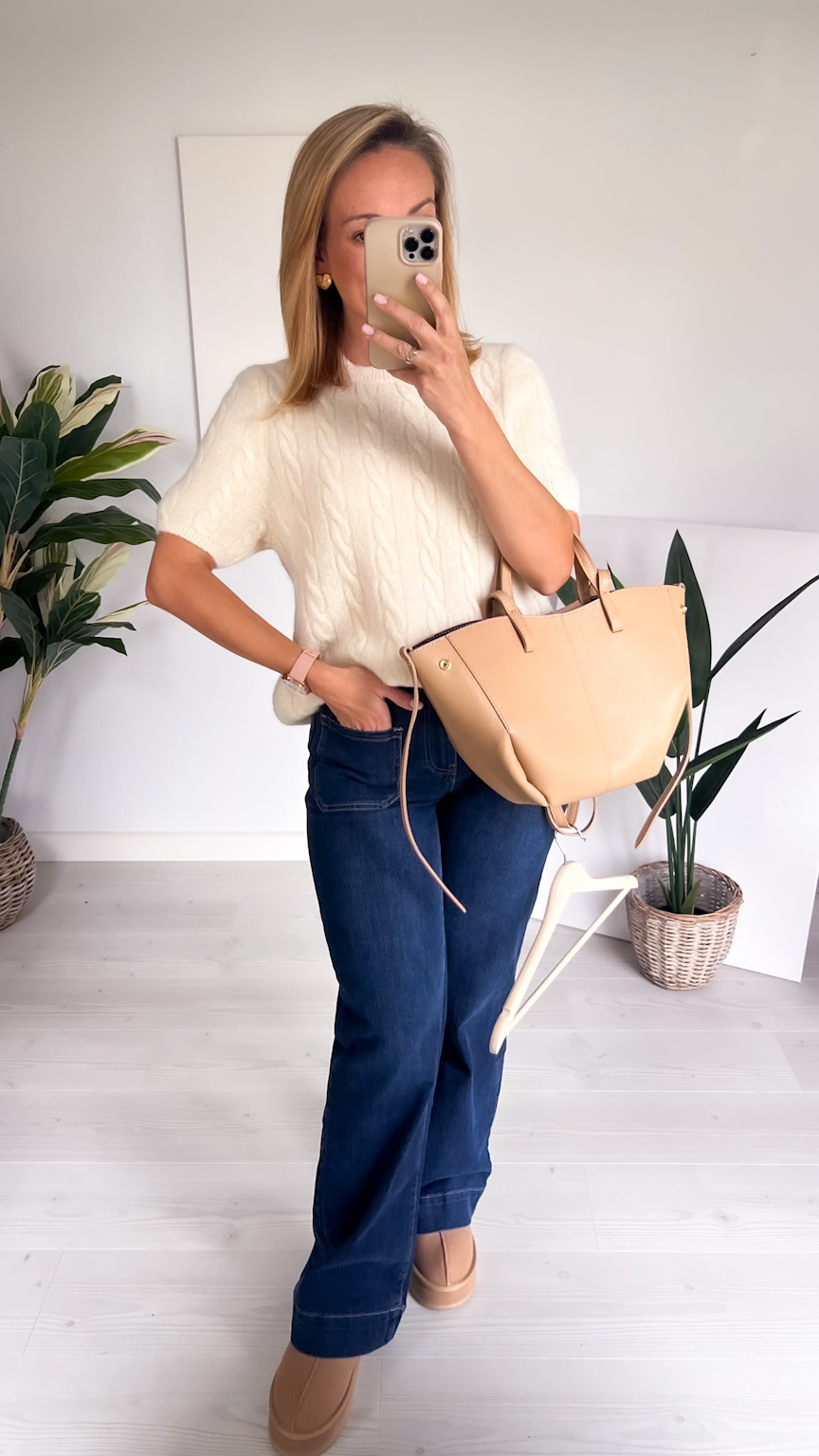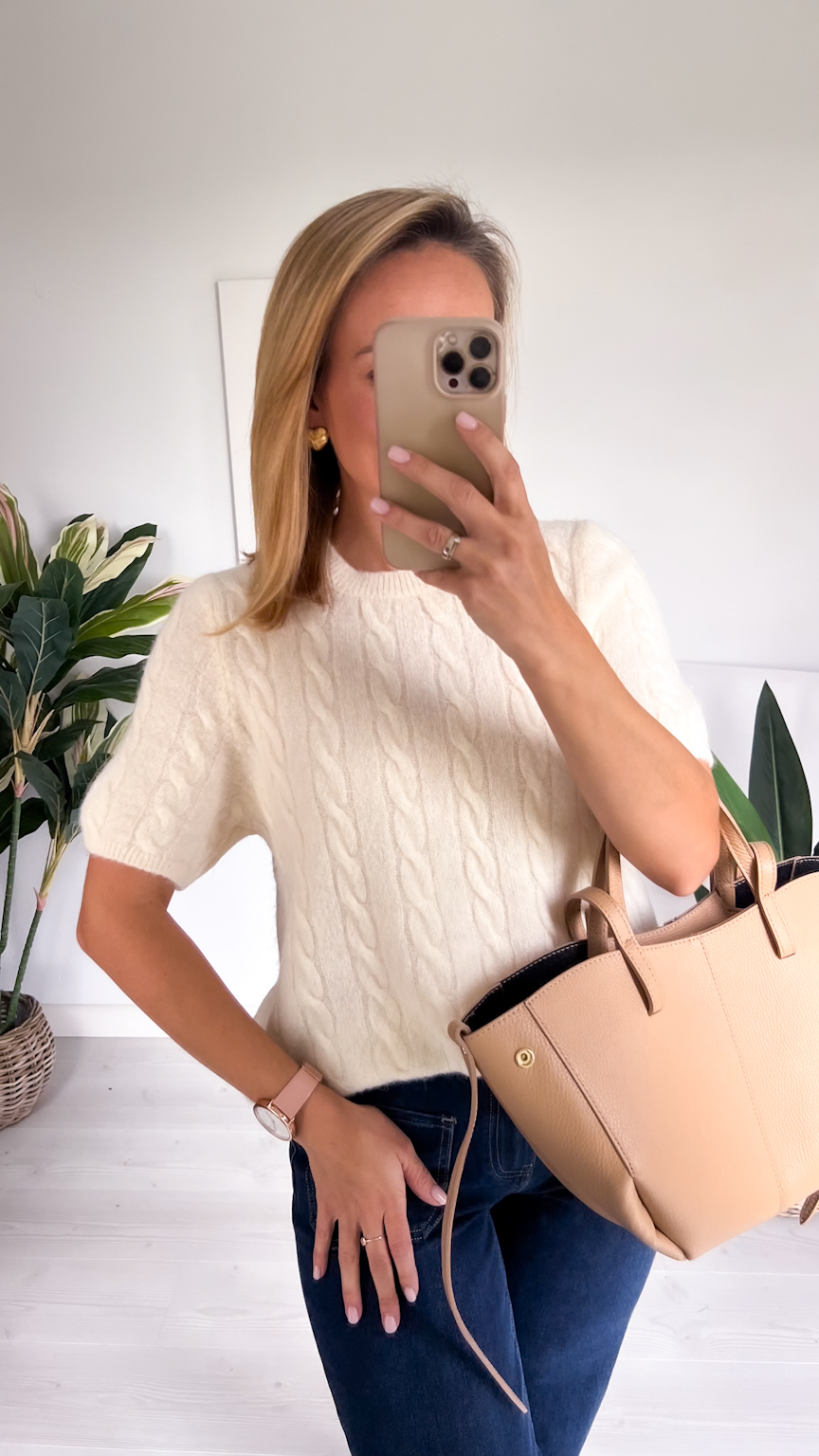 🧶 Sweter z krótkim rękawem – sportowy warkocz z alpaką 🧶