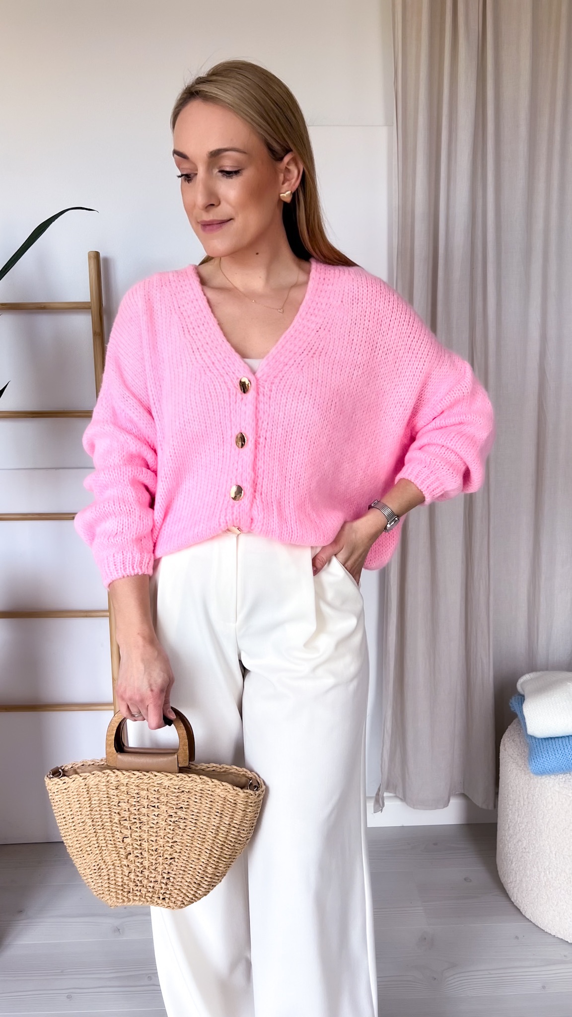 Miękki, stylowy i niezwykle uniwersalny – ten oversize’owy sweter to must-have w każdej garderobie. Luźny krój zapewnia komfort noszenia i swobodę ruchów, a eleganckie, złote guziki dodają mu wyjątkowego charakteru i subtelnej nuty luksusu.