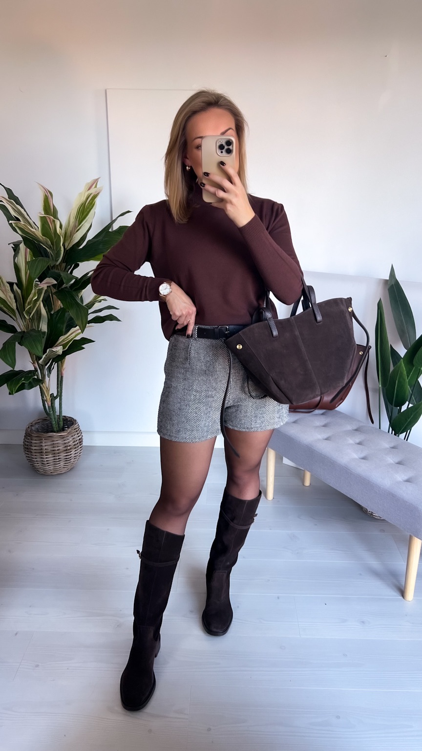 Szorty w jodełkę z paskiem – klasyka w nowoczesnym wydaniu