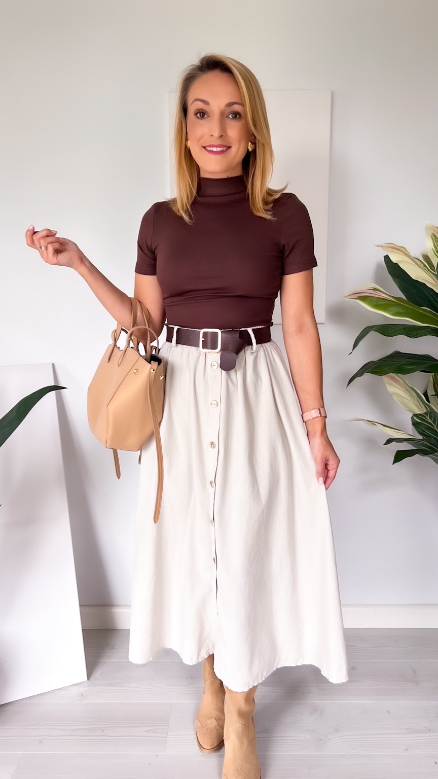 Stylowy półgolf wykonany z wysokiej jakości, miękkiej wiskozy, która jest niezwykle przyjemna w dotyku i komfortowa w noszeniu. Klasyczny fason z krótkim rękawem sprawia, że model doskonale sprawdza się w jesiennych stylizacjach – zarówno solo, jak i jako baza pod marynarkę, kardigan czy kamizelkę.